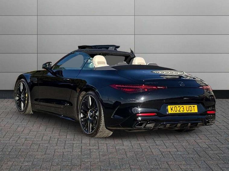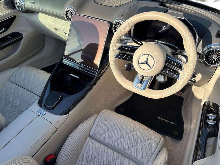 360 degree camera, AMG track pace, Attention assist, Bluetooth interface for hands free telephone, Central display, Cruise control, Driver display, Fingerprint scanner, Head up Display, Lane keeping assistant (LKA), MBUX augmented reality for navigation, MBUX Interior assistant, MBUX navigation premium, Mercedes-Benz emergency call system, Outside temperature gauge, PAS, Rear axle steering, Remote Services Premium, Service indicator (ASSYST), Smartphone integration with Apple CarPlay, Traffic sign assist, Trip computer, USB adapter cable, Wireless charging system for mobile devices in the front, AMG Active Ride Control suspension, AMG SPEEDSHIFT MCT 9-speed automatic sports transmission, Front axle lift system, Burmester surround sound system, DAB Digital radio, 2 Electric windows, 3rd brake light, Adaptive high beam assist plus, AMG body styling, AMG boot lid spoiler in body colour, AMG illuminated door sills with AMG lettering and with exchangeable cover, AMG Light Display - The projector fitted in the side skirts casts AMG lettering onto the asphalt, AMG Real Performance Sound, AMG spoiler lip, Automatic headlights, Body colour bumpers, Darkened headlamps and tail lights, Digital light headlamps, LED daytime running lights, Magic vision control, Model badge on boot lid and wings in high-gloss black, Radiator fins painted black, Rain sensor windscreen wipers, Rear boot, 2 cup holders in front, 2 individual rear seats, Airscarf - neck level heating, AMG steering wheel buttons, Energizing Air Control - Air quality and fine particle sensor, Front gesture control, Heated front seats, Neck-pro front headrests, Single front passenger seat, Steering wheel heating, THERMOTRONIC automatic climate control, AMG Dynamic plus pack - SL Class, AMG Night pack - SL Class, AMG Night pack II - SL Class, Energizing pack plus - SL Class, Load compartment pack - SL Class, Memory package - SL Class, Mirror pack - SL Class, Parking pack - SL Class, USB pack plus - SL Class, ABS, Active pedestrian safety system, AMG high performance compound brake system, Automatic roll over protection, Driver and passenger head and side airbags, Dual stage driver/passenger airbags, Electronic parking brake, ESP with ASR, Hill hold function, Passenger airbag deactivation system, Pedestrian protection, Tyre pressure monitoring system, Warning triangle and first aid kit, Keyless go with seemless door handles, KEYLESS-GO starting function, Remote central locking, Urban guard vehicle protection plus, AMG carbon fibre trim, Summer tyres, Tyre sealant kit,