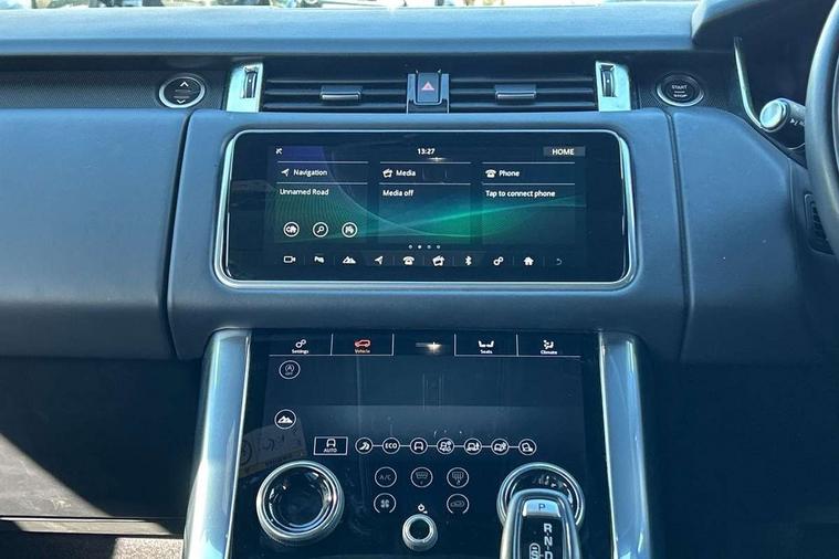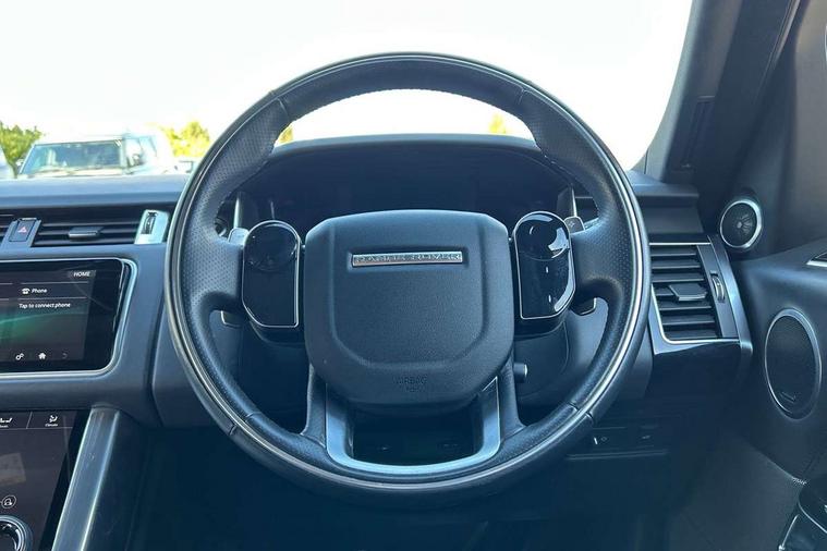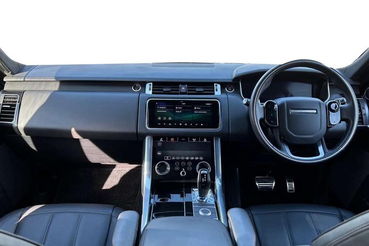 All Terrain Info Centre, Android Auto, Apple car play, Bluetooth connectivity, Electric power assisted steering (EPAS), Incontrol apps in vehicle touchscreen, Interactive Driver display instrument cluster, Mist sensor, Navigation pro system with 10" touch screen, app interface and media storage, Pro services and wifi hotspot, Push button start, Remote premium - Upgraded Incontrol remote app including remote climate control (engine dependent), remote lock + Unlock and remote beep + flash, TFT Virtual Instrument Panel, Touch pro duo system, Trip computer, Adaptive dynamics, All terrain progress control, Electronic active differential with brake torque vectoring, Electronic air suspension with dynamic response (active roll control), Gradient release control (GRC), Terrain Response 2 with dynamic program, Twin speed transfer box, Bluetooth audio streaming, DAB Radio (Digital Audio Broadcasting), Incontrol protect - SOS emergency call with automatic collision detection, optimised assistance call and Incontrol remote app essential, USB/aux input socket, Acoustic front and toughened rear side glass, Acoustic laminated front windows, Adaptive brake lights, Auto dimming interior rear view mirror, Automatic headlights, Body coloured side sills and bumpers corners, Centre high mounted stop light, Electric windows with one touch open/close and anti trap, Electrical towing preparation, Engine cover, Follow me home lighting, Front and rear recovery eyes, Front fog lights, Headlight power wash, Heated rear window, Heated windscreen includes heated washer jets, Illuminated metal treadplates with brand name script, LED rear lamps, Privacy glass (Tinted glass rear of B pillar), Rain sensing windscreen wipers, Rear fog lights, Rear side wing doors, Rear wash/wipe, Remote window closing, Side repeater indicators in mirror, Sport Badge in black, Standard bonnet, Trailer stability assist, Twin bright tailpipes, 2 way active front head restraints, 2 way rear head restraints, 3 seat bench in 2nd row, Auto air recirculation, Bright metal foot pedals, Centre console with armrest, Climate control memory, Customer configurable single point entry, Driver's footrest, Extended leather upgrade includes door top rolls and leather instrument panel mid section, Front and rear cupholders, Front door storage space, Front map lights, Front seat back map pockets, Front stowage pocket, Front/rear passenger grab handles, Heated steering wheel, Isofix child seat preparation, Leather steering wheel with Atlas inserts, Loadspace light, Loadspace mounting provisions, Lockable glovebox, Multifunction steering wheel, Perforated Windsor leather upholstery, Pollen filter, Power socket, Reach/rake electric adjustable steering column + entry/exit tilt away, Rear centre armrest, Rear ISOFIX, Roller blind loadspace cover, Satin chrome gearshift paddles, Single front passenger seat, Sports pedals, Three 12V accessory power outlets, Black Exterior pack - Range Rover Sport Dynamic, Smartphone pack - Range Rover Sport, 3 point seatbelts on all seats, Anti-lock braking system (ABS), Brake pre-fill technology, Cornering brake control (CBC), Curtain airbags, Customer configurable autolock, DSC - Dynamic Stability Control, Dual stage driver/passenger airbags, EBD - Electronic brakeforce distribution, Electric parking brake, Electronic traction control, Emergency braking includes city, urban AEB and pedestrian, Front seatbelt pretensioners, Gradient acceleration control, Grey anodised brake calipers, Height adjustable front seatbelts, Hill descent control, Hill launch assist, Low traction launch, Passenger seat occupant detector with front airbags, Power operated child locks, Roll stability control, Seatbelt warning, TPMS (Tyre pressure monitoring system), Immobiliser, Intrusion sensor, Keyless entry, Locking wheel nuts, Perimetric and volumetric anti theft alarm, Remote locking, Grand black veneer,