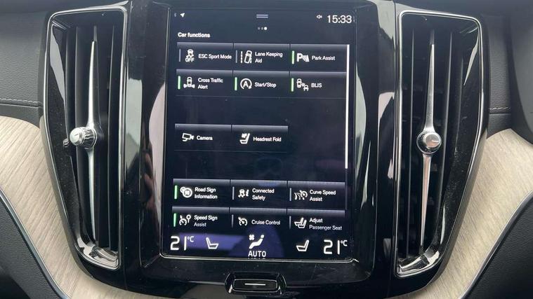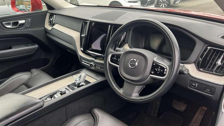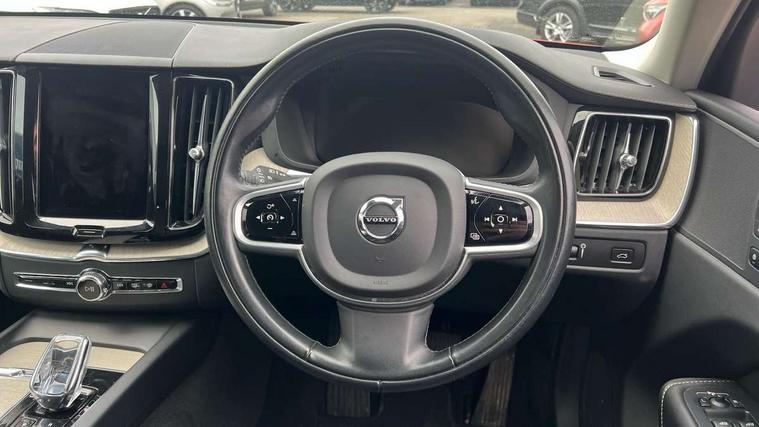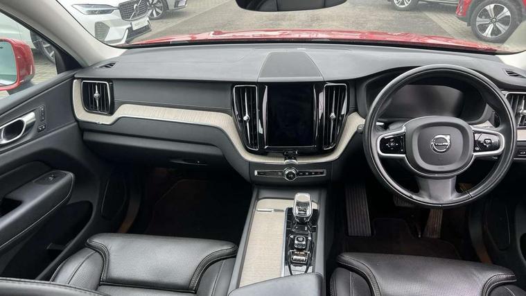 12.3" Active TFT crystal driver's instrument display, 9" Touch screen, Adjustable steering wheel force, Bluetooth handsfree system, Drive mode selector, Driver alert control with lane keeping aid, Oncoming Lane Mitigation, Sensus navigation with European mapping and traffic information, Service interval indicator, Speed limiter, Speed sensitive steering, Trip computer, Voice control system, Volvo on call, 8 speed automatic transmission with start/stop + manual change functions, All wheel drive system, Diesel particulate filter, DAB Digital radio, Adaptive brake lights with high level LED brake lights, Auto dimming interior + exterior mirrors, Automatic headlight levelling system, Body colour bumpers, Chrome deco lower front bumper, Chrome lower side moulding trim, Chrome window surround, Colour coordinated auto folding and heated power door mirrors, Dual integrated exhaust pipes, Electric front+rear windows, Front aluminium tread plates, Heated aqua blades, High gloss black grille with chrome inserts, Home safe and approach lighting, Illuminated side steps, Integrated silver roof rails, LED front fog lights, LED Headlights + Active high beam incorporating daytime running lights, Rain sensor with automatic windscreen wiper activation, Rear wiper, Roof antenna, Roof spoiler, Tinted windscreen, Visible VIN plate, 12V socket in front tunnel console and luggage compartment, 3 spoke leather steering wheel with chrome trim, B Pillar ventilation, Bright metal luggage threshold, Centre armrest storage illumination, Centre console cupholders and storage, Floor mats, Front and rear door pocket and front cupholder illumination, Front footwell illumination, Front reading lights, Front seat cushion extension and power adjustable front seats side support, Head restraints for all seats, Heated front seats, Height/reach adjustable steering column, High gloss black steering wheel remote infotainment controls, Illuminated glovebox, Illuminated luggage compartment, Illuminated vanity mirrors + ticket holder, Load cover, Load protection net, Multi directional lumbar support, Multicolour theatre lights, Orrefors Crystal gear lever knob, Rear armrest / integral cup holders / storage tray, Rear footwell illumination, Rear seat concealed storage, Tailgate illumination and ambient door lighting, Underfloor stowage compartment, Versatile split folding rear seat - 60/40, Power seat pack - XC60, 5 three point seatbelts, City safety with steering support with Pedestrian + cyclist + large animal detection + front collision warning with full auto brake, Drivers knee airbag, Dual stage driver/passenger airbags, Electronic parking brake with auto hold, First aid kit, Hill descent control, Hill start assist, IC (Inflatable Curtains) - Full Length, Passenger airbag cut-off device, Road sign information display, Run off Road Mitigation, Run off Road Protection, Seatbelt reminder and pretensioners, SIPS (Side Impact Protection System), SIPS airbags, Slippery road and hazard light alert, Stability and Traction Control with Spin control, Engine Drag Control and Corner Traction Control, Tyre pressure monitoring system, Vehicle deceleration control with Anti-lock Brake System, Electronic Brake Distribution and Emergency Brake Assist, Warning triangle, WHIPS whiplash protection system - front, Anti-theft alarm including immobiliser/volume sensor + level sensor, Care key with user defined top speed, Key integrated remote control central locking + fuel flap with deadlocking system and auto open/close power windows, Locking wheel nuts, Private locking for tailgate, Tailored instrument panel with contrast stitching,