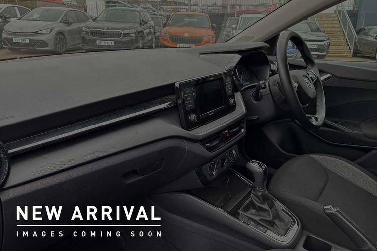 Bluetooth connection, Driver alert system - DAS, Electromechanical power steering, Exterior temperature gauge, Lane assist including road edge detection, Multifunction trip computer in black and white, Rear parking sensors, Service interval indicator, Speed limiter, 2x USB-C in the front (for data transmission and charging), 4 speakers in front, Auxiliary socket for external MP3 player, DAB digital radio reception, Radio Swing with 6.5" colour display, Basic LED Headlights, Basic rear lights, Body colour door mirrors, Body coloured bumpers, Dimming rear view mirror with black frame, Door mirror integrated indicators, Electrically adjustable and heated door mirrors, Electrically adjustable front windows with function auto up/down, Front fog lights, Front window wiper intermittent control, Headlight range control - Automatic, Ice scraper in fuel cap, LED daytime running lights with coming and leaving home feature, Mechanical adjustable rear windows, Rain sensor, Rear LED fog light, Rear side wing doors, Rear window wiper with washing nozzles, Roof mounted spoiler, SKODA tailgate lettering in chrome, Third brake light, 2 reading lights in front and 2 reading lights in rear, 2 spoke leather multifunction steering wheel, 3 rear headrests, Backrest split and folding, Central console with fixed cup holder and storage box, Chrome handbrake release button, Fabric upholstery, Gearshift knob/handle in leather, Grain satin black interior door handles, Hand brake lever handle in leather, Height adjustable front headrests, Height adjustable front seats, Height adjustable steering wheel, ISOFIX and TopTether anchorage points to the outer rear seats, ISOFIX and TopTether on the front passenger seat, Luggage compartment lighting, Manual air conditioning, Manually adjustable lumbar support in front seats, Pollen filter, Rear seat bench unsplit, Single front passenger seat, Storm grey headlining, Sun visors with mirror and airbag label on passenger side, Ticket holder, 3-point height adjustable front seats belts with pretensioner and force limiter, Automatic warning lights in case of crash, Driver and passengers airbag with switch off function, e-Call+, ESC including ABS, MSR, ASR, EDS, HBA and XDS, Front and rear seat belt warning, FRONT ASSIST (AEB City and AEB Inter Urban), Front side airbags, Head airbags, Hill hold assist, One tone horn, Pedestrian protection, Three rear 3-points safety seat belts with pretensioner and force limiter including stop function for outer rear seat belts, Tyre pressure monitoring system, Anti-theft alarm system including immobiliser, interior monitoring, backup horn, and towing protection, Central locking with radio remote control, interior controls, SAFE function and 2 foldable keys, Black painted air vents, Glossy black decorative trim, Grain satin black central console cover, Grain satin black lower decorative trim, Satin black door and side trim panel in front, Anti-theft wheel bolts protection, Super-low rolling resistance tyres,