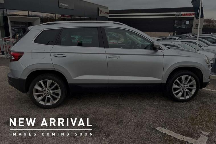Care connect, Drive mode selector, Driver fatigue sensor, Multifunction colour trip computer, Outside temperature gauge, Service interval indicator, SmartLink wireless for Apple and wired for Android, Start/stop system with regenerative braking, USB C Port x 2 in front centre console, DAB radio with Bluetooth, USB connection, Acoustic glass, Aero front windscreen wipers with intermittent function, Automatic headlight control system, Black electric window control buttons, Body colour door mirrors and handles, Body coloured bumpers, Electric front and rear windows with child proof lock, Full LED headlights + adaptive front light system + LED daytime running lights and front cornering fog lights, Headlight washers, Heated rear windscreen, LED rear lights with high functionality, Light assistant (coming/leaving home/tunnel light), Privacy glass, Safety reflectors on front doors, Third brake light, 1.5 litre bottle holders in driver and front passenger door panels, 12V socket in boot, 12v socket in front centre armrest with storage compartment and rear air vents, 2 Folding hooks and nets in boot, 2 Front readings lights for driver and passenger, 3 rear height adjustable headrests, 4 foldable roof handles with rear coat hooks, 4 lashing points on luggage floor, Backrest release, Cargo elements in boot, Chrome inner door handles, Folding tables on the front seat backrests, Front head restraints, Front seat and rear pockets, Height adjustable front three point seats belts with tensioners, Height adjustable passenger seat, Height/reach adjust steering wheel, Ice scraper, Illuminated and cooled glovebox, Illuminated luggage compartment, Isofix child seat preparation outer rear, Net programme in boot, Pen holder, Pollen filter, Rear boot cover, Rear reading lights, Retractable parcel shelf attachable to tailgate, Safety vest holder, Storage box in upper central dashboard closed, Storage compartment below the passenger seat, Sunvisors with illuminated vanity mirrors, Textile floor mats, Umbrella under passenger seat, VarioFlex seats with retractable parcel shelf, Chrome roof rails + chrome pack - Karoq, Airbags - Front side, head, knee and curtain, Automatic door unlocking in case of crash, Automatic fuel cut off in case of crash, Driver airbag, Electronic parking brake with auto hold function, Emergency rear braking signal, ESC including ABS, MSR, ASR, EDS, HBA, DSR, RBS, MKB and traction control, Front assist radar scanning of the space in front of the car with automatic braking, Hill hold control, Passenger airbag with switch-off function, Pedestrian monitor, Seatbelt reminder signalisation and pretensioner for all seats, Three point seatbelts rear, Two tone horn, Tyre pressure display, Tyre pressure monitor, Alarm with interior monitoring, back up horn and tilt sensor with safe function, Electronic engine immobiliser, Keyless entry and keyless start with safe system, Remote central locking with 2 remote folding keys, Chrome framed air vents, Storage on wheel cover,