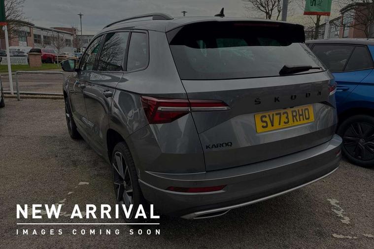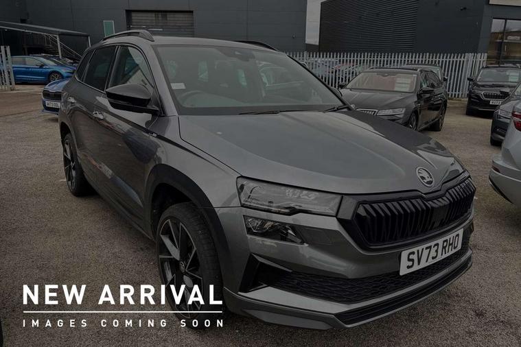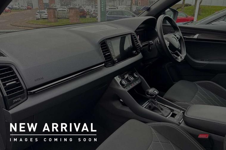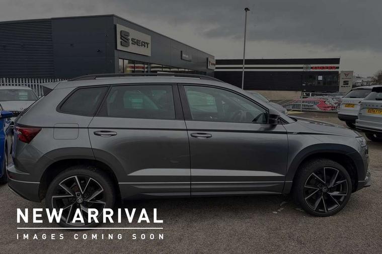 8" Digital display, Care connect, Driver fatigue sensor, Emergency services call system, Outside temperature gauge, Service interval indicator, SmartLink wireless for Apple and wired for Android, Start/stop system with regenerative braking, USB C Port x 2 in front centre console, Virtual cockpit, Virtual pedal with electrically operated boot door, 8 Speakers, DAB radio with Bluetooth, USB connection, Wireless charging without wireless aerial connection, Acoustic glass, Aero front windscreen wipers with intermittent function, Auto dimming rear view mirror with light and rain sensors, Black door mirrors, Black electric window control buttons, Black radiator grille, Black roof rails, Body colour door handles, Electric front and rear windows with child proof lock, Front door steps with SportLine logo, Heated rear windscreen, LED daytime running lights, LED rear lights with high functionality welcome effect and dynamic indicators, Light assistant (coming/leaving home/tunnel light), Panoramic sliding sunroof, Plastic scuff plates, Privacy glass, Protective door side sills in body colour, Rear diffuser, Rear side wing doors, Rear spoiler, Rear window wiper with washer system and intermittent control, Safety reflectors on front doors, Skoda lettering on tailgate in black, Sportline badge on front fender, Sportline decorative inserts with badging, Sports front and rear bumpers, 1.5 litre bottle holders in driver and front passenger door panels, 12V socket in boot, 12v socket in front centre armrest with storage compartment and rear air vents, 3 rear height adjustable headrests, 3 seat bench in 2nd row, 3 spoke leather sports multifunction steering wheel and silver stitching with gear shift paddles, 4 foldable roof handles with rear coat hooks, Black floor carpet, Black roof headlining, Chrome inner door handles, Double sided boot floor, Foldable hooks in the boot, Front head restraints, Height adjustable front three point seats belts with tensioners, Height/reach adjust steering wheel, Ice scraper, Illuminated glovebox, Illuminated luggage compartment, Isofix child seat preparation outer rear, Manual lumbar support for front seats, Pen holder, Pollen filter, Rear boot cover, Rear reading lights, Rear seats fixed folding and divided 60:40, Rubbish bin door, Safety vest holder, Single front passenger seat, Storage box in upper central dashboard closed, Sunvisors with illuminated vanity mirrors, Textile floor mats, Ticket holder, Titan black interior ceiling, Welcome animation with sportline logo, Boot pack - Karoq, Light Pack - Karoq, Parking pack - Karoq, Automatic door unlocking in case of crash, Automatic fuel cut off in case of crash, Child locks on rear doors, Driver airbag, Electronic parking brake with auto hold function, Emergency rear braking signal, ESC including ABS, MSR, ASR, EDS, HBA, DSR, RBS, MKB and traction control, Front side airbags, Hill hold control, Knee airbags, Passenger airbag with switch-off function, Pedestrian monitor, Seatbelt reminder signalisation and pretensioner for all seats, Three point seatbelts rear, Two tone horn, Tyre pressure display, Tyre pressure monitor, Alarm with interior monitoring, back up horn and tilt sensor with safe function, Electronic engine immobiliser, Keyless entry and start/stop, Remote central locking with 2 remote folding keys, Black air vent surround, Black centre console, Satin black dashboard, Satin black door trim, 19" Sagitarius anthracite alloy wheels with matt black aero inserts, Anti-theft wheel bolts protection, Matt black aero hub caps, Tool kit,