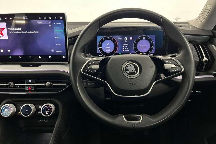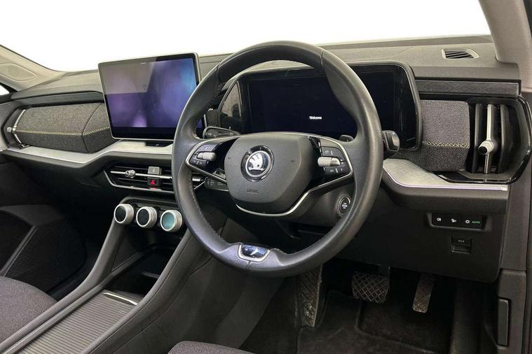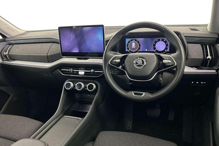 13" satellite navigation touchscreen display, Blind spot detection with door exit warning, Bluetooth system, ChatGPT functionality, Drive mode selector, Driver alert with fatigue sensor, Driver drowsiness alert system, Dry display cleaner, e call+, Front and rear parking sensors, Front cross traffic assist, Lane assist, PAS, Rear traffic assist, Rear view camera, Tailgate unlocking from outside, Traffic sign recognition, USB C Port x 2 in front centre console, Virtual Cockpit - 10.25" digital display, Voice control system, Wireless charging for two smartphones (15W) with cooling function, Wireless SmartLink for Apple CarPlay and Android Auto, Stop/start function, 2x USB-C in the rear, 8 Speakers, DAB Digital radio, Aero front windscreen wipers with intermittent function, All weather light, Auto dimming rear view mirror, Black wheel arch surrounds, Body colour bumpers, Body colour door mirrors and handles, Cornering light and poor weather light, Electric folding /adjustable/separted heated/folding door mirrors, auto dimming with boarding sports and memory function, Electric front and rear windows, Exterior black decorative trims, Heat insulating glass in windshield, Heated rear window, Ice scraper in fuel tank cap, Invisible tailpipe, LED daytime running lights, LED front fog lamps, LED Headlights, LED rear fog light, LED rear lights, LED third brake light in rear spoiler, Light assistant with automatic headlight control and coming home feature, Logo projection in door mirrors, Rear side wing doors, Rear spoiler, Rear window wiper, Safety reflectors on front and rear doors, Unique dark chrome design logo on alloy wheels, Window control switches with black trim, Windscreen wipers with rain sensor, Without engine designation, 1.5l bottle holder points in all door, 12V socket in boot, 1x centre rear reading light, 2 seat bench in 3rd row, 3 configurable smart dials with 32mm coloured display, 3 seat bench in 2nd row, 4 foldable roof handles with rear coat hooks, Ambient interior lighting - Dashboard, front-door stowage compartments, front and rear door panels and footwell lighting, Automatic gear selector on steering wheel, Chrome interior door handles, Driver/front passenger reading lights, Fabric headlining, Fixed bench 40:60:40 split folding backrests, Front and rear floor mats, Front centre armrest with jumbo box storage compartment, cup holder and 12V socket, Front courtesy lights, Height adjustable front headrests, Isofix child seat fittings in outer middle row rear seats and front passenger with top tether, Manual height adjustment for front passenger seats and thigh support extender, Manual lumbar support for front passenger seat, Manually adjustable steering column, Pollen filter, Rear centre armrest with cupholders, Rear seat boot backrest release, Retractable luggage compartment cover, Single front passenger seat, Skoda lettering on steering wheel, Sliding trunk cover, Small Bags on the inner sides of the front backrests, Storage pocket including mobile phone pockets on the backs of the front seats, Sunvisors with illuminated vanity mirrors, Three rear height adjustable headrests, Ticket holder on A Pillar, Tri zone climate control, Umbrella in door panel x1 made from sustainable materials, Upper and lower glovebox with card holder and coin compartment, USB C port by rear view mirror for charging only (15W), Variable boot floor, Auto door release and activation of warning lights in the event of an accident, Driver and front passenger airbag with knee airbag and front passenger airbag deactivation, Electric child locks, Electronic parking brake, ESC (incl. ABS+EMD+MSR+ASR+EDL+HBA+DSR+RBS+ESBS+MCB+TSA+XDS), Front assist with braking reaction to vehicles, pedestrians and cyclists, Front disc brakes, Fuel cut off safety device, Height adjustable front 3 point seatbelts + pretensioners, Hill hold control, Junction assist with automatic emergency braking, Rear disc brakes, Safety vest holder in door, Seat belt reminder for all seats, Three point rear seat belts, Two tone horn, Tyre pressure monitor, Alarm with interior monitoring and tilt sensor with safe function, Anti-theft wheel bolts, Immobiliser, Remote central locking with 2 keys, Breakdown kit,