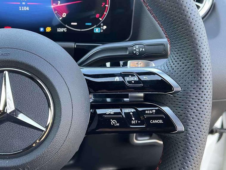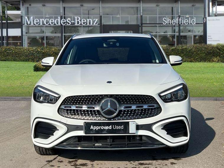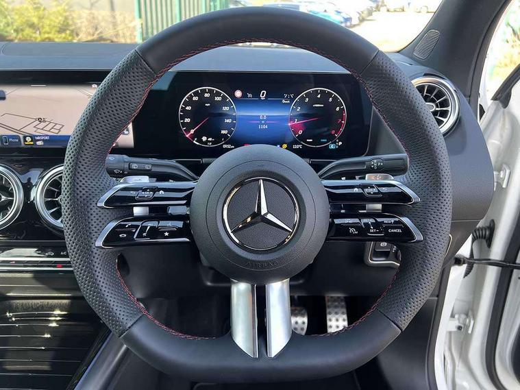 10.25 inch touchscreen central media display, 10.25" Digital instrument cluster display screen, Attention assist, Blind spot assist, Direct steering, DYNAMIC SELECT with a choice of driving modes (ECO, Comfort, Sport and Individual), ECO start/stop function, Fluid level warning indicator for fuel, oil, coolant and washer fluid, Hard-disk navigation, Hey Mercedes Voice activation, Lamp failure indicator, Lane keeping assist (LKA), Mercedes me connect including emergency call system, accident recovery, breakdown and maintenance management, Mercedes me remote services, Multi function trip computer, Outside temperature gauge, Owners manual and service booklet in English, Pre-installation of private car share, Radio aerial integrated into front and rear windshields, Service indicator (ASSYST), Smartphone integration with Apple CarPlay and Android auto, Speed limit assist, Wireless charging, Lowered comfort suspension, Rear axle multi-link, Bluetooth connectivity including audio streaming, DAB Digital radio, MBUX multimedia system, Mercedes Benz sound system (100 W) with 6 speakers, Adaptive brake lights, Adaptive highbeam assist, Aluminium roof rails, AMG front apron with front splitter in the colour of the vehicle with chrome trim element, AMG rear apron with visible tailpipe trim and chrome trim element, AMG specific/dual flow exhaust pipes in chrome (non-functional), Automatic headlamp activation, Beltline trim and window line trim strip in high gloss aluminium, Black grained side sill trim with chrome inlay, Car wash function, Dark privacy glass from B-pillar backwards, Electric front windows, Electric rear windows, Electrically adjustable and heated door mirrors with integrated LED indicators, Exhaust system with 2 Visible tailpipe trim elements and rear apron with trim in chrome, Heat insulating dark tinted glass, Heated glass rear windscreen + timer control, Interior mirror with black reading lamps and frameless, LED high performance headlamps with integrated LED daytime running lights, LED tail lights, LED third brake light, Rain sensor windscreen wipers, Rear fog lights, Rear side wing doors, Rear wiper, Wheel arch liners in the colour of the vehicle, 3 seat bench in 2nd row, 3 spoke flat bottom multifunction nappa leather steering wheel, 4 way lumbar support, 40:20:40 split folding rear seat backrests, Adjustable head restraints, Air conditioning - air vents with silver chrome surround, Air conditioning - One zone THERMATIC automatic climate control with automatically controlled air distribution, AMG floor mats, Artico man-made leather/Microcut microfibre upholstery with red contrast stitching, Auto Mercedes-Benz child seat recognition sensor, Black roof lining, Courtesy light in boot, Fluorescent jacket, Front centre armrest with stowage, Galvanished gear shift paddles on steering wheel in silver chrome, Heated front seats, Illuminated glovebox, Interior lighting - 64 colour Ambient lighting, Luggage net on driver/front passenger seat backrest, Manually height and reach adjustable steering column, Single front passenger seat, Sports pedals in brushed stainless steel with black rubber studs, Sports seats, Sports steering wheel, Stowage compartment in centre console, Stowage compartment with retractable cover, Sunvisors with illuminated vanity mirrors, Twin front cup holders, Two outer rear seat isofix and top tether child seat fixing points, Comfort seat pack - GLA Class, Interior lighting with light and sight pack - GLA, Keyless go comfort package - GLA, Mirror pack - GLA Class, Parking package with reversing camera - GLA, USB package plus - GLA, Winter package - GLA, 3 rear 3 point seatbelts, ABS with Brake Assist, Active bonnet pedestrain safety measure which detects an impact and raises bonnet by 65mm, Active brake assist includes forward collision warning system with autonomous braking, Adaptive brake assist with hold function and hill start assist, Black seatbelts, Bonnet with power domes, Brake pad wear warning indicator, Childproof locks manually operated for rear doors and electrically operated for rear power windows, Crash responsive emergency lighting, Driver and passenger head and side airbags, Drivers knee airbag, Dual stage driver/passenger airbags, Electronic parking brake, ESP curve dynamic assist, ESP with ASR, Front and rear seatbelt reminder, Front brake callipers with Mercedes Benz logo lettering on front, Front brake discs internally ventilated and perforated, Front passenger seat occupancy sensor, Sports braking system, Tyre pressure monitoring system, Warning triangle and first aid kit, Window airbags, Alarm system with immobiliser and interior protection -Thatcham category 1, Guard 360 degree vehicle protection, Remote central locking and crash sensor with emergency opening function, Light longitudinal grain aluminium trim, 19" AMG 5 twin spoke light alloy wheels aerodynamically optimised, painted in high-gloss black and with a high-sheen finish RTG, Summer tyres, Tirefit tyre sealant kit,