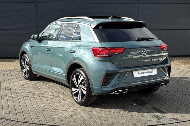 10.25" Digital cockpit pro, Advanced driver attention and drowsiness monitor, Dynamic road sign display, Emergency call service, Lane keeping system Lane Assist, Mobile phone interface, Modified key software - reduce switch off time for key status change to Long no motion, Online services, Park assist including front and rear parking sensors, Service interval indicator, Tailgate/trunk lid release from outside, Think blue trainer driver tips and journey analysis, Warning sound and light for front seatbelts unfastened, Wireless app connect, Battery regeneration during braking, Start/stop function with battery regeneration, DAB Digital radio, Diversity antenna for FM reception, Front and rear 6 speakers, Music playback - MP3, WMA and AAC files, Premium USB cable in choice of either Apple or Android smartphone compatibility, SD card slot, Simultaneous pairing of 2 compatible mobile devices, Title and cover art display, We Connect and We Connect Plus functionality, Auto dimming interior rear view mirror, Automatic hazard lights activation under emergency braking, Automatic headlight control with LED separate daytime running lights with coming/leaving home function, Body coloured exterior mirror housings and door handles, Electrically adjustable and heated door mirrors, Extended roof spoiler, Exterior mirrors aspherical on driver side, convex on front passenger side, External USB type C socket and charging sockets, Front windscreen wiper with intermittent wipe and 4 position delay, Heated rear window, LED 3rd brake light, LED rear combination lamps, LED rear number plate lights, Power windows with comfort operation and circuit breaker, Privacy glass for rear side windows and rear window, R-Line design body coloured bumpers, Rain sensor, Rear exhaust tailpipe, Rear fog light on one side and reversing lights on both sides, Rear side wing doors, Rear wash/wipe with intermittent wipe setting, Remote electrically foldable door mirrors, puddle lights and reverse activated passenger's door mirror, 12V power socket in centre console, 3 rear head restraints, 3 seat bench in 2nd row, 4 load lashing points in luggage compartment, Air care climatronic air conditoning system with active combination filter and 2-zone temperature control, Black roof lining, Chrome plated decorative trims, Chrome plated radiator grille inserts, air vent surrounds and light switch surrounds, Door and side trim panel with leatherette insert, Front + rear carpet mats, Front centre armrest, Front cupholders x 2, Front footwell illumination, Front reading light, Front scuff plates with R Line logo, Front seat back storage pockets, Glove compartment door with light, Instrument lighting, white adjustable panel illumination, Interior ambient lighting and surround lighting, Interior light delay, Isofix child seat preparation, Leather gearshift handle, Load-through provision with cup holder when folded down ('Unsplit rear seat bench, split folding backrest, with centre armrest), Luggage compartment lighting, Single front passenger seat, Stainless steel pedals, Storage compartment in left and right luggage area, Storage compartment in rear doors, Storage compartments in driver and front passenger doors, Sunvisors with illuminated vanity mirrors, Variable boot floor, height adjustable and removable, Driver assistance pack without proactive passenger protection - T-Roc, 3 point height adj front seatbelts + pretensioners, 3 point seatbelts in outer rear with ECE label, ABS, Child locks on rear doors, City emergency braking and pedestrian monitoring, Driver and front passenger airbag with front passenger airbag deactivation, Driver and front passenger safety-optimised head restraints, Drivers seatbelt reminder, Electronic parking brake, Electronic Stability Control (ESC) inc EDL (Electronic Differential Lock) and ASR (Traction Control), Front and rear passengers curtain airbag system including front side airbags, Hill start assist, Predictive pedestrian protection, Rear disc brakes, Two tone horn, Tyre pressure loss indicator, Volkswagen roadside assistance, Piano black decorative inserts in dashboard and front door trim panels, Trims for alloy wheels,