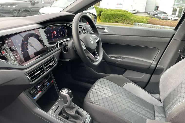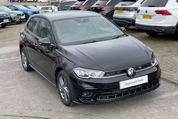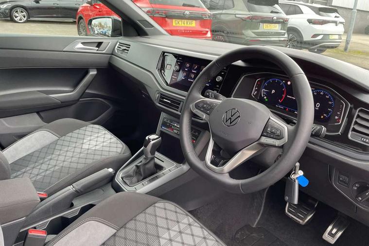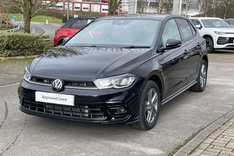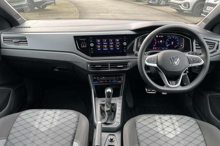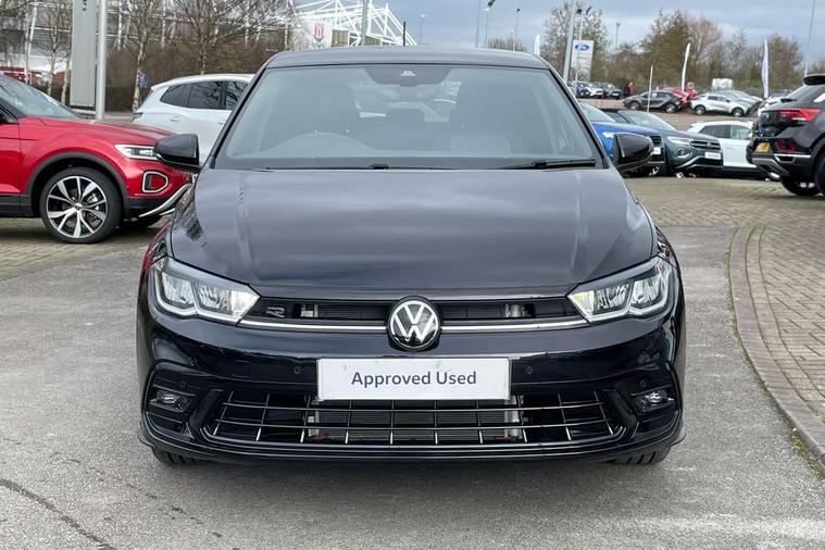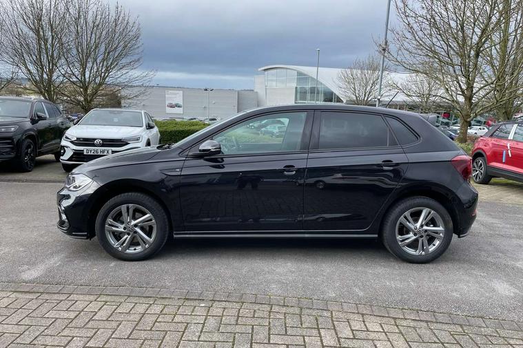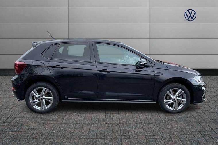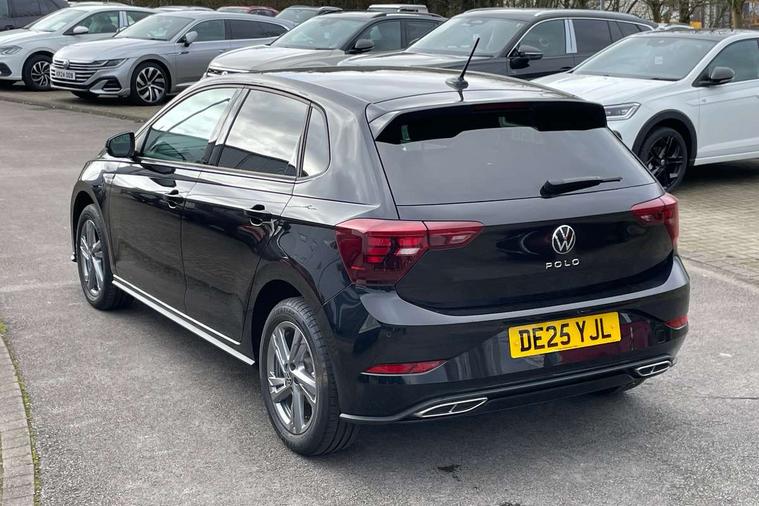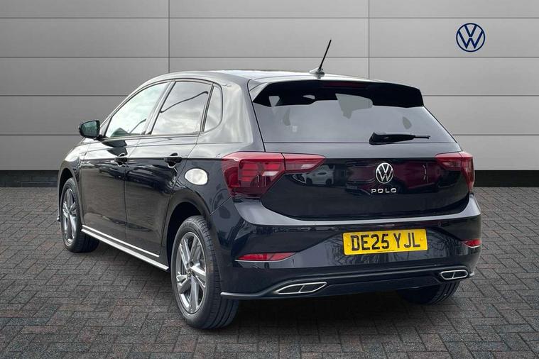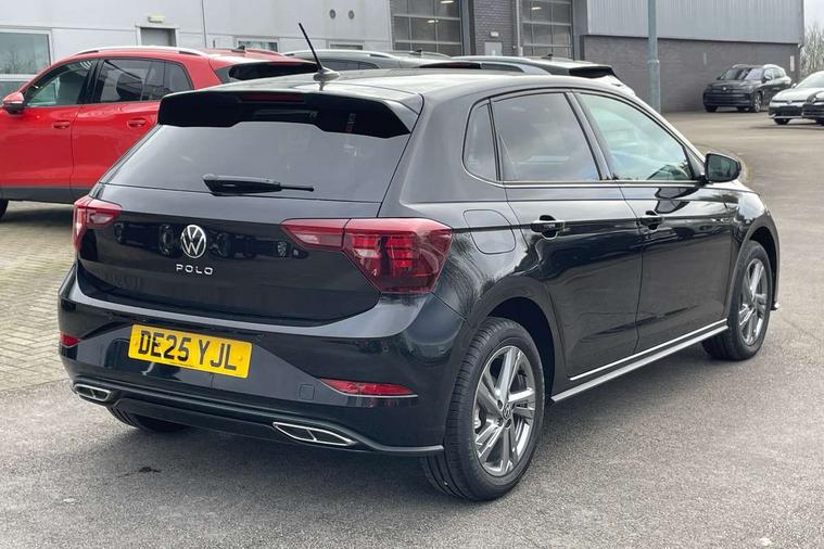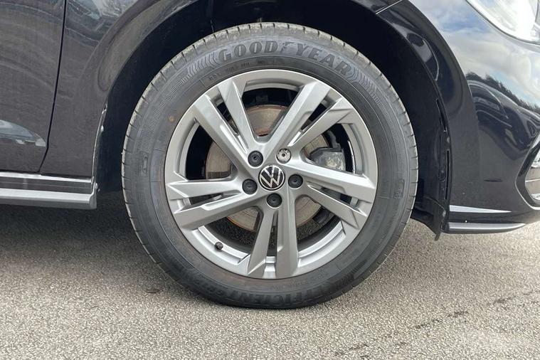 Adaptive cruise control with follow-to-stop and speed limiter, Advanced driver attention and drowsiness monitor, Bluetooth mobile phone interface, Digital Cockpit Pro with 10.25" Display, Dynamic road sign display, Emergency call service, Multifunction camera, Power assisted speed sensitive steering, Preparation for We connect and We connect plus, Speedo and rev counter, electronic odometer, trip, service interval display and fuel gauge, Standard rear axle, Travel Assist - Lane keeping system and traffic jam assist, Travel assist including emergency assist, Trip computer, Warning signal and warning light for front and rear seatbelts not fastened, Washer fluid level indicator, Wireless app connect, Front wheel drive, Rear shock absorpion, Start-stop system with battery regeneration (recuperation - energy recovery during braking), DAB Digital radio, Diversity antenna for FM reception, Front and rear 6 speakers, Body colour bumpers, Body colour door handles, Electric front windows, Front scuff plates with R-Line logo, Heat insulating glass windscreen, Power folding adjustable/heated exterior mirrors and front passenger exterior mirror lowering function, Rear electric windows, Rear fog light, Rear side wing doors, Rear windscreen washer and wiper with interval delay, Third brake light, 12V power socket in centre console, 2 USB-C ports in the front, 2 USB-C charging sockets on the center console in the rear, 3 rear head restraints, 60/40 split folding rear seat and rear seat bench not split, Air care climatronic air conditoning system with active combination filter and 2-zone temperature control, Black roof lining, Carpet mats, front and rear, Chrome plated radiator grille inserts, air vent surrounds and light switch surrounds, Door and side trim panel, Driver and front passenger seat height adjustment, Driver/passenger sunvisors with illuminated vanity mirrors, Front centre armrest, Front footwell illumination, Front seat backrest storage pockets, Front sports comfort seats, Handbrake lever handle in leather, Headliner in recycled material, Isofix child seat preparation easy-fit (for two outer rear seats, and front passenger seat) compatible with I-size, Karoso artvelours cloth upholstery, Leather trimmed gear knob, LED interior light with switch off delay and dimmer, 2 reading lights front and rear, Luggage compartment cover, Luggage compartment floor, Luggage compartment lighting, Lumbar adjustment for front seats, Single front passenger seat, Stainless steel pedals, Standard pedal cluster, Three spoke leather wrapped multifunction steering wheel with shifting paddles, Light and sight pack - Polo R-Line/Black Edition, 3 point height adj front seatbelts + pretensioners, 3x3 point rear seatbelts, ABS, Driver and front passenger airbag with front passenger airbag deactivation, Drivers and front passengers safety optimised head restraints, ESC (Electronic stability control) + EDL (Electronic Differntial lock) and ASR (Traction control), Extended and predictive pedestrian/ cyclist protection, Front curtain and side airbags with center airbag, Front/rear disc brakes, Hill hold control, Manual child lock in rear doors, Single tone horn, Tyre pressure loss indicator, Alarm with interior protection, Anti-theft alarm system with interior monitoring, backup horn, and towing protection, Anti-theft wheel bolts, Electronic engine immobiliser, Chrome applications on rotary light, mirror adjustment, window regulator switches, outlet with frame in black, Dark grey anodised matt decorative inserts in dash and front door panels, 16" Coventry alloy wheels, Low rolling resistance tyres,