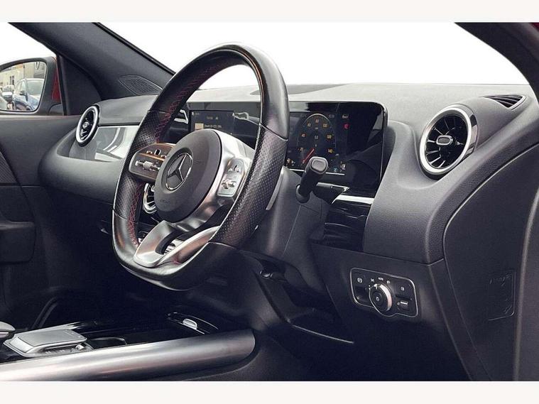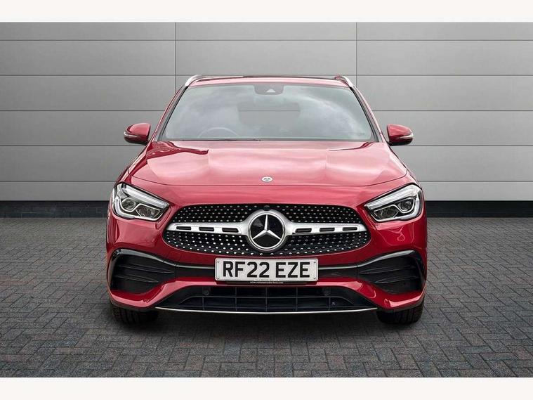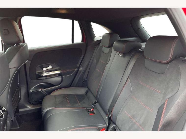 180 degree reversing camera with parking guidelines, 7 inch digital instrument cluster display, 7" touchscreen media display, Active lane keeping assist, Attention assist, Cruise control + speed limiter, Direct steering, DYNAMIC SELECT with a choice of driving modes (ECO, Comfort, Sport and Individual), ECO start/stop function, Fluid level warning indicator for fuel, oil, coolant and washer fluid, Hard-disk navigation, Hey Mercedes Voice activation, Lamp failure indicator, Mercedes me connect including emergency call system, accident recovery, breakdown and maintenance management, Mercedes me remote services, Multi function trip computer, Outside temperature gauge, Owners manual and service booklet in English, Pre-installation of private car share, Radio aerial integrated into front and rear windshields, Service indicator (ASSYST), Speed limit assist, Status display for rear seat belts in instrument cluster, Lowered comfort suspension, Rear axle multi-link, 2 USB ports (type C) in rear stowage compartment and one in front of center console, Bluetooth connectivity including audio streaming, DAB Digital radio, MBUX multimedia system, Media interface, Mercedes-Benz sound system - 100W, Adaptive brake lights, Aerial for GPS, Aluminium roof rails, AMG front and rear apron, AMG specific/dual flow exhaust pipes in chrome (non-functional), Automatic headlamp activation, Beltline strips and weather strip in chrome, Black grained claddings with chrome parts, Body colour bumpers, Body colour door handles, Body colour door mirrors, Car wash function, Dark privacy glass from B-pillar backwards, Electric front windows, Electric rear windows, Electrically adjustable and heated door mirrors with integrated LED indicators, Front door sills with Mercedes-Benz lettering, Heated glass rear windscreen + timer control, Heated windscreen wash system, Interior mirror with black reading lamps and frameless, LED high performance headlamps with integrated LED daytime running lights, LED tail lights in two piece design, LED third brake light, Matt titanium grey front and rear apron trim, Rain sensor windscreen wipers, Rear fog lights, Rear side wing doors, Rear wiper, Roof spoiler, Single lamella raditor grille with chrome dotted diamond grille and inlay, 12V power socket in centre console, 3 seat bench in 2nd row, 3 spoke multifunction sports steering wheel in nappa leather with flattened bottom and perforated grip area, 40:20:40 split folding rear seat backrests, Adjustable head restraints, Air conditioning - Two zone thermotronic luxury automatic climate control with display, Ambient lighting in front headrests, AMG floor mats with AMG lettering in front, Artico man-made leather/Microfibre Dinamica upholstery with red contrast stitching, Auto Mercedes-Benz child seat recognition sensor, Black roof lining, Brushed door pulls in silver chrome, Courtesy light in boot, Front centre armrest with stowage, Galvanished gear shift paddles on steering wheel, Heated front seats, Illuminated glovebox, Leather trimmed gearknob, Luggage net on driver/front passenger seat backrest, Manually height and reach adjustable steering column, Multi-gesture touchpad control on center console, Single front passenger seat, Sports pedals in brushed stainless steel with black rubber studs, Sports seats, Stowage compartment in centre console, Stowage compartment with retractable cover, Sunvisors with illuminated vanity mirrors, Twin front cup holders, Two outer rear seat isofix and top tether child seat fixing points, AMG body styling pack - GLA, Comfort seat pack - GLA Class, Interior lighting with light and sight pack - GLA, Load compartment pack - GLA, 3 rear 3 point seatbelts, ABS with Brake Assist, Active bonnet pedestrain safety measure which detects an impact and raises bonnet by 65mm, Active brake assist includes forward collision warning system with autonomous braking, Adaptive brake assist with hold function and hill start assist, Bonnet with power domes, Brake pad wear warning indicator, Childproof locks manually operated for rear doors and electrically operated for rear power windows, Crash responsive emergency lighting, Driver and passenger head and side airbags, Drivers knee airbag, Dual stage driver/passenger airbags, Electronic parking brake, ESP curve dynamic assist, ESP with ASR, Front and rear seatbelt reminder, Front brake callipers with Mercedes Benz logo lettering on front, Front brake discs internally ventilated and perforated, Front passenger seat occupancy sensor, Tyre pressure monitoring system, Warning triangle and first aid kit, Window airbags, Alarm system with immobiliser and interior protection -Thatcham category 1, Keyless Go starting function, Remote central locking and crash sensor with emergency opening function, Urban guard vehicle protection, Vehicle key with decorative surround in chrome, Carbon structure trim, Chrome air vent surrounds, 19" AMG 5 twin spoke light alloy wheels aerodynamically optimised painted in tantalite grey with a high sheen finish, Summer tyres, Tirefit tyre sealant kit,