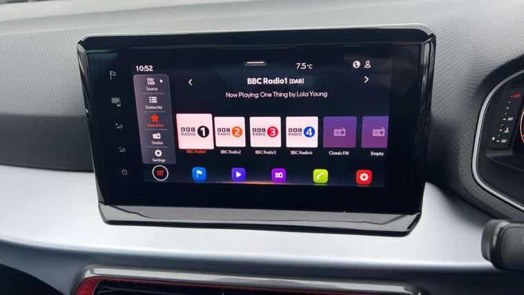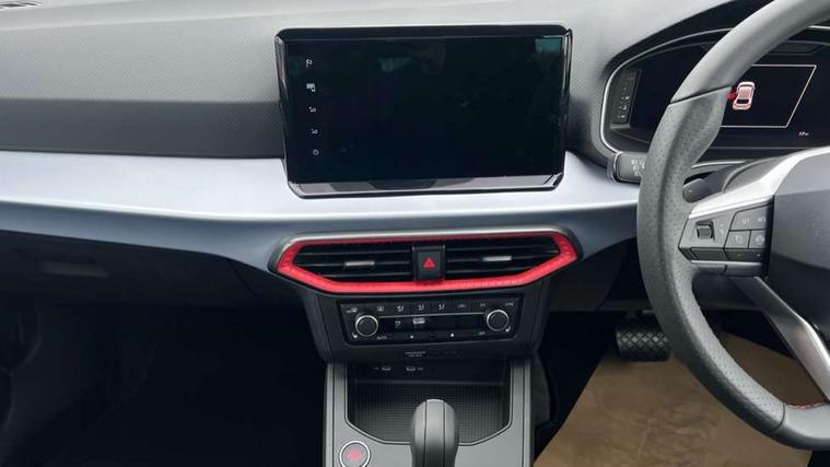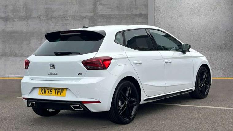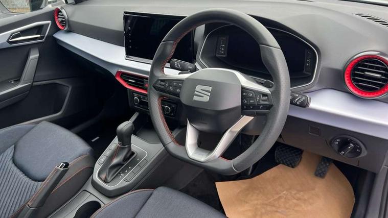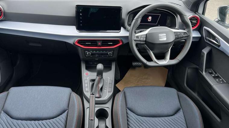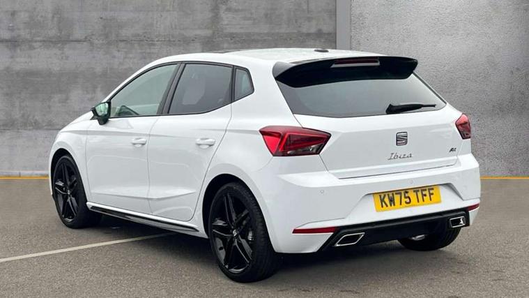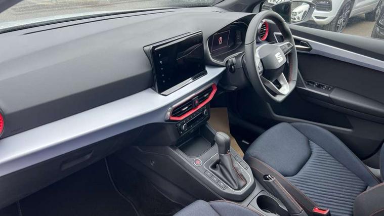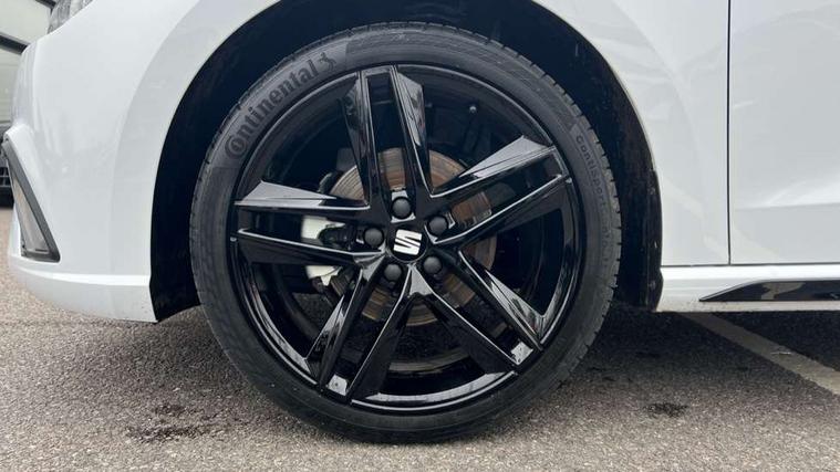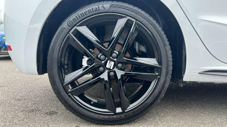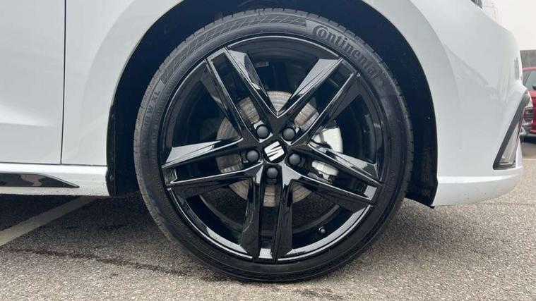 'Lights On' Reminder warning buzzer, 10" Digital cockpit, 9.2" touchscreen navigation system with type C USB socket, Voice control and DAB/AM/FM radio, Auto start and stop system, Bluetooth audio streaming with handsfree system, Digital clock, E-call, Full link smartphone integration with mirror link, wireless apple carplay, Google android auto + USB Type C cable for apple and android devices, Lane assist, Low fuel warning light, Outside temperature gauge, Power Steering, Rear parking sensor, Seat connect plus with safety, service, remote and online, SEAT drive profiles and ECO function, SEAT logo boot release, Speed limiter, Traffic sign recognition, Trip computer, Sports suspension, Auxiliary input socket, Radio/MP3 player, SD card slot, Steering wheel mounted controls, Anti theft roof antenna, Auto dimming rear view mirror, Automatic rain sensing wipers, Black door mirror caps, Black roof spoiler, Black side skirts, Body colour bumpers, Body colour door handles, Brilliant black window surrounds, Dark tinted rear windows, Electric adjustable/heated/folding door mirrors, Electric front windows, Electric headlight adjustment, Electric panoramic sunroof, Electric rear windows, Front/rear fog lights, FULL LED automatic headlights with dynamic headlight range control, coming and leaving home, LED daytime running lights, LED 3rd brake light, LED tail lights, Rear roof spoiler with FR twin exhausts, Rear side wing doors, Rear wiper, 3 seat bench in 2nd row, 60/40 split folding rear seat, Ambient interior lighting, Chrome detailing and black headlining, Dual zone climate control with combination filter, Front courtesy lights, Front cupholders x 2, Front reading lights, Front sport bucket seats, Gear shift indicator, Glovebox, Heated front seats, Height adjustable front and rear headrests (five), Height adjustable front seats, Height/reach adjust steering wheel, Illuminated air vent surrounds, Illuminated boot, Instrument lighting with brightness control, Isofix, Leather multifunction flat bottomed sports steering wheel with gearshift paddles, Microsuede cloth upholstery, Passenger sunvisor, Single front passenger seat, Storage pockets on back of front seats, Sunvisors with mirror and driver side card holder, Safety and driving pack (S) - Ibiza, ABS, Active front headrests, Child locks on rear doors, Electronic stability control, Energy recovery system, Front driver and passenger side airbags with curtain airbag and front passenger airbag deactivation, Hill hold control, Multi-Collision braking, Seat belt reminder for front and rear seats, Tiredness recognition system, Tyre pressure monitoring system, KESSY Keyless entry and go, Locking wheel bolts, Perimeter alarm and interior monitoring with backup horn and tow away protection, Remote central locking + deadlocks, 18" Performance alloy wheels in glossy black,