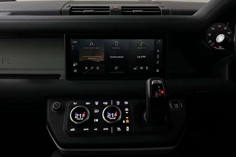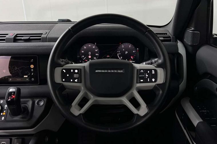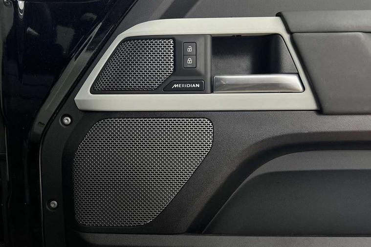 360 degree parking aid, 3D Surround Camera with 360 View, 180 Rear View, Front Traffic Detection, Forward Vehicle Guidance, Tow Hitch Assist and clear sight Ground View, Adaptive cruise control, Android Auto, Apple CarPlay, Assisted tailgate with soft close, Blind spot assist, Bluetooth system, Brake pad wear indicator, Clear exit monitor, Connected navigation pro, Driver condition monitor, Electric power assisted steering (EPAS), Interactive driver display, Lane keep assist, Push button start, Rear traffic monitor, Traffic sign recognition with adaptive speed limiter, Trip computer, Wade Sensing, 8 speed automatic transmission, Adaptive dynamics, All wheel drive system, Twin speed transfer box, DAB Radio (Digital Audio Broadcasting), Meridian 400w sound audio system with 11 speakers and subwoofer, Pivi pro connected, Automatic headlight levelling, Automatic headlights, Black exposed rear recovery eyes, Centre high mounted stop light, Electric heated/power fold door mirrors with approach lights and auto dimming driver side, Electric windows with one touch open/close and anti-trap, Follow me home lighting, Heated rear window with timer, Heated windscreen, LED tail lights, Privacy glass, Puddle lights, Rain sensing windscreen wipers, Rear fog lights, Rear side wing doors, Rear wiper, Side hinged tailgate, Trailer stability assist, X-Dynamic badge, 12V power socket in loadspace, 2 seat bench in 3rd row, 3 seat bench in 2nd row, Alpine lights, Configurable cabin lighting, Durable rubber cabin flooring, Durable rubber loadspace flooring, Footwell lights, Front passenger isofix child seat attachment, Loadspace cover, Loadspace Hook, Multifunction steering wheel, Overhead stowage for sunglasses, Premium cabin lighting, Rear headrests, Rear ISOFIX, Rear reading lights, Single front passenger seat, Storage glovebox, Sunvisors with illuminated vanity mirrors, Online pack with data plan - Defender, 7 three point seatbelts, ABS, Brake hold function, Cornering brake control (CBC), Customer configurable autolock, DSC - Dynamic Stability Control, EBD - Electronic brakeforce distribution, Electric parking brake (EPB), Emergency brake assist, Emergency braking, ESP + traction control, Front airbags with passenger seat occupant detector, HDC - Hill descent control, Hill launch assist, Low traction launch, Power operated child locks, Remote for (e-Call, Optimised assistance call, InControl app, Climate, beep and flash and door), RSC - Roll stability control, Seat belt reminder, TPMS (Tyre pressure monitoring system), Alarm, Immobiliser, Intrusion sensor, Keyless entry, Locking wheel nuts,