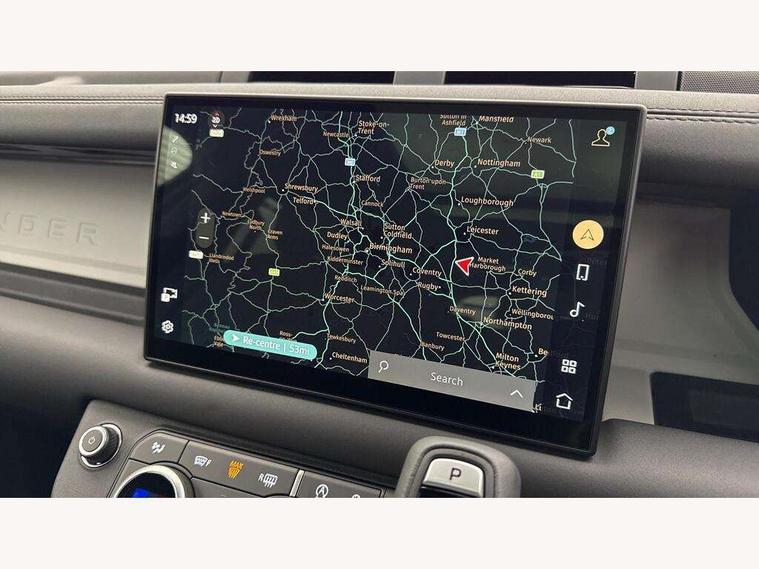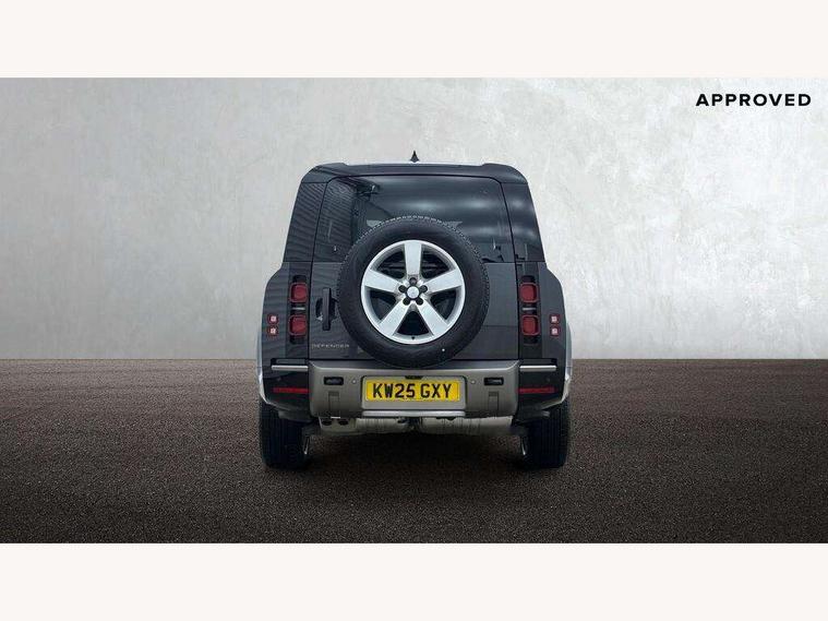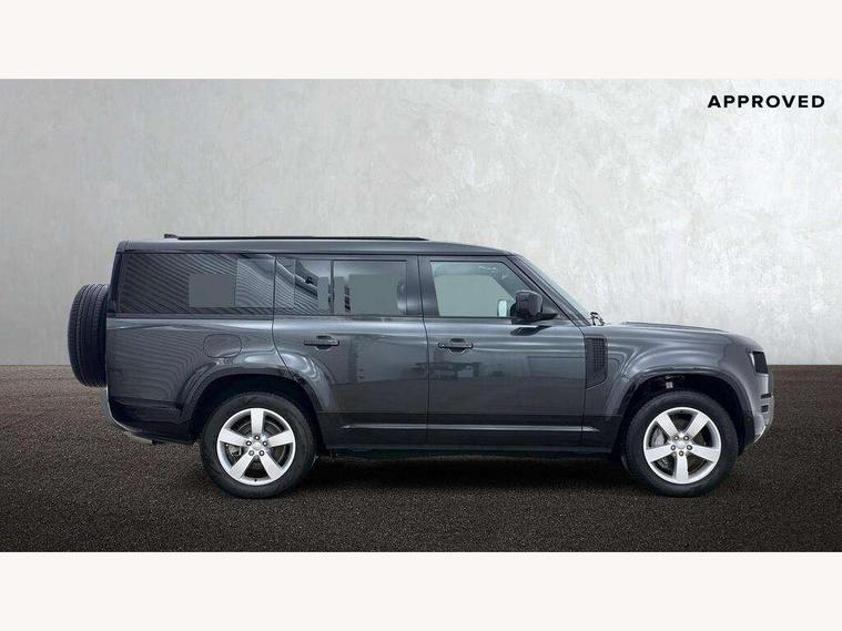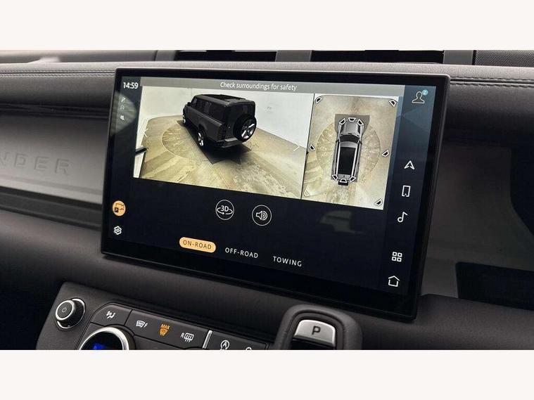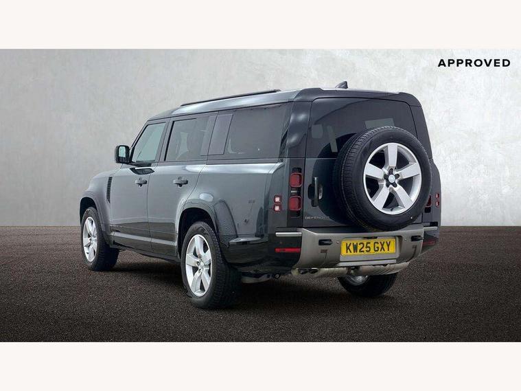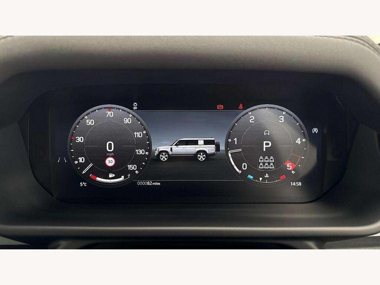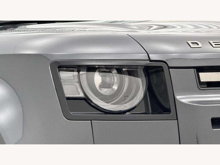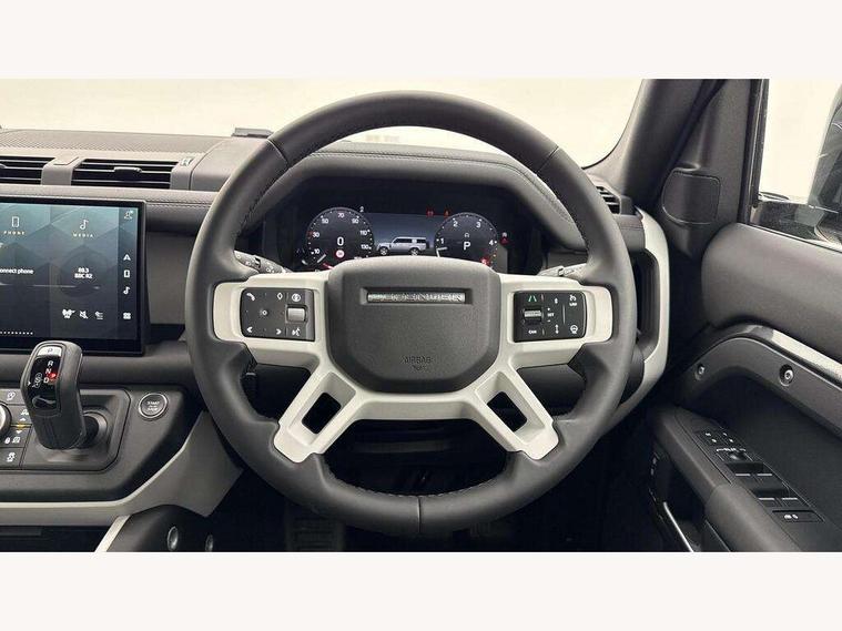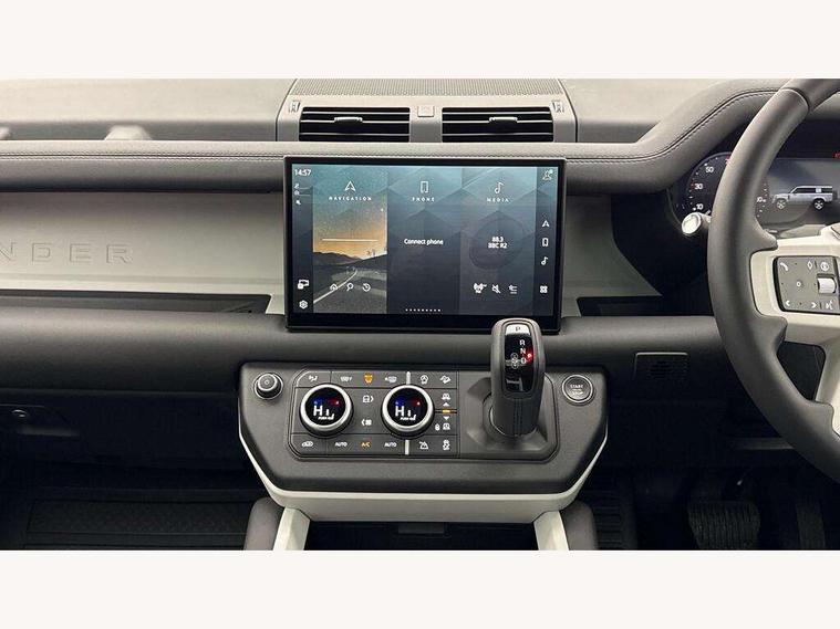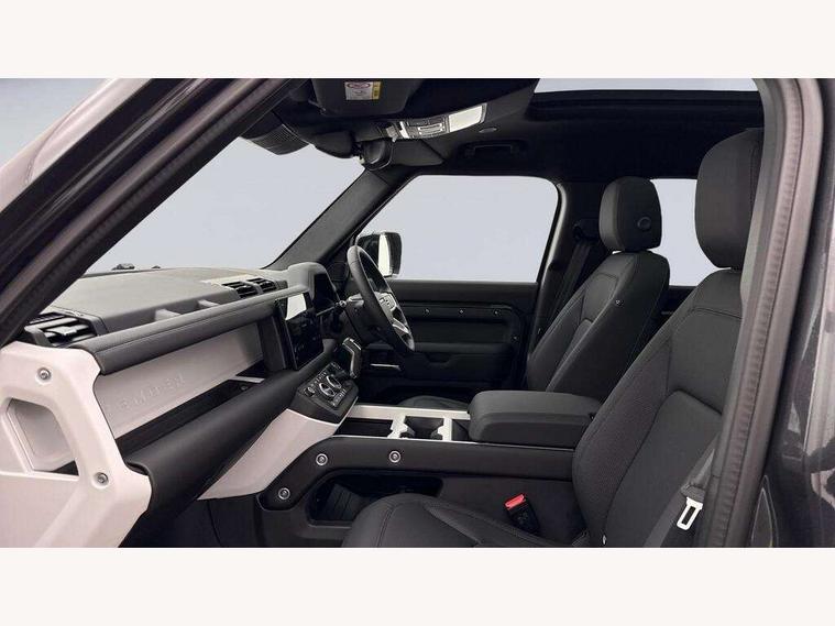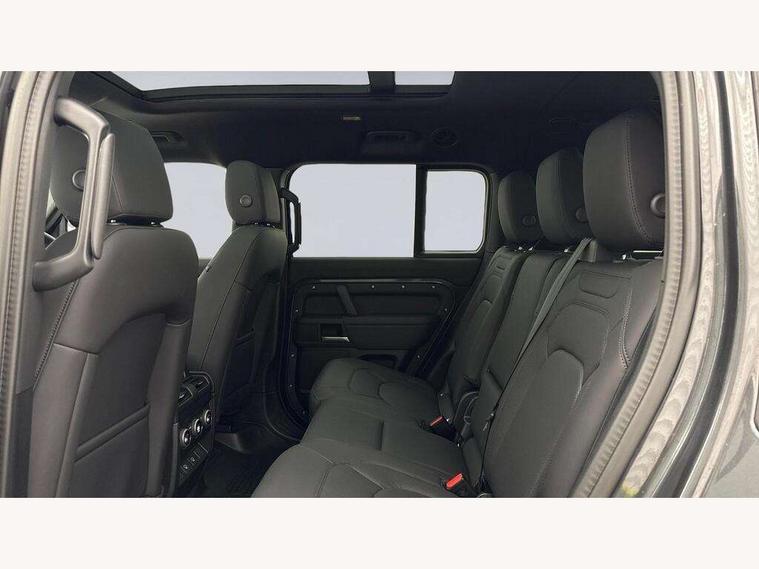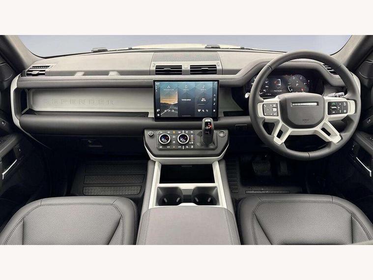 1 x USB-C (power only) & 1 x USB-C (power & data) in Row 1, 2 x USB-C in Row 2, 11.4" touchscreen, 2 x USB-C in Row 3, 360 degree parking aid, 3D Surround Camera with 360 View, 180 Rear View, Front Traffic Detection, Forward Vehicle Guidance, Tow Hitch Assist and clear sight Ground View, Adaptive cruise control, Android Auto, Apple CarPlay, Blind spot assist, Bluetooth system, Brake pad wear indicator, Clear exit monitor, Connected navigation pro, Driver condition monitor, Electric power assisted steering (EPAS), Interactive driver display, Lane keep assist, Push button start, Rear collision monitor, Rear traffic monitor, Traffic sign recognition with adaptive speed limiter, Trip computer, Wireless device charging, 8 speed automatic transmission, Adaptive dynamics, All wheel drive system, Electronic air suspension, Twin speed transfer box, DAB Radio (Digital Audio Broadcasting), Meridian 400w sound audio system with 11 speakers and subwoofer, Pivi pro connected, Automatic headlight levelling, Automatic headlights, Black exposed rear recovery eyes, Black roof rails, Body coloured bonnet, Centre high mounted stop light, Electric heated/power fold door mirrors with approach lights and auto dimming driver side, Electric windows with one touch open/close and anti-trap, Follow me home lighting, Heated rear window with timer, Heated windscreen, Illuminated metal treadplates with brand name script, LED tail lights, Privacy glass, Puddle lights, Rain sensing windscreen wipers, Rear fog lights, Rear side wing doors, Rear wiper, Side hinged tailgate, Sliding panoramic roof, Standard tail door, Trailer stability assist, 12V power socket in loadspace, 3 seat bench in 2nd row, 3 seat bench in third row, Air quality sensor, Cabin Air Purification plus, Centre console with armrest, Configurable cabin lighting, Durable rubber cabin flooring, Durable rubber loadspace flooring, Footwell lights, Front head restraints, Front passenger isofix child seat attachment, Heated steering wheel, Loadspace cover, Loadspace Hook, Multifunction steering wheel, Overhead stowage for sunglasses, Rear headrests, Rear ISOFIX, Rear reading lights, Single front passenger seat, Storage glovebox, Sunvisors with illuminated vanity mirrors, Twin front cupholders, Non-smoker package, Online pack with data plan - Defender, 5 x 3 point seatbelts, ABS, Brake hold function, Cornering brake control (CBC), Customer configurable autolock, Driver and passenger airbags, DSC - Dynamic Stability Control, EBD - Electronic brakeforce distribution, Electric parking brake (EPB), Emergency brake assist, Emergency braking, ESP + traction control, Front airbags with passenger seat occupant detector, HDC - Hill descent control, Hill launch assist, Low traction launch, Power operated child locks, Remote for (e-Call, Optimised assistance call, InControl app, Climate, beep and flash and door), RSC - Roll stability control, Seat belt reminder, TPMS (Tyre pressure monitoring system), Alarm, Immobiliser, Intrusion sensor, Keyless entry, Locking wheel nuts, Secure tracker pro, All season tyres,