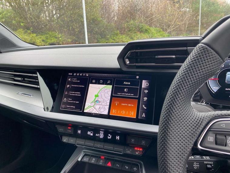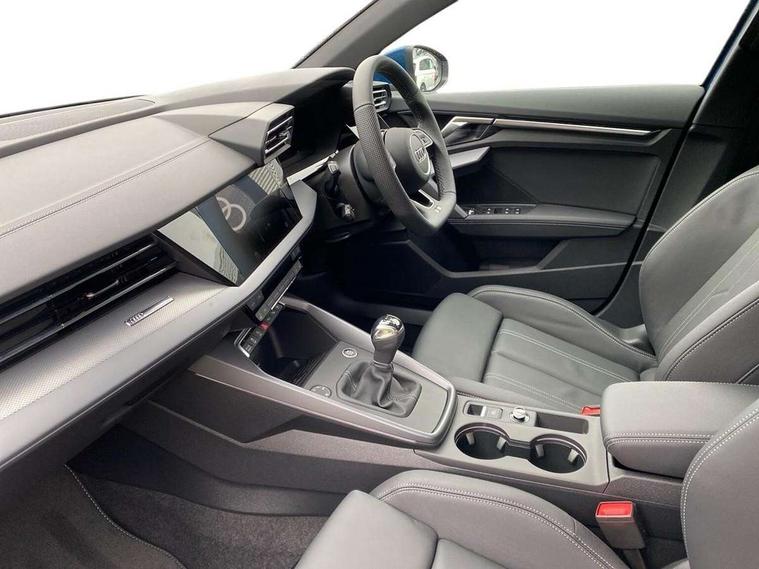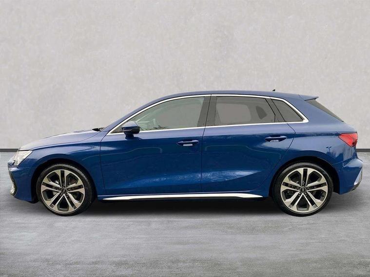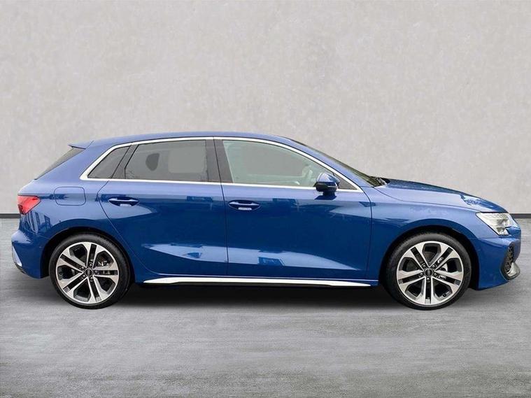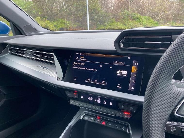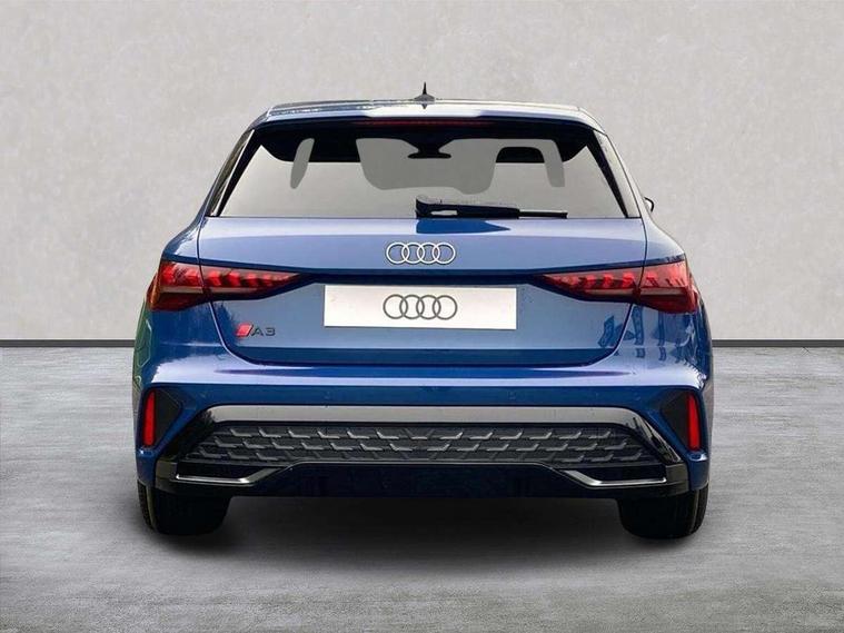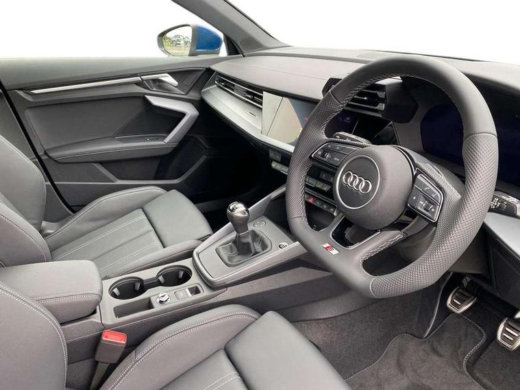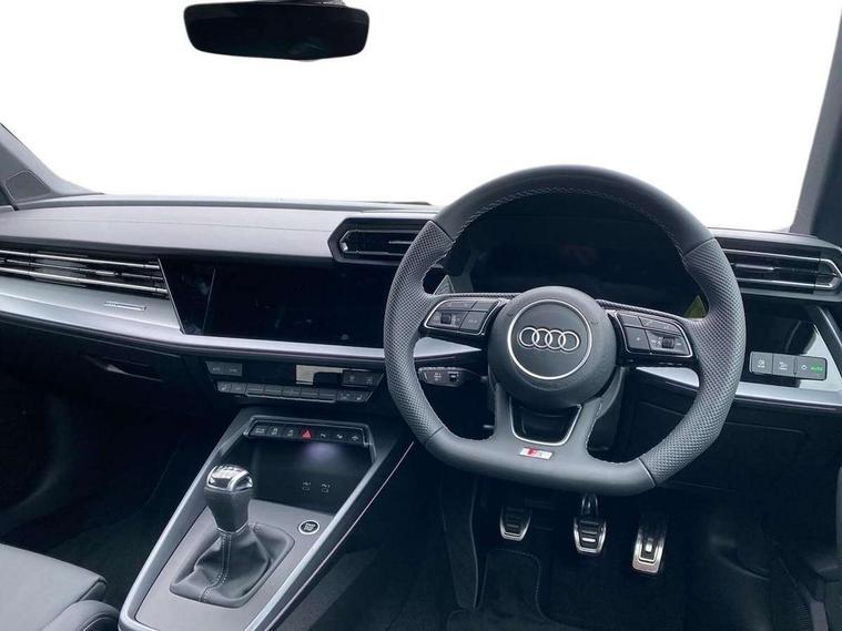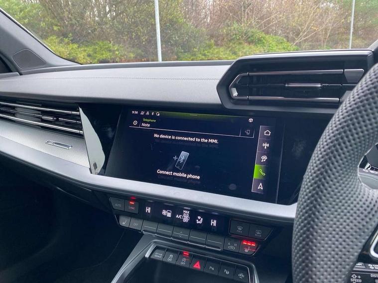 Adaptive cruise control (ACC), Adjustable speed limiter, Audi drive select (Auto, Comfort, Dynamic, Efficiency and Individual), Audi smartphone interface with app store includes wireless Apple carplay, Android auto and Amazon alexa integration, Audi virtual cockpit plus - 12.3" full HD resolution dynamic digital instrument cluster, Automatic start/stop system with recuperation, Bluetooth interface, Camera based traffic sign recognition, Collision avoidance assistant, Driver attention and fatigue detection with driver monitoring camera, e-Call (emergency call), Electromechanical power speed sensitive steering, Emergency assist, Intersection assist, Lane departure warning system, MMI Navigation Plus with high resolution 10.1" colour touch screen display, Park Assist with parking system Plus, Reversing camera, Service indicator, Trip computer, Voice control system with natural language interaction, 3 pin 10 amp domestic charging cable, CCS socket for DC charging, Charging cable for public charging, mode 3 (type 2), 32 A, Compact charging system, Industrial connector CEE 32 A, 230 V, length 1.6 m, Standard suspension, Type 2 socket for AC charging, Audi Phonebox light with wireless charging, Audi sound system - 10 loudspeakers including centre loudspeaker and subwoofer, DAB Digital radio, USB ports with charging function in the rear, Acoustic glass windscreen, All weather light, Aluminium window trim, Auto dimming frameless rear view mirror, Automatic dynamic range control, Body colour exterior mirrors, Chrome exhaust tailpipes, Dipped beam, main beam, position light and turning light, Electrically adjustable/heated/folding/auto dimming door mirrors with integrated LED indications + kerb view function for passenger side, Exterior model badging, Front and rear side air inlets in grained matt black with dark liquid chrome frame, Front electric windows, Front radiator grill in high gloss dark chrome, Heat insulating glass windscreen, Illuminated door sills with aluminium inserts at the front with S logo, Intersection light, LED 3rd brake light, LED brake lights, LED daytime running x3, LED headlights with LED rear lights and dynamic rear indicators, LED rear number plate lights, LED reverse light, LED tail lights, Light and rain sensors, Manoeuvring light, Motorway light, Privacy glass - dark tinted rear window, rear door and side windows, Rear diffuser and grill in grained matt black with inlay in dark liquid chrome, Rear electric windows, Rear side wing doors, Rear wiper, S line bumpers, S roof spoiler, Side S line emblems on front wings, Side sill trim in dark liquid chrome, Static Cornering lights, 12V socket and storage compartment in front centre console, 3 seat bench in 2nd row, 3 spoke flat bottomed leather multifunction sport steering wheel with gear shift paddles, 3-zone deluxe automatic air conditioning, 4 way electrically adjustable lumbar support for driver and front passenger, 40/20/40 split folding rear seat bench, Black cloth headlining, Black front and rear floor mats, Convenience auxiliary air conditioning, Front and rear centre armrest in artificial leather with contrasting stitching on armrests and instrument panel, Front and rear headrests, Heated front seats, Height and reach adjustable steering wheel, i-Size child seat mounting on the front passenger side and outer rear seats, i-Size and top tether on the outer rear seats, Manual boot compartment lid, Manually adjustable front seats, Rear centre armrest with cupholder, S badging on the steering wheel, Seat side bolsters, Single front passenger seat, Stainless steel pedals and front footrest in black, Twin leather upholstery with front sports seats S embossed logo, Aluminium interior elements pack - A3, Multi-coloured LED interior lighting package with Multi-coloured contour lighting of instrument panel - A3, 3x3 point rear seat belts, Acoustic vehicle alerting system, Driver and front passenger airbag with passenger airbag deactivation, Electronic Stabilisation Control (ESC) including ABS, ASR and EDL, First aid kit with warning triangle and 2 safety vests, Front side airbags with head airbags and interaction airbag, Hill hold assist, Pre-sense front with pedestrian and cyclist detection, Seatbelt monitoring, Tyre pressure loss indicator, Anti theft alarm, Anti-theft wheel bolts, Electronically operated child locks, Immobiliser, Black dashboard, Inlay in dark aluminium spectrum, Tyre repair kit,