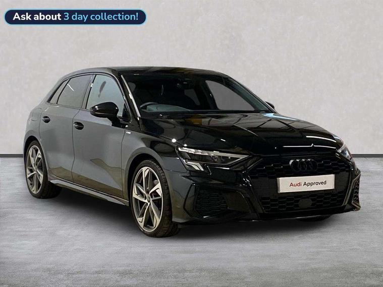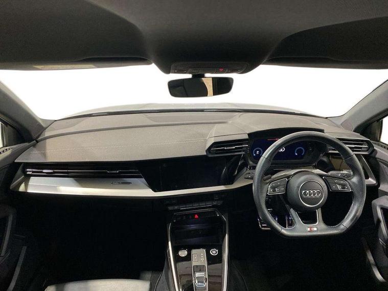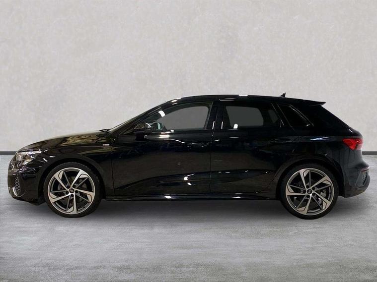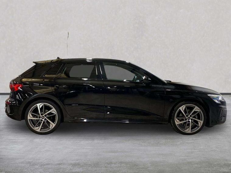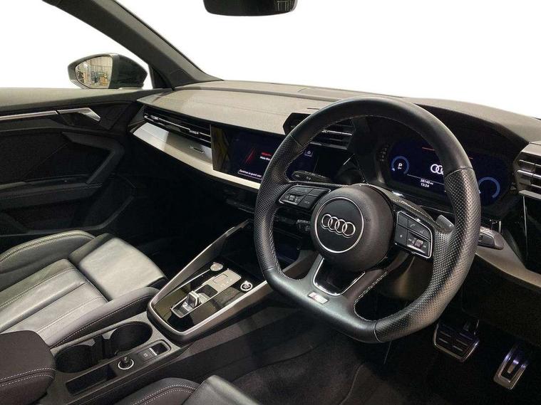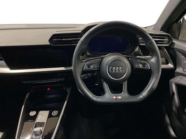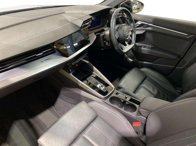 Audi drive select (Auto, Comfort, Dynamic, Efficiency and Individual), Audi smartphone interface, Audi Virtual Cockpit - 10.25" digital and colour instrument cluster, Automatic start/stop system with recuperation, Bluetooth interface, Camera based traffic sign recognition, Collision avoidance assistant, e-Call (emergency call), Electromechanical power speed sensitive steering, Lane departure warning system, MMI Navigation Plus with high resolution 10.1" colour touch screen display, Service indicator, Trip computer, Voice control system with natural language interaction, Sports suspension, 2xUSB-C connection with data and charging functions, 6 passive loudspeakers, DAB Digital radio, 3rd brake light, Acoustic glass windscreen, Audi beam uses LEDs to project the Audi logo onto the ground as you exit your A3, Auto dimming frameless rear view mirror, Electrically adjustable/heated/folding/auto dimming door mirrors with integrated LED indications + kerb view function for passenger side, Front electric windows, Illuminated door sills with aluminium inserts at the front with S logo, LED daytime running lights, LED headlights with LED rear lights and dynamic rear indicators, Light and rain sensors, Privacy glass - dark tinted rear window, rear door and side windows, Rear electric windows, Rear side air outlets in grained matt black, Rear side wing doors, Rear wiper, S roof spoiler, 12V socket and storage compartment in front centre console, 3 seat bench in 2nd row, 4 way electrically adjustable lumbar support for driver and front passenger, 60/40 split folding rear seat bench, Black cloth headlining, Dual zone electronic climate control, Front and rear centre armrest in artificial leather, Front and rear headrests, Front/rear floor mats, Height and reach adjustable steering wheel, Interior lighting - glove compartment light and right hand side, Luggage compartment floor covering, Manual boot compartment lid, Seat side bolsters, Single front passenger seat, Stainless steel pedals and front footrest in black, Twin leather upholstery with front sports seats S embossed logo, Aluminium interior elements pack - A3 Sportback, Black styling pack - A3 Sportback/Black edition, LED interior lighting pack - A3 Sportback, 3x3 point rear seat belts, Driver and front passenger airbag with passenger airbag deactivation, Electronic Stabilisation Control (ESC) including ABS, ASR and EDL, First aid kit with warning triangle and 2 safety vests, Front side airbags with head airbags and interaction airbag, Pre-sense front with pedestrian and cyclist detection, Seatbelt monitoring, Tyre pressure loss indicator, Anti theft alarm, Anti-theft wheel bolts, Electronically operated child locks, Immobiliser, Remote control central locking, Dark spectrum aluminium inlays, accent surfaces in the dashboard and centre console in platinum grey silk effect paint finish, 19" 5 arm trapezoid design alloy wheels in matt grey with diamond cut finish,