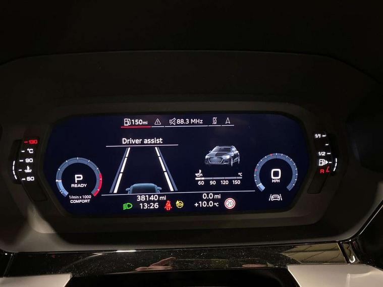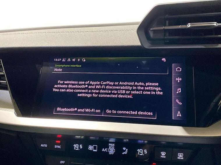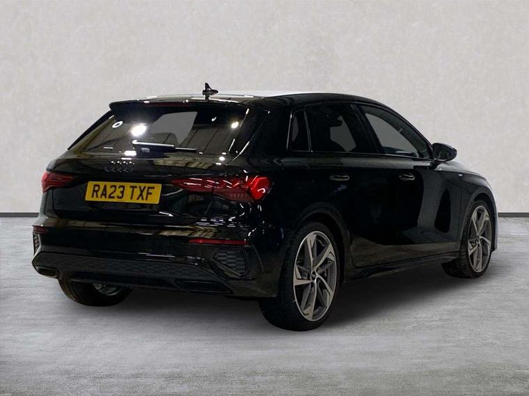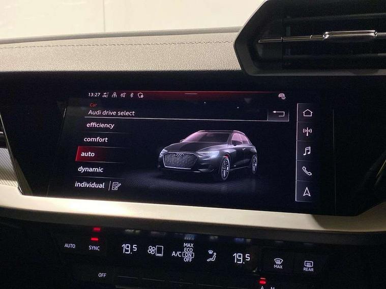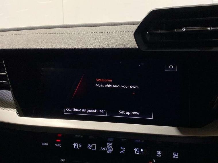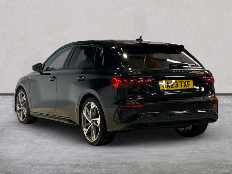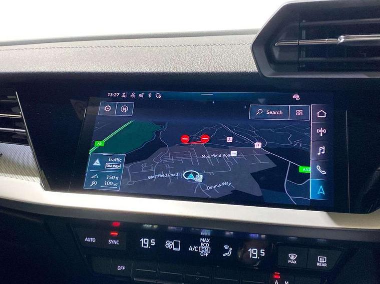 Audi drive select (Auto, Comfort, Dynamic, Efficiency and Individual), Audi smartphone interface, Audi Virtual Cockpit - 10.25" digital and colour instrument cluster, Automatic start/stop system with recuperation, Bluetooth interface, Camera based traffic sign recognition, Collision avoidance assistant, e-Call (emergency call), Electromechanical power speed sensitive steering, Lane departure warning system, MMI Navigation Plus with high resolution 10.1" colour touch screen display, Service indicator, Trip computer, Voice control system with natural language interaction, Sports suspension, 2xUSB-C connection with data and charging functions, 6 passive loudspeakers, DAB Digital radio, 3rd brake light, Acoustic glass windscreen, Audi beam uses LEDs to project the Audi logo onto the ground as you exit your A3, Auto dimming frameless rear view mirror, Electrically adjustable/heated/folding/auto dimming door mirrors with integrated LED indications + kerb view function for passenger side, Front electric windows, Illuminated door sills with aluminium inserts at the front with S logo, LED daytime running lights, LED headlights with LED rear lights and dynamic rear indicators, Light and rain sensors, Privacy glass - dark tinted rear window, rear door and side windows, Rear electric windows, Rear side air outlets in grained matt black, Rear side wing doors, Rear wiper, S roof spoiler, 12V socket and storage compartment in front centre console, 3 seat bench in 2nd row, 4 way electrically adjustable lumbar support for driver and front passenger, 60/40 split folding rear seat bench, Black cloth headlining, Dual zone electronic climate control, Front and rear centre armrest in artificial leather, Front and rear headrests, Front/rear floor mats, Height and reach adjustable steering wheel, Interior lighting - glove compartment light and right hand side, Luggage compartment floor covering, Manual boot compartment lid, Seat side bolsters, Single front passenger seat, Stainless steel pedals and front footrest in black, Twin leather upholstery with front sports seats S embossed logo, Aluminium interior elements pack - A3 Sportback, Black styling pack - A3 Sportback/Black edition, LED interior lighting pack - A3 Sportback, 3x3 point rear seat belts, Driver and front passenger airbag with passenger airbag deactivation, Electronic Stabilisation Control (ESC) including ABS, ASR and EDL, First aid kit with warning triangle and 2 safety vests, Front side airbags with head airbags and interaction airbag, Pre-sense front with pedestrian and cyclist detection, Seatbelt monitoring, Tyre pressure loss indicator, Anti theft alarm, Anti-theft wheel bolts, Electronically operated child locks, Immobiliser, Remote control central locking, Dark spectrum aluminium inlays, accent surfaces in the dashboard and centre console in platinum grey silk effect paint finish, 19" 5 arm trapezoid design alloy wheels in matt grey with diamond cut finish,