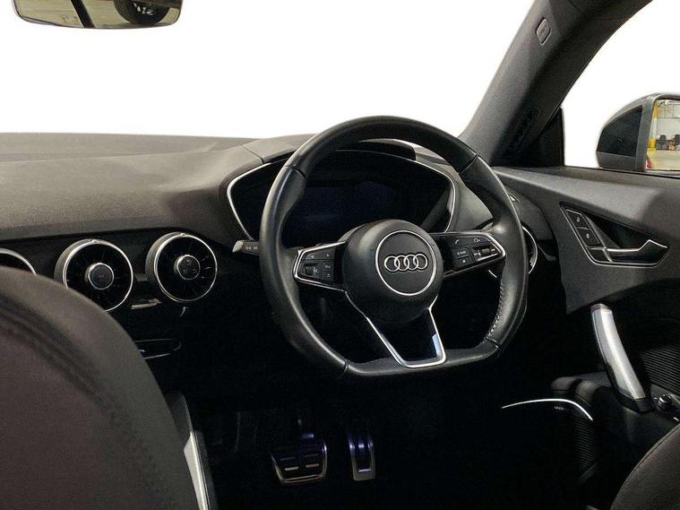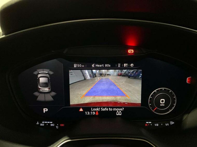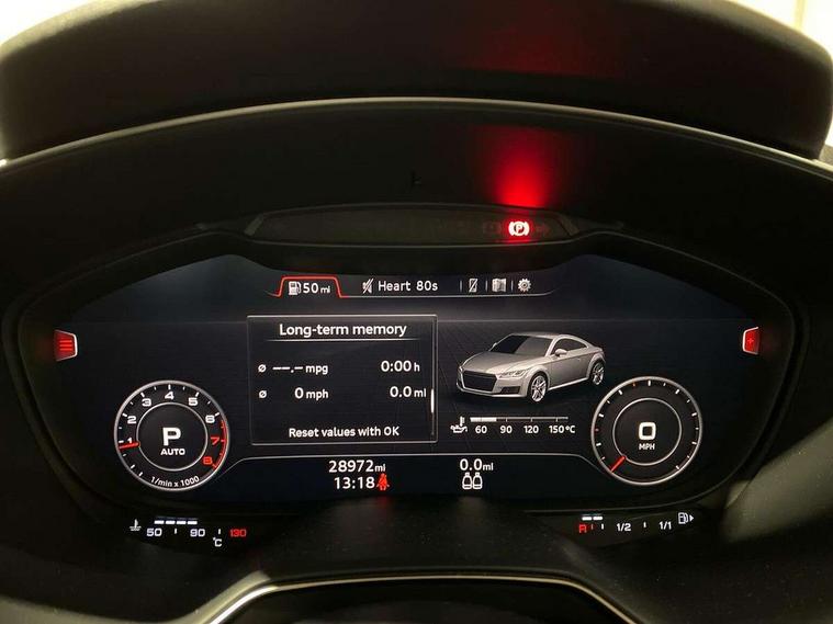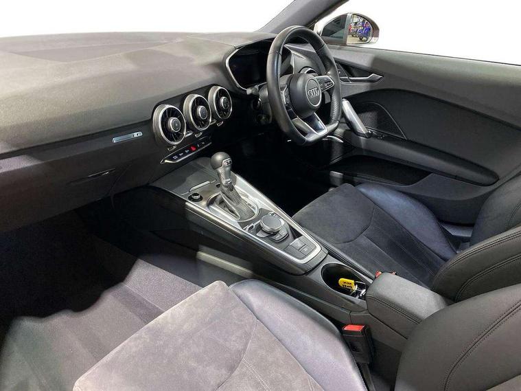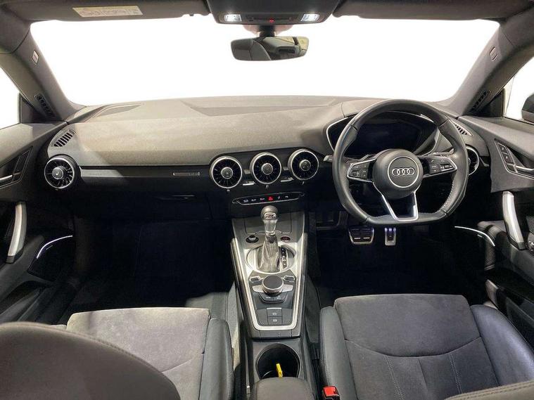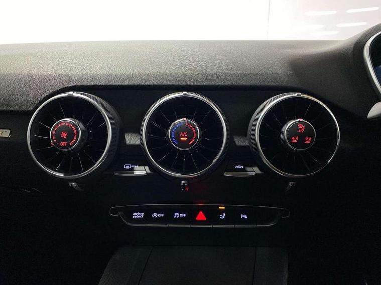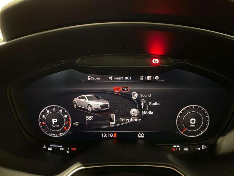 Audi drive select with 4 Pre configured modes, Audi smartphone interface, Audi virtual cockpit - 12.3" high-resolution LCD display with fully customisable instrument cluster, Cruise control + speed limiter, Emergency call service, MMI touch panel, Mobile phone preparation with bluetooth interface, Progressive power assisted steering, Service interval indicator, Start/Stop system with energy recuperation, TP memo, Sports suspension, AM/FM radio, Bluetooth audio streaming, DAB Digital radio, MMI Radio with CD player and SD/XC card slot, Auto dimming rear view mirror, Electric folding door mirrors, Electric front windows, Electrically adjustable and heated door mirrors with integrated LED side indicators, Front fog lights, Green tinted heat insulating glass, LED 3rd brake light, Light and rain sensors, Rear boot, Retractable rear boot spoiler, Sunband for windscreen, Xenon headlights with LED daytime running lights with automatic headline range control + LED rear lights, brake lights and rear indicators, 12V socket, 2 rear seats, 3 spoke flat bottomed high multi-function leather sport steering wheel with gearshift paddles, Alcantara/Leather upholstery includes seat centre panels, door trim inserts in black Alcantara with side bolsters, head restraints in black leather, Aluminium door sill trims, Front centre armrest, Front passenger seat, Front sports seats, Heated front seats, Height adjustable driver's seat, Height adjustable front head restraints, Height/reach adjust steering wheel, ISOFIX child seat mounting for front passenger seat with airbag deactivation, Rear head restraints, Rear top tether child seat ISOFIX attachment, Split folding rear seat, Black styling pack - TT, Non smoking pack - TT/TT RS, 3 point front seat belts, ABS, ASR traction control, Curtain airbags, Driver and front passenger airbag with front passenger airbag deactivation, EDL traction control, Electromechanical parking brake, ESP, First aid kit, Front side airbags, Head airbags, Hill hold assist, Seatbelt warning, Tyre pressure loss indicator, Warning triangle, Anti theft alarm, Anti theft wheel bolts, Immobiliser, Keyless Go, Remote central locking, Aluminium design inlays, Tool kit, Tyre repair kit,