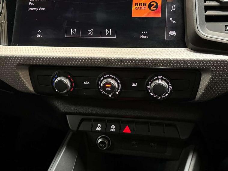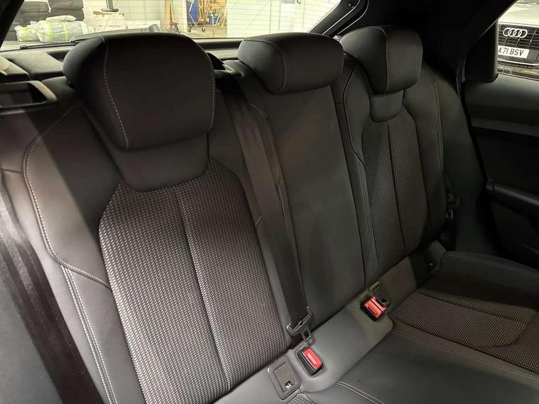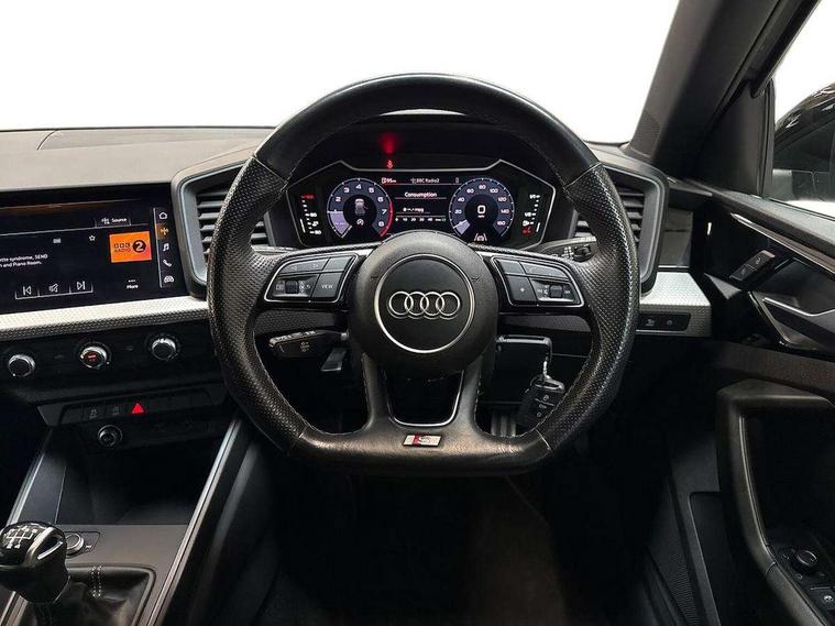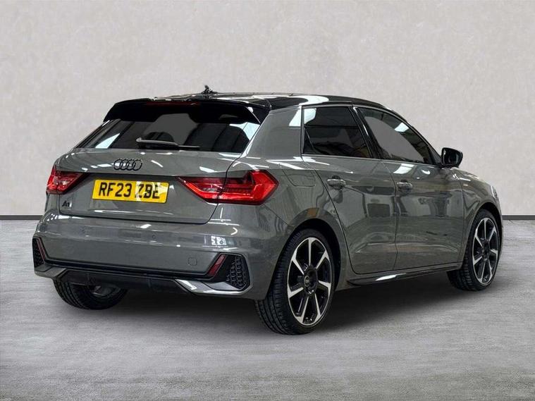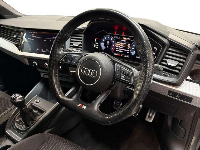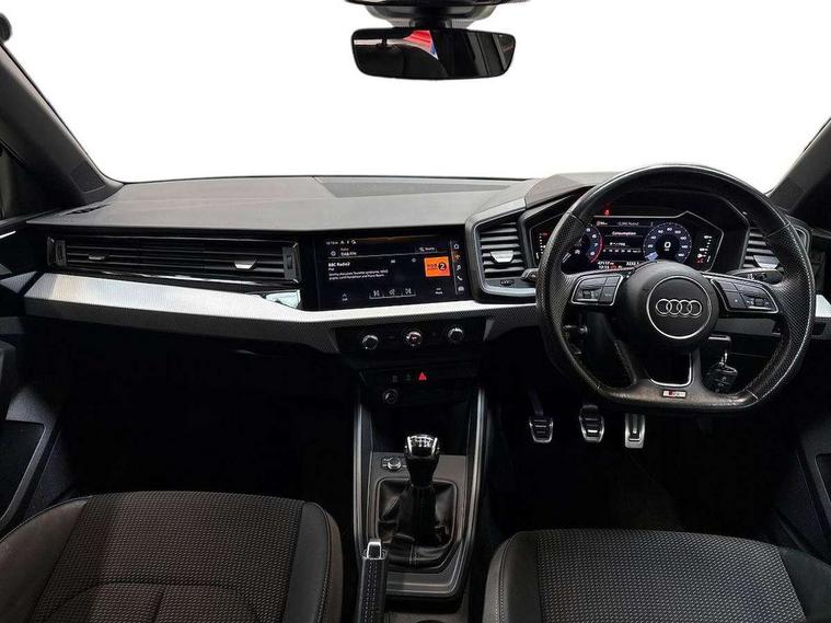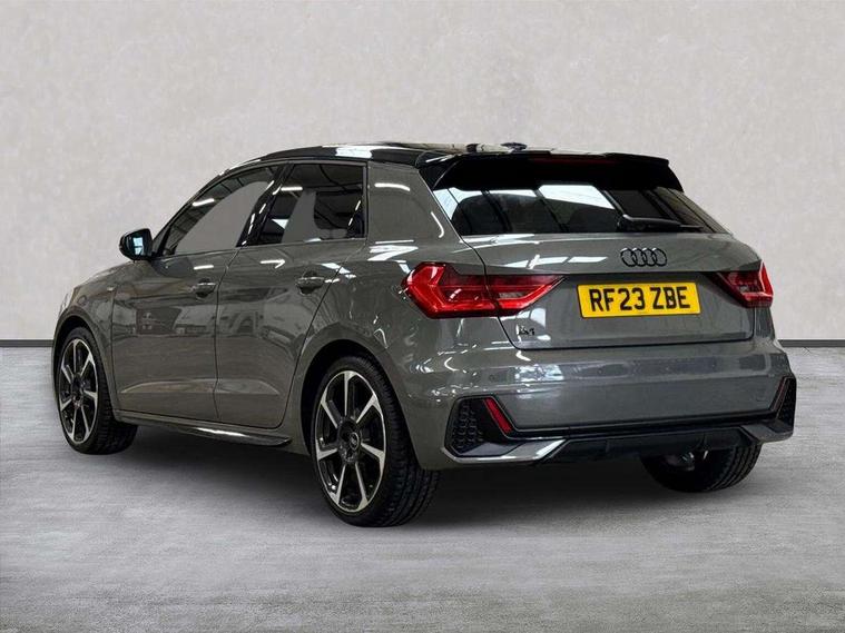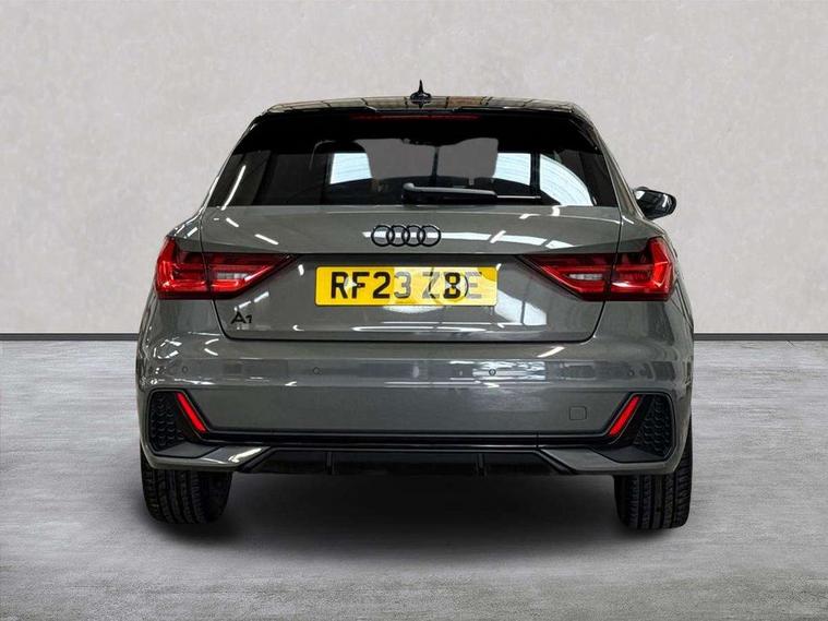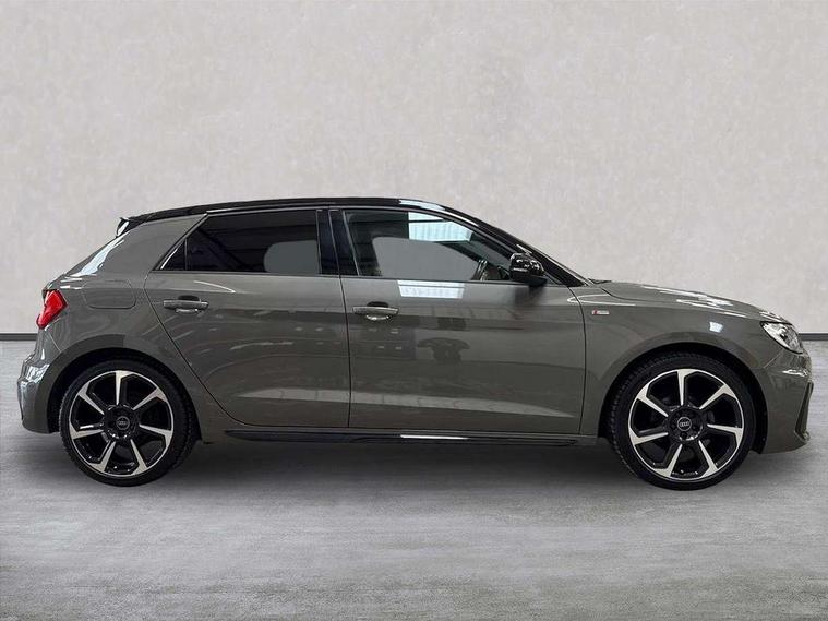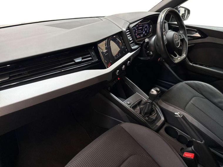 Aluminium trim for control switches, air vents and digital instrument cluster, Silver grey inlays polygon structure in diamond paint finish, Structured grey accent areas including air vents, door handle recesses and centre console in quartz paint finish, Black styling pack - A1 Sportback Black Edition, LED interior lighting pack - A1, Luggage compartment pack - A1, 18" 7 spoke rotor design alloy wheels in gloss anthracite black, diamond cut finish, Anti theft alarm, Anti theft wheel bolts and loose wheel warning, Audi pre-sense front with pedestrain and cyclist recognition, Immobiliser, Remote central locking with 2 foldaway keys, 1 x SDXC card reader, 1 x USB type C and 1 USB type A charging points, DAB Digital radio, MMI radio plus with 8.8" colour MMI display screen and MMI touch, 3x3 point rear seatbelts, Brake assist function, Driver and front passenger airbag with front side and head airbags, Electronic Stability Control including ABS, EBD, ASR and EDL, Front and rear seatbelt reminder, Front passenger airbag deactivation switch, Hill hold assist, Seatbelt height adjustment for front seats, Seatbelt monitoring, Tyre pressure warning light, Warning triangle and first aid kit, Auto dimming rear view mirror, Black door mirrors, Black side skirts, Door sills with aluminium inlays and S Line logo, Electric front and rear windows, Electrically adjustable, heated, folding door mirrors with integrated LED side indicator, Front side air inlets in grained matt black and C frame in titanium black, Heat insulating glass windscreen and side windows, Heated rear windscreen, LED headlights with LED rear lights + dynamic rear indicators + headlight adjustment and high beam, turning light + LED daytime running lights, Radiator protective grille frame in matt aluminium silver, Rain and light sensors, Rear fog lights, Rear wiper, Side front spoiler lips in grained matt black, 12V socket in centre console with two cup holders, 3 rear seats with headrests, 3 spoke flat bottomed multi-function plus leather steering wheel with S badging, grips in preforated leather and contrast stitching, 40:60 Split folding rear seat or folded fully, Black cloth headlining, Driver and passenger seat with manual height adjust with forward and backwards adjustment, Front and rear black floor mats with contrast stitching in fine silver, Front head restraints, Height and reach adjustable steering wheel, ISOFIX child seat mounting for front passenger and outer rear seats including top tether attachment point of outer rear seats, Leather gear knob with aluminium trim, Luggage compartment light with front and rear reading lights, Manually adjustable lumbar support in front seats, Stainless steel pedals, 10.25" Digital instrument cluster display classis style instrument dials + speed, odometer, time, outside temperature, telephone menu + fuel level warning, Audi connect safety emergency and service including E-call, Audi smartphone interface with connect compatible smartphone via USB directly MMI display + Nav, music, third party apps controlled via MMI controller, Automatic start/stop system, Bluetooth interface, Cruise control, Driver's information system, Electromechanical power steering, Lane departure warning system, Rear parking sensor, Service interval indicator, Speed limiter, Voice control system, Washer fluid level indicator, Sports suspension,