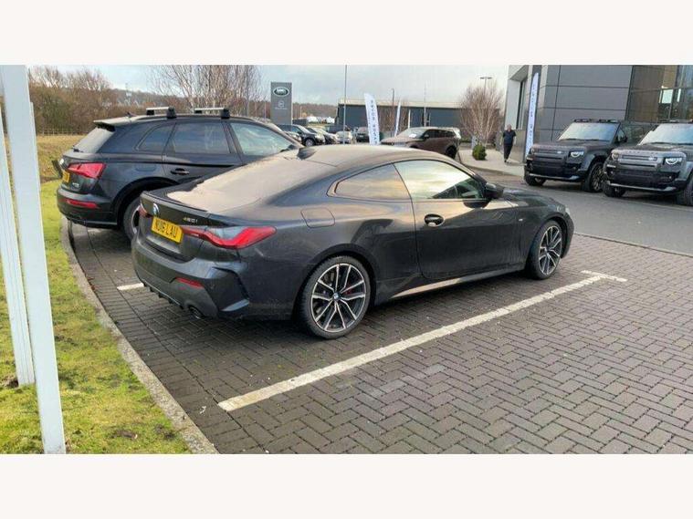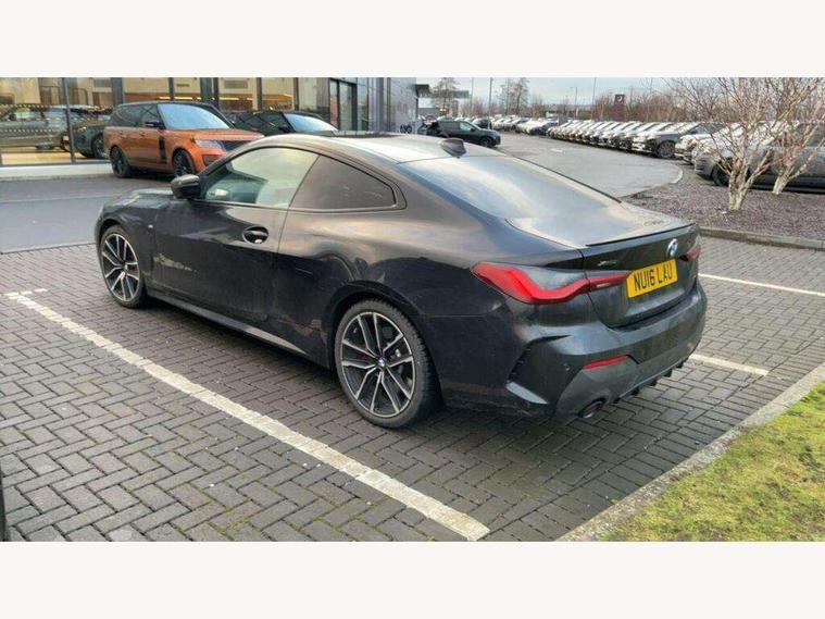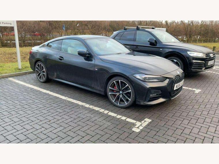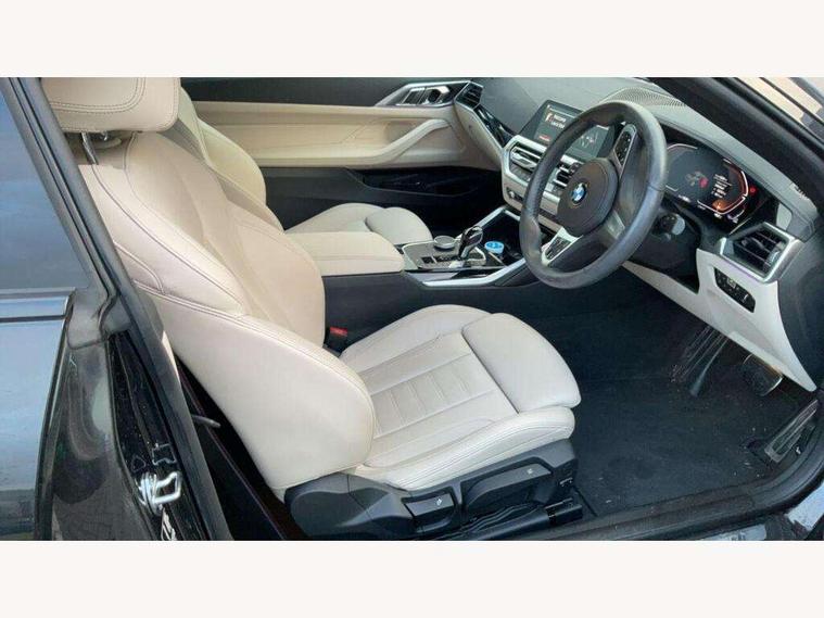 Active guard plus, Attentiveness assist, Auto start-stop, BMW ConnectedDrive online services, BMW iDrive controller on centre console, BMW Live Cockpit Professional Nav with 12.3" instrument display + 10.25" display, Intelligent Voice Assist, BMW OS 7, HDD, 2USB, 4G LTE connect, BMW service history, BMW Teleservices, Brake pad wear indicator in front and rear, Check Control warning system for monitoring of lights and door/luggage compartment open warning, Condition based service, Cruise control with speed limit function, Electric power steering with Servotronic steering optimised at all speed ranges, Gearshift time display in manual mode, Instrument cluster with speedometer with mph readout, tachometer, fuel gauge and oil temperature gauge, Integrated owners handbook, Oil sensor for level and grade, warning by check control system, On board computer - average speed, fuel consumption, outside temp display with acoustic warning, clock/date, service interval, odometer/trip meter, Optimum shift indicator, Run flat indicator, Shifting point display, Touch control functionality for BMW Live Cockpit Professional Nav, Variable sport steering, 8 speed automatic steptronic transmission with gearshift paddles, Balanced 50/50 weight distribution, Double joint spring strut front axle, Double VANOS, Drive performance control - ECO PRO, comfort and sport modes, Electronic differential lock control (EDLC), High precision injection, Low centre of gravity, M sport suspension, Petrol Particulate Filter, Stroke dependent dampers, VALVETRONIC engine management, 2x USB Type C ports in front centre console for charging and data transfer, 2x USB Type C ports in rear centre console for charging, DAB tuner, Electronic service booklet, Acoustic glazing, Automatic headlight beam throw control with load dependent regulating reaction, dynamic compensation of braking dive and acceleration squat, Automatic windscreen wipers and automatic headlight, Automatically dimming electrochromatic rear view mirror, BMW emblem on engine compartment lid and tailgate, BMW kidney grille with mesh grille front side of the nuggets in matt aluminium and frame in chrome high gloss, Body colour fuel filler flap, Body colour roof fin, Brushed aluminium inserts in the front door sill finishers with BMW designation, Door sill strips, Dynamic brake lights, Electric windows - front and rear, with open/close fingertip control, anti trap facility and comfort closing function all round, Exterior mirrors - electrically folding with anti-dazzle, Fading support, Follow me home headlights, Front and rear bumper system, Front apron plastic in body colour, Green tinted heat protection glazing, High gloss shadow line exterior trim, Illuminated bow type door handles in body colour drivers side with door lock, Interior rear view electrochromatic mirror with automatic anti dazzle function, LED daytime running lights, LED front fog lights, LED front indicators, Licence plate panel integrated into front bumper and tailgate, Lightweight engineering, M designation on front side panels, left and right, M sport rear boot spoiler with body colour gurney, Model designation on right side of tailgate, One piece front bumper cover including towing eye cover in body colour, Preparation for high beam assistant, Rear boot, Reversing light, Side frame decorative moulding black matt, Two part LED tailights in L-shape with components in smoked glass, brake light, LED turn indicator and rear fog light, Visible exhaust tailpipe finisher, Visible VIN plate, Welcome lights in interior and door handle area, Widened track and increased camber values for max transverse dynamics, agility and steering precision, Window recess cover black high gloss, Windscreen wipers with integrated heated washing jets, 12V power socket in front centre console, 2 front cupholder in centre console with clamping elements and matt black inlay, 2 Rear seat headrests, 2 seat bench in second row, 3 spoke M sport leather multifunction steering wheel, 3 zone automatic air conditioning, 4 pieces lashing eyelets in luggage compartment, 40:20:40 split folding rear seat and rear centre armrest with two cupholders, Anthracite headlining, Armrest integrated in front and rear door trim + front centre console armrest, BMW ID, Driver seat backrest width adjustment, Four grab handles integrated in roof lining, Front and rear door pockets, Front and rear reading lights, Front sport seats, Heated driver and front passenger seats, Height adjustable front headrests, Height adjustable mechanically and infinitely variable steering column, Illuminated armrest storage compartment, Illuminated glove compartment with separate small compartment, Make-up mirror lights, Single front passenger seat, Storage compartment in rear centre console, Sunvisors with illuminated vanity mirrors and ticket pocket, Toolkit located in luggage compartment, Velour front floor mats, Vernasca leather upholstery, Ambient lighting pack - 4 Series, Connected professional pack - 4 Series, M sport exterior styling pack - 4 Series, 2 x 3-point rear seatbelts, Battery safety cut-off, BMW emergency call, Brake energy regeneration, Braking pre-tensioning, Child seat ISOFIX attachment for the two outer rear seats, Coasting in idle in ECO PRO mode, Cornering brake control (CBC), Crash sensor activating of airbags, Unlocking doors, hazard warning lights, interior light, safety battery terminal, Driver and front passenger side airbags, integrated in the door side seat backrest bolsters for all seat variants, Driver/Front Passenger airbags, Dry braking, Dynamic brake control, Dynamic stability control + (DSC+) - Anti-lock Braking System (ABS) with brake assist and cornering brake control + Automatic Stability Control (ASC), Dynamic Traction Control - DTC, Electric parking brake including automatic hold function and automatic release of the parking brake when driving off, Front and rear ventilated brake disc, Front passenger manual airbag deactivation, Head airb