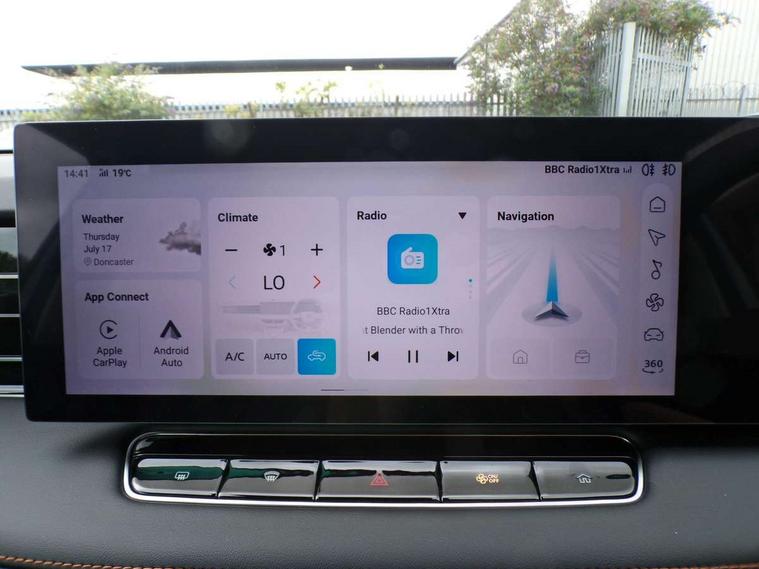 Driver attention alert, 12.3" colour touchscreen, 12.3" Virtual driver information display, 360 degree parking camera, Adaptive cruise control, Android Auto, Apple CarPlay, Blind spot detection, Bluetooth connectivity, Driving modes, Emergency call service, Forward collision warning, Front parking sensors, Intelligent speed limit assist, iSmart, Lane change assist, Lane keep assist system (LAS) with Lane departure warning system (LDWS), Live services, PAS, Rear cross traffic alert, Rear parking sensors, Satellite navigation system, Smart power tailgate, Traffic jam assist, Trip computer, Wireless charging, 4 USB ports 2 front and 2 rear, 8 Speaker audio system, DAB audio, Auto dimming rear view mirror, Automatic headlights, Electric adjustable/heated/folding door mirrors with memory, Follow me home headlights, Front and rear aero wiper, Front and rear electric windows with one-touch up/down, Front fog lights, Intelligent high beam, LED 3rd brake light, LED daytime running lights, LED Headlights, LED rear lights, Rain sensing wipers, Rear privacy glass, Rear side wing doors, Side steps, Silver roof rails, Vehicle to Load, 12V power sockets, 2nd row 60/40 split fold seat, 3 rear headrests, 3 seat bench in 2nd row, 3 stage heated front seats, 4 way electric adjustable passenger seat, 6 way electric adjustable drivers seat with lumbar adjustment and memory function with easy access, Dual zone automatic air conditioning, Front and rear reading lights, Front centre sliding armrest with storage compartment, Front headrests, Height and reach adjustable steering wheel, ISOFIX restraints on outer rear seats x2, Metal sports pedals, Multi function steering wheel, Single passenger seat, 3x3 point rear seatbelts, ABS/EBD, Active emergency braking with pedestrian/Bicycle detection, Anti rolling protection, Door open warning, Drivers seatbelt reminder, Dual front airbags, Electric parking brake with auto hold function, ESP, Front and rear passenger seat belt reminder, Front centre airbag, Front passenger airbag deactivation switch, Front seat belt height adjuster, Front seatbelts (3-point + pretensioner + load limiter), Front side airbags, Hill descent control, Hill launch assist, Manual rear child locks, Rear outer seatbelt pretensioner and load limiter, Side curtain airbags, Tyre pressure monitoring system, Acoustic vehicle alert system (AVAS), Alarm system and engine immobiliser, Keyless entry and push button start system, Remote central locking, Speed sensing door locks, 19" Blade diamond cut alloy wheels, Tyre repair kit,