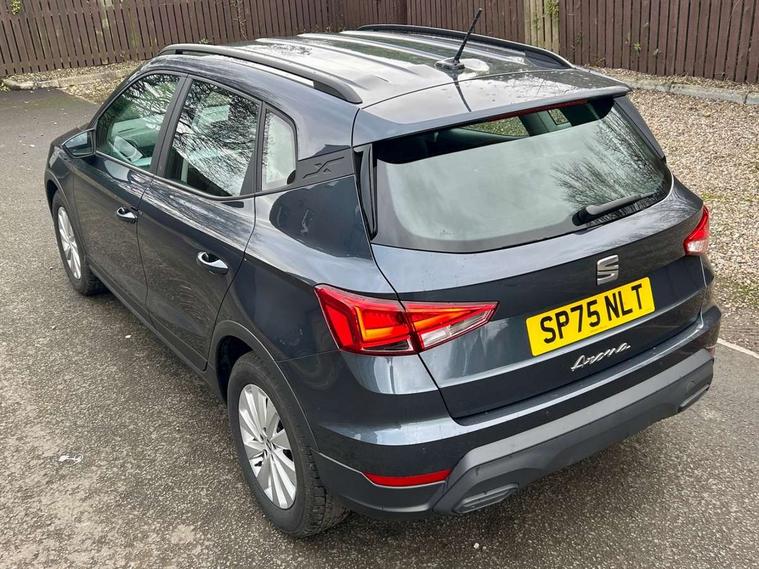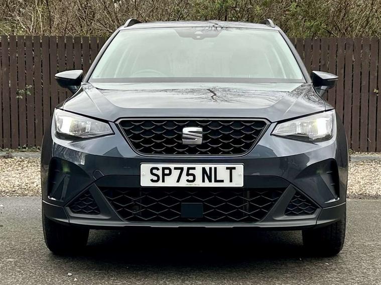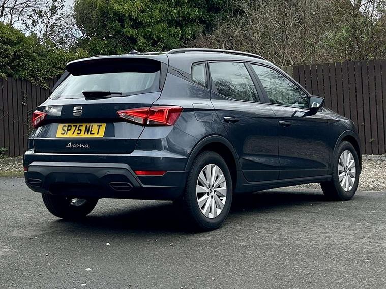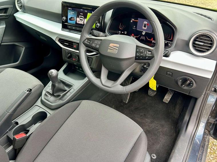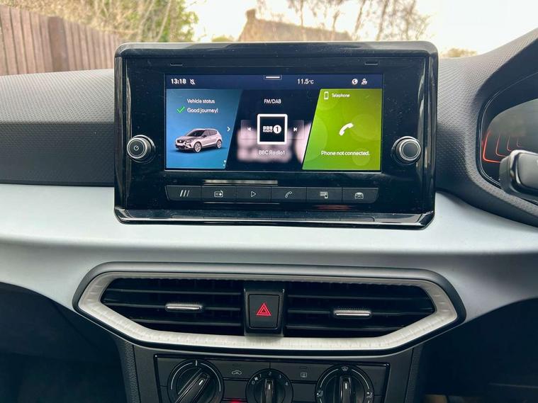 'Lights On' Reminder warning buzzer, 8" Digital cockpit, Digital clock, E-call, Electric speed sensitive power steering, Full link smartphone integration with mirror link, wireless apple carplay, Google android auto + USB Type C cable for apple and android devices, Lane keeping system, Low fuel warning light, Outside temperature display, RPM counter, Speed limiter, Trip computer, 4 speakers, Bluetooth interface for hands free and audio streaming, DAB digital radio and AM/FM radio, Media system with 8.25" colour touchscreen with USB port (type c), Steering wheel mounted audio controls, Anti theft roof antenna, Automatic activation of hazard warning lights, Black roof rails and window surrounds, Body coloured bumpers, Body coloured door handle inserts, Body coloured door mirrors, Dimming rear view mirror, ECO LED automatic headlights and LED daytime running lights, Electric adjustable door mirrors, Electric front/rear windows, Hidden exhaust pipe, LED rear tail lights and licence plate lights, Licence plate lights, Protective side mouldings, Rain sensing wipers, Rear fog lights, Rear side wing doors, Rear spoiler, Rear window wash/wipe, Third brake light, Visible VIN plate, 2 cupholders, 3 seat bench in 2nd row, 60/40 split folding rear seat, Air conditioning, Aircare filter, Card holder on driver sunvisor, Cloth upholstery, Double boot floor, Gear shift indicator, Grey interior air vents, Grey interior roof, Height adjustable front seats, Height/reach adjustable steering column, Illuminated boot, Instrument lighting with brightness control, ISOFIX points in outer rear seats with top tether anchorage points, Multi function steering wheel/basic gear knob/handbrake, Potentiometer, Single front passenger seat, Two front and three rear height adjustable headrests, Safe and driving pack (S) - Arona, 3 point seatbelts on all rear seats, ABS, Active front headrests, Child locks on rear doors, Driver and front passenger airbags with front passenger airbag de activation, front side and curtain airbags, Emergency Brake Assist (EBA) and front assist, Forward collision warning and autonomous emergency braking, Front and rear seatbelt reminder, Hill hold control, Multi-Collision braking, Tiredness recognition system, Traction control, Tyre pressure monitoring system, Deadlock, Electronic engine immobiliser, Locking wheel bolts, Remote central locking, Titan black dashboard, 16" Alloy wheels with all season tyres,