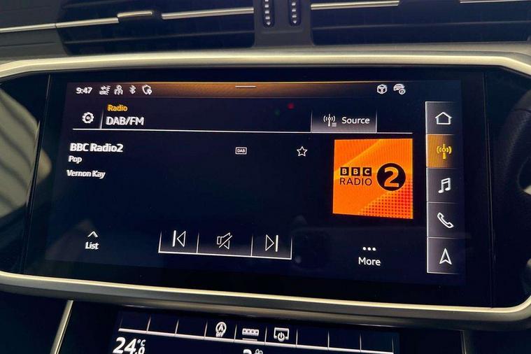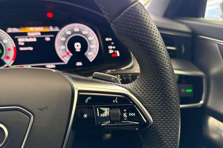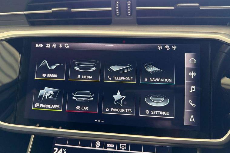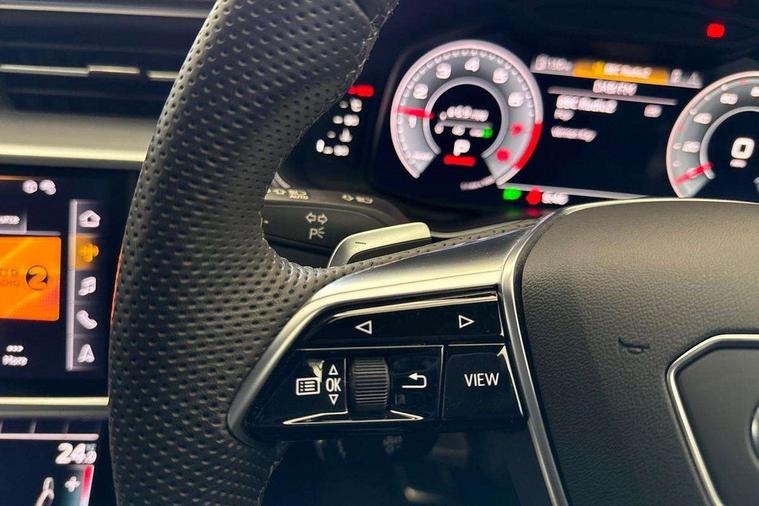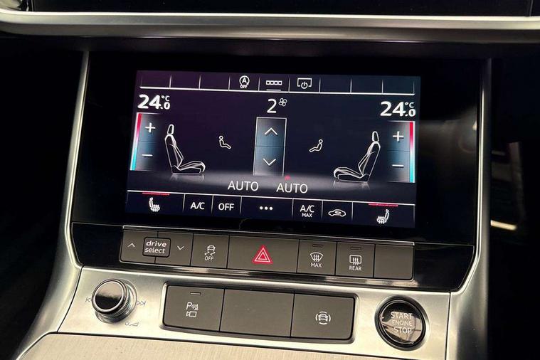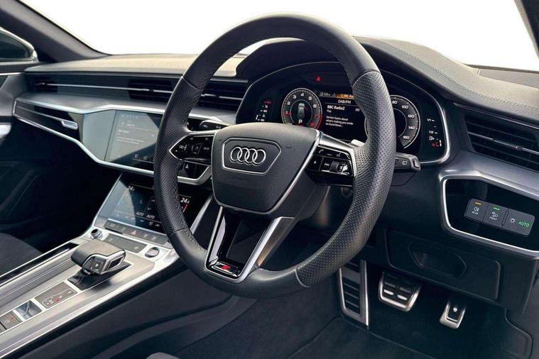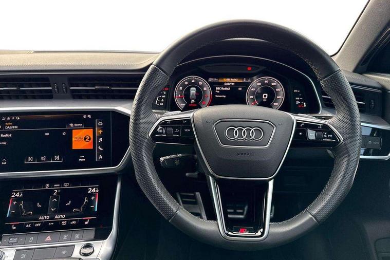7" high resolution colour driver information display system, Audi connect safety and service (e-call), Audi connect with Amazon Alexa Integration, Audi drive select, Audi parking system plus - acoustic and visual park assist system for front and rear, Automatic start/stop system with coasting functionality, Bluetooth interface, Lane departure warning system, Power operated tailgate, Progressive steering, Rear view camera, Service interval indicator, Smartphone interface includes wireless Apple carplay/Android Auto, Voice control system, Sports suspension, Audi front music interface, Audi sound system, Auxiliary input socket, DAB Digital radio, USB connection, Aluminium roof rails, Body coloured door mirrors, Electric front/rear windows, Frameless auto dimming interior rear view mirror, Front intermittent wipers, Headlight washers, Heat insulating darkened glass in side and rear windows, Heat insulating glass in windshield, LED signature front daytime running light, LED third brake light, Matrix LED headlights, Matt black side air intake grille with inlay in matt aluminium, Privacy glass, Radiator grille in anthracite black matt, single frame in chrome and horizontal struts in matt aluminium silver, Rain and light sensors, Rear side wing doors, Rear wiper, S line air inlet design with inlay in matt aluminium, S Line badge on front fender, S Line front and rear bumpers, S line rear diffuser and grille in matt black with matt aluminium tailpipes, S Line roof edge spoiler, S Line side skirts, Signature rear LED light design, 2 zone deluxe electronic climate control, 4 way electric lumbar support for driver and front passenger, 40/20/40 split folding 3 rear seat bench in 3 parts with rear centre armrest, Black cloth headlining, Black steering wheel insert, Electrically adjustable front seats with driver memory, Front centre armrest, Front head restraints, Heated front seats, Height/reach adjust steering wheel, Illuminated door sill trims with S logo, Illuminated sun visors with vanity mirrors, ISOFIX child seat mounting and Top Tether with front passenger airbag deactivation, Leather gear knob, Luggage compartment system, Perforated leather steering wheel with contrast stitching, Rear headrests, S line front and rear black carpet floor mats with contrast stitching, Single front passenger seat, Stainless steel pedals and foot rest, LED Interior Ambient Lighting Pack - A6, Non smoking pack - A6, Technology pack - A6, 3 point seatbelts on all seats, Airbags - Front side, front and rear including head, Audi pre-sense front, Black seatbelts, EBD - Electronic brakeforce distribution, Electromechanical parking brake, Electronic Stability Control (ESC) including ABS, ASR and EDL, Extended pedestrian protection measures, Manual child proof rear door locks, Seatbelt monitoring, Tyre pressure warning light, Warning triangle and first aid kit, Anti theft alarm with tow away protection, Anti-theft wheel bolts and wheel loosening detection, Immobiliser, Keyless Go, Remote central locking, Matt brushed aluminium dark inlays,