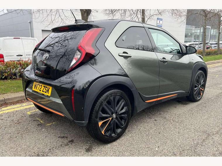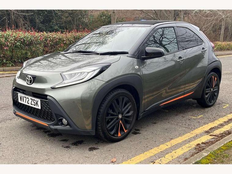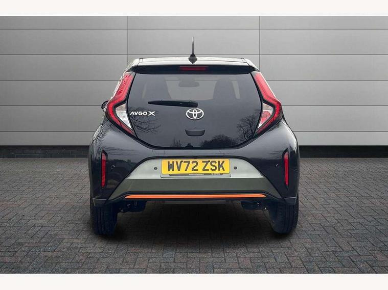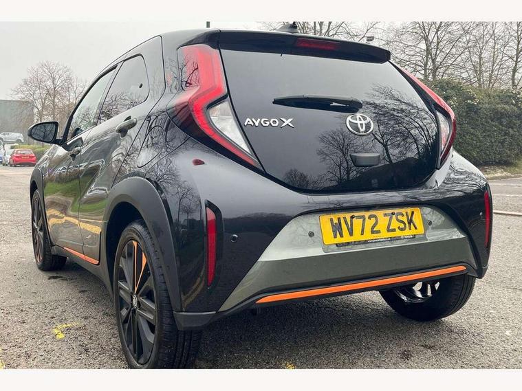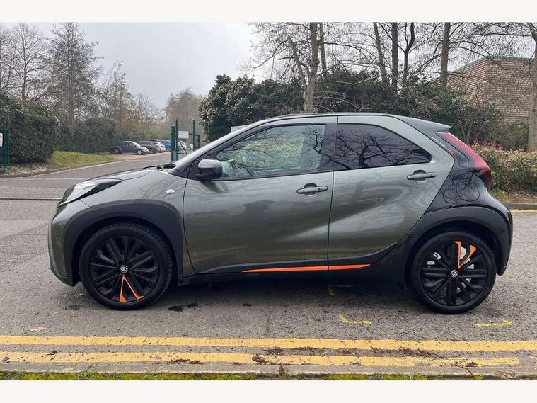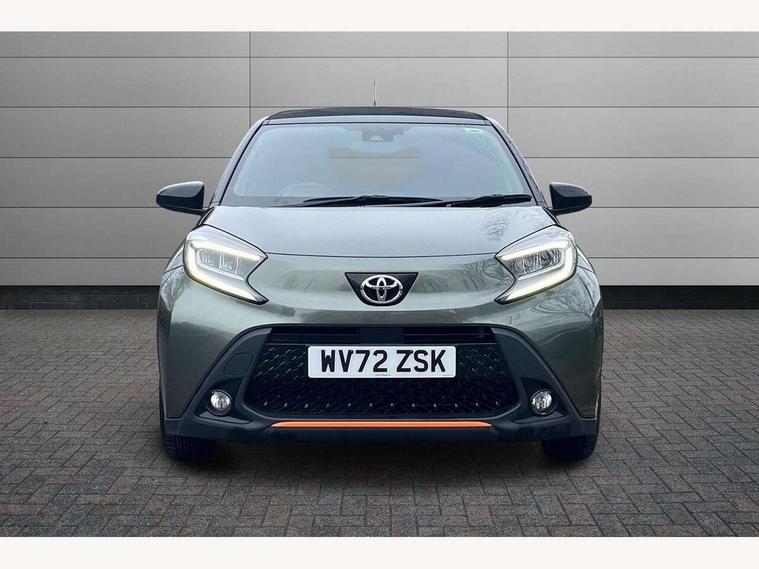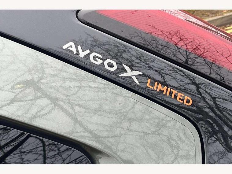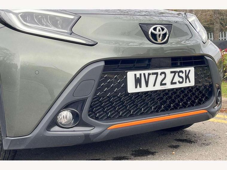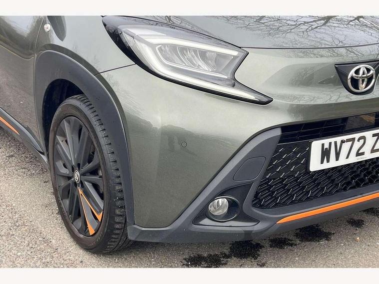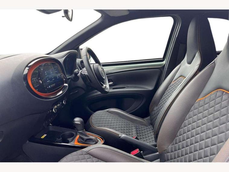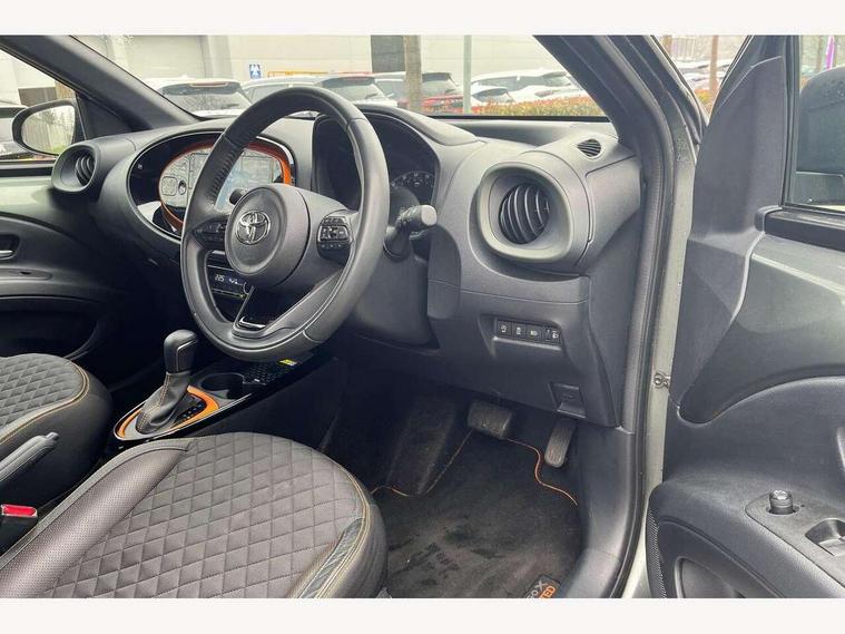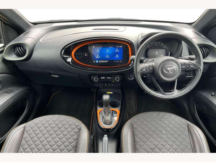4.2" TFT colour screen, Adjustable speed limiter, Analogue speedometer, Bluetooth connectivity, Digital tachograph, Driver attention alert system, eCall emergency call system, ECO-driving indicator, Electric power steering, Front and rear parking sensors with auto brake, Intersection turn assist, Key reminder warning, Noise reduction kit, Pre collision system with emergency steering assist, Remote boot door release on key, Reversing camera with static guide lines, Smart entry and push button start, Speed limit display, Start and stop, Wireless charger, Wireless Smartphone Integration includes Apple CarPlay and Android auto, Vehicle Stability Control (VSC), 4 speakers, 9" HD multimedia display touch screen with Toyota smart connect, DAB digital audio broadcast, USB connector, Auto headlights, Auto wipers, Automatic headlights cut-off, Automatic high beam On/Off switch, Bicycle towing hook, Black fog light surrounds, Black side protection mouldings, Black wheel arch mouldings, Body colour door handles, Body coloured front bumper, Boot door scuff plate, Canvas roof, Eclipse black rear bumper, Electric heated door mirrors, Follow me home headlights, Front fog lights, Front power windows, Gloss black door mirrors, Gloss black upper front grille, Headlight cut-off reminder, LED daytime running lights guide, LED front light guide, LED High mounted stop lamp, LED projector headlights, Limited edition logo on C pillar, Magnolia strip on lower front and rear bumpers, Manual day/night rear view mirror, Manual headlight levelling, Metallic Bi-tone paint, Power adjustable door mirrors, Privacy glass, Rain sensor, Rear combination lights LED bulb type, Rear side wing doors, Rear windscreen defogger, Rear windscreen wiper, Remote hazard lights system, Short antenna, Variable intermittent windscreen wipers, 12v power outlet - front, 2 seat bench in 2nd row, 3 spoke leather steering wheel, 50/50 split folding rear seat, Adjustable speed limiter switch on steering wheel, Audio and telephone switches on steering wheel, Auto air conditioning, Black insert on steering wheel, Black roof lining, Boot light, Canvas top headlining, Centre room light, Chrome interior door handles, Chrome surround on air conditioning buttons, Clean air filter, Driver and front passenger heated seats, Floor mats, Front and rear cup holders, Front head rest deco art, Front head restraints, Gear shift indicator, Height adjustable driver seat, Intelligent adaptive cruise control switch on steering wheel, ISOFIX child restraint system on rear seats, Lane departure alert switch on steering wheel, Leather gearshift knob, Light blue ambient lighting in centre console, Manual tilt steering wheel, Manually reclining and sliding driver seat, Manually reclining and sliding front passenger seat, Multimedia switches on steering wheel, Paddle shift levers on steering wheel, Partial leather seats, Pollen filter, Rear door pockets, Rear head restraints, Remote air-conditioning system, Satin silver insert on gear shift knob, Single compartment glovebox with lights, Single front passenger seat, Soft tonneau cover, Sun visors with mirror on driver and passenger side, Voice recognition switch on steering wheel, Toyota safety sense pack - Aygo X, Anti lock braking system + Electronic brake force distribution, Child safety door lock, Emergency brake light signal (EBS), Hill start assist control (HAC), Passenger airbag on/off switch, Seat belt reminder for front and rear seats, Supplement restraints system (SRS) - 6 airbags, Traction control, Tyre pressure warning system, Immobiliser, Remote power door locks, Black wheel centre caps, Mandarina Orange wheel insert, Tyre repair kit,