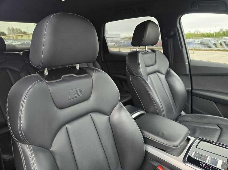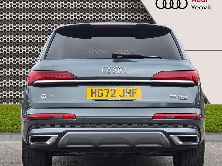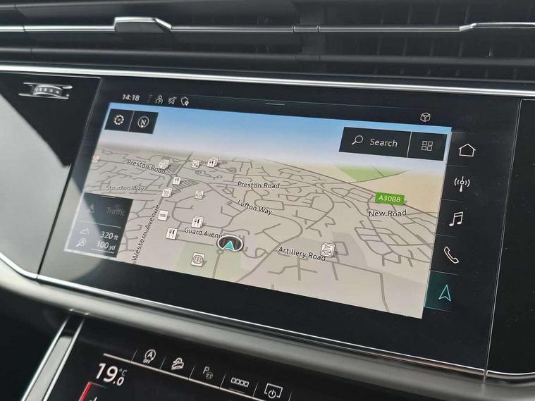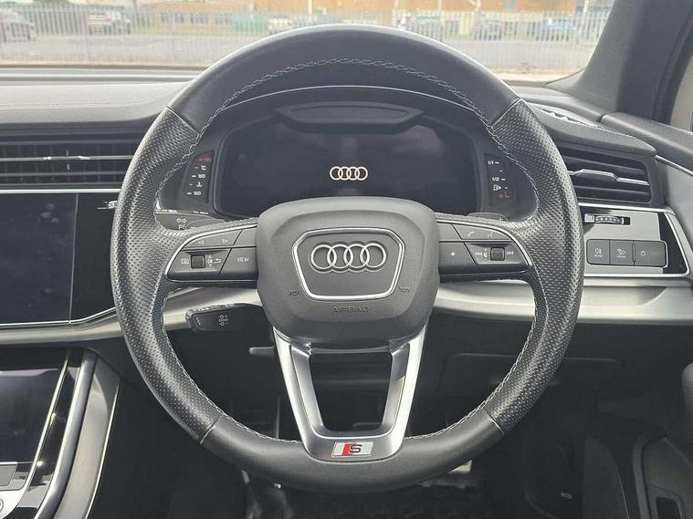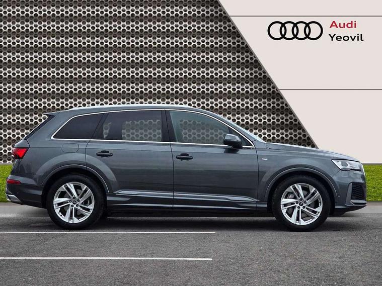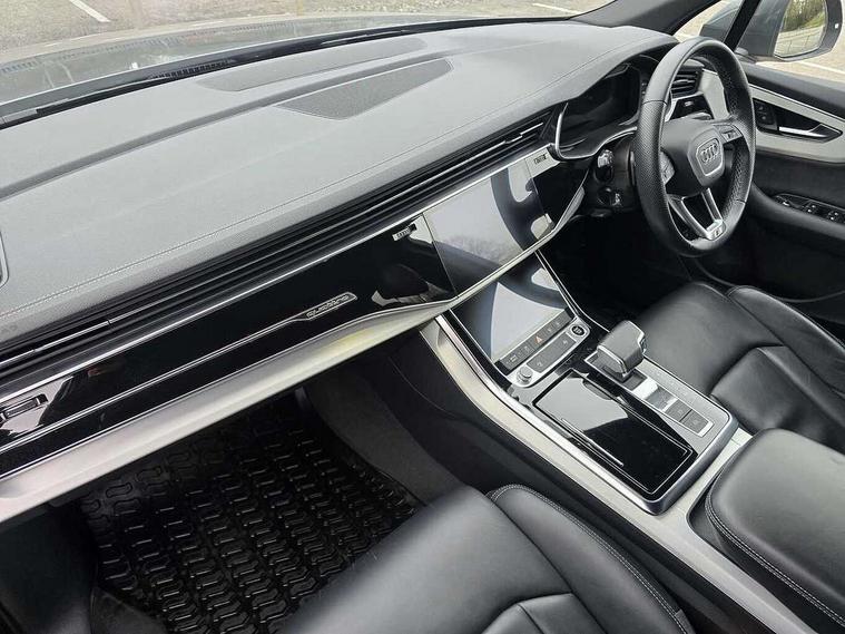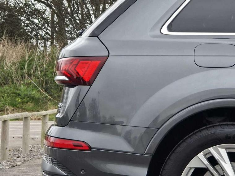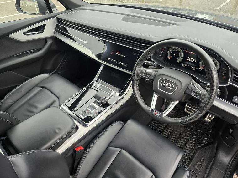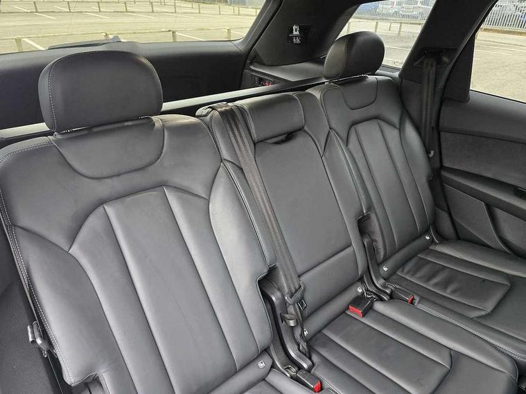Audi connect safety and service (e-call), Audi connect with Amazon Alexa Integration, Audi drive select (Auto, Comfort, Dynamic, Efficiency, Individual, Off-road and All road), Audi smartphone interface includes wireless Apple carplay/Android Auto, Bluetooth interface, Camera based traffic sign recognition, Electromechanical steering, MMI navigation plus with MMI touch screens includes 10.1" and 8.6" screens with haptic feedback, Natural voice recognition, Parking system plus with 360 degree display (front, rear and side sensors) - acoustic and visual park assist system, Power operated tailgate, Rear view camera, Start/stop system, 48V Mild hybrid technology, 85 litre fuel tank, Adaptive air suspension, Quattro all wheel drive with self locking centre differential, Audi music interface - front 2 USB-C ports with charger and data functions, Audi sound system with 6 channel amplifier, 180 watt amplifying capacity and 10 loudspeakers including subwoofer, DAB digital radio module, 3rd brake light, Aluminium roof rails, Aluminium window trim, Audi matrix LED headlights with dynamic front and rear indicators, Auto dimming frameless rear view mirror, Body coloured door mirrors, Electrically adj heated/folding + automatically dimming exterior mirrors with memory + automatic kerb side function for passenger side exterior mirror, Heat insulating glass in windshield, Integrated LED indications in door mirrors, LED daytime running lights, LED rear tail lights, Privacy glass - dark tinted rear and rear side windows from B-pillar backwards, Rear side wing doors, Rear wiper, S Line badge on wings, S line bumpers in full body colour paint finish, S line roof spoiler, S line styling side ventilation grilles and side skirts, 2 seat bench in 3rd row, 2 zone automatic climate control, 3 seat bench in 2nd row, 7 seat layout with ISOFIX points for the front passenger seat and rear passenger seat, Black cloth headlining, Comfort front centre armrest, Electric adjustable front seat with 4 way lumbar support, driver memory functionality, Folding rear seats, Front head restraints, Front/rear floor mats, Heated front seats, Illuminated door sill trims with S logo, LED interior ambient lighting, Luggage compartment cover, Luggage compartment sill protection in stainless steel, Rear head restraints, Single front passenger seat, Stainless steel pedals, Sunvisors with illuminated vanity mirrors, Tool kit, 3 point seatbelts on all rear seats, Audi pre sense front, Child locks on rear doors, Driver and front passenger, front side and curtain airbags, Electromechanical parking brake, Electronic Stabilisation Control (ESC) including ABS, ASR and EDL, Extended pedestrian protection measures, Hill hold assist, Seatbelt monitoring, Tyre pressure loss indicator, Warning triangle and first aid kit, Anti theft alarm, Anti-theft wheel bolts and wheel loosening detection, Keyless Go, Remote central locking, Darkened matt brushed aluminium inlays, Tyre repair kit,