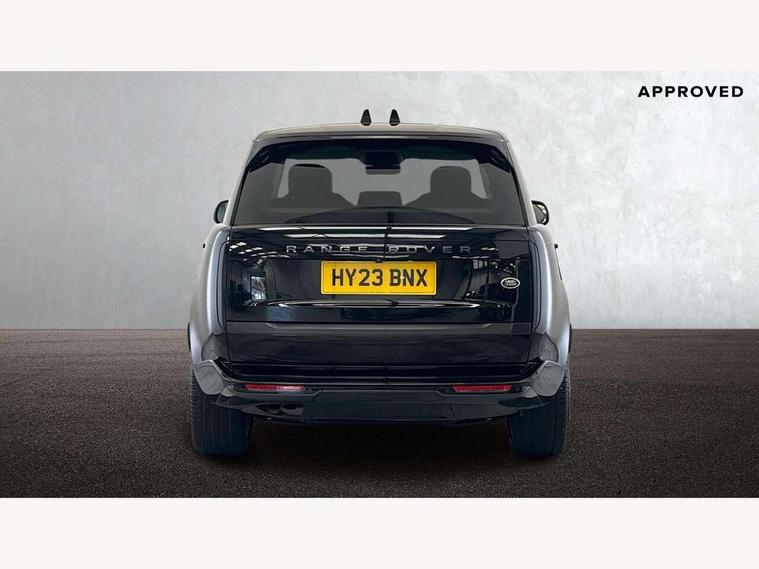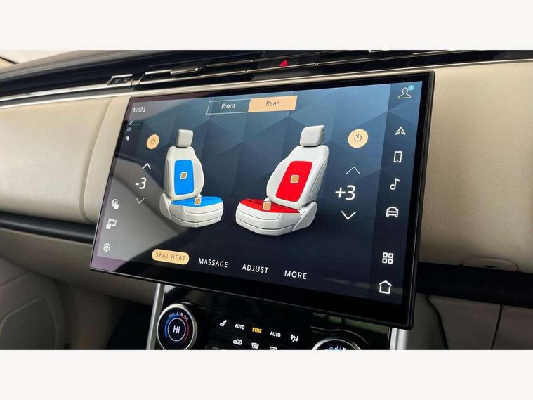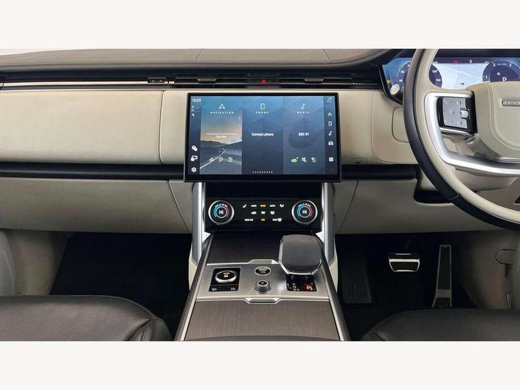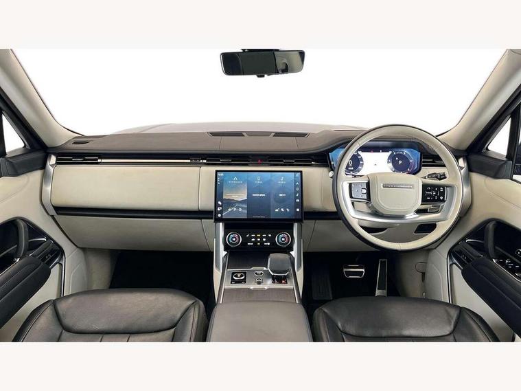 13.1" Touchscreen, 3D surround camera inc frwd traffic detection, vehicle clearance guidance, 3D view, clearsight ground view, manoevure light, 360 parking aid, wade sensing, Adaptive cruise control with steering assist, All Terrain Info Centre, All wheel steering, Android Auto, Apple car play, Blind spot assist, Bluetooth connectivity streaming, Configurable programs, Driver condition response, Eco mode, Electric power assisted steering (EPAS), Emergency call service, Front and rear parking aid, Head up Display, Interactive driver display, Lane keep assist, Powered gesture tailgate/boot lid, Rear collision monitor, Rear traffic monitor, Remote, Traffic sign recognition with adaptive speed limiter, Wi-Fi Enabled with data plan, Wireless device charging with phone signal booster, 8 speed automatic transmission, Active damper technology system, Adaptive dynamics, All terrain progress control, All Wheel Drive (AWD), Automatic access height, Electronic active differential with torque vectoring by braking, Electronic air suspension with dynamic response, Terrain Response 2 Auto, Twin speed transfer box, Digital Audio Broadcast radio-DAB, Meridian 1600W signature sound system, Pivi pro including smart settings, Connected navigation pro, nuance speech, USB socket, Acoustic laminated windscreen, Animated directional indicators, Automatic headlights, Automatic levelling headlights, Centre high mounted stop light, ClearSight interior rear view mirror, Electric windows with one touch open/close and anti trap, Flush deployable exterior door handles, Front and rear recovery eyes, Front fog lights, Headlamp power wash, Heated rear window, Heated washer jets, Illuminated metal treadplates with Autobiography script, Laminated front and rear side glass, LED tail lights, Power fold, auto-dimming, heated door mirrors with approach lights, Rain sensing windscreen wipers, Rear boot, Rear fog lights, Rear side wing doors, Rear wash/wipe, Side repeater indicators in mirror, Solar attenuating windscreen, Trailer stability assist, Winter wiper park position, 12V power sockets, 3 seat bench in 2nd row, Air quality sensor, Auto folding loadspace cover, Bright metal pedals, Cabin air purification pro, Cabin lighting, Customer configurable single point entry, Driver and passenger front seat armrests, Easy boot loading, Ebony Carpet, Electric rear side window sunblinds, Four zone climate control, Front and rear cupholders, Front and rear grab handles, Front head restraints, Gearshift paddles, Heated steering wheel, Hook in load space, Loadspace light, Luggage tie down in loadspace, Multifunction steering wheel, Rear centre armrest, Rear head restraints, Rear ISOFIX, Single front passenger seat, Soft close doors, SV bespoke carpet mats, Twin blade sunvisors with Illuminated vanity mirrors, Upper and lower glovebox, Versatile loadspace floor in tailgate, Online pack with data plan - Range Rover, 3x3 point rear seat belts, Anti-lock braking system (ABS), Black brake calipers, Brake hold function, Cornering brake control (CBC), Customer configurable autolock, DSC - Dynamic Stability Control, Electronic brake force distribution, Electronic parking brake, Electronic traction control, Emergency brake assist, Emergency braking, Front airbags with passenger seat occupant detector, Front side airbags, Hill descent control, Hill launch assist, Illuminated seat belt buckles, Low traction launch, Occupant protection assist, Power operated child locks, Roll stability control, Tyre pressure monitoring system (TPMS), Immobiliser, Intrusion sensor and alarm, Keyless entry, Locking wheel nuts, Remote central locking, Noble chrome controls,