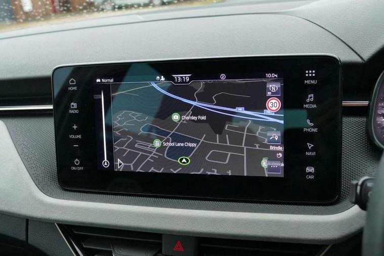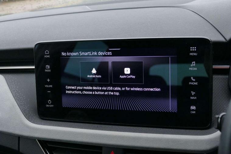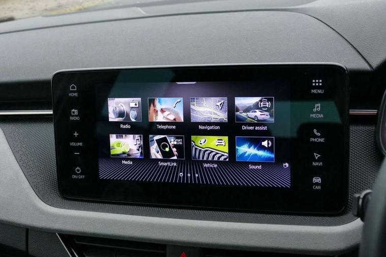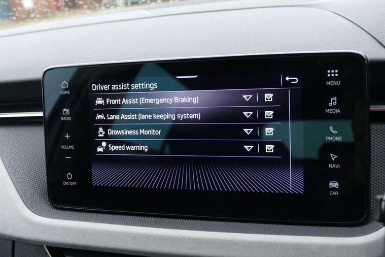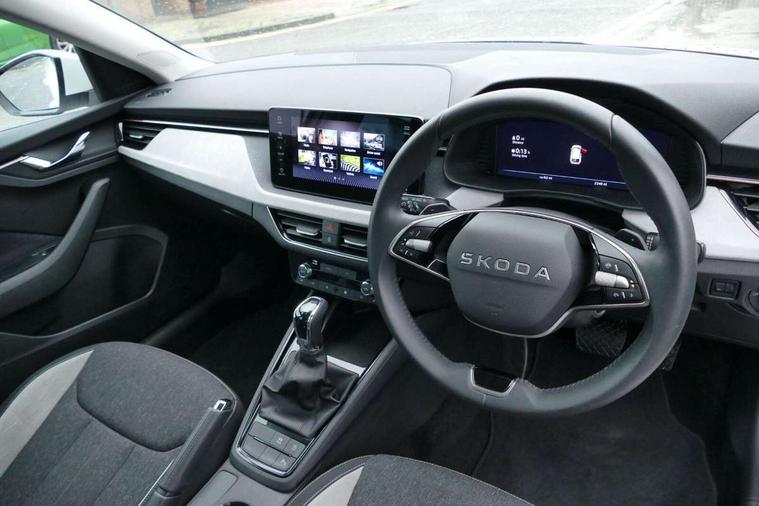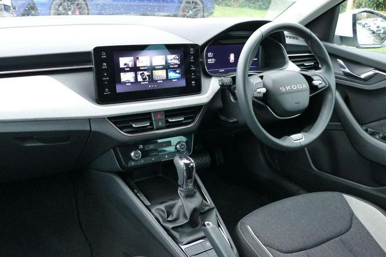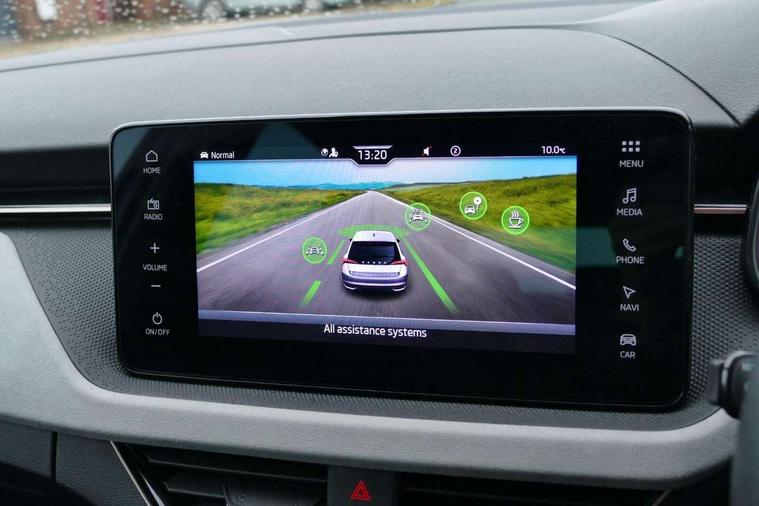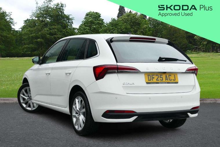 Advanced driver attention and drowsiness monitor, Bluetooth, e-Call (emergency call), Front assist system, PAS, Rear parking sensors, Rear view camera, Speed limiter, Tailgate, Traffic sign recognition, Virtual Cockpit - 10.25" digital display, Voice control system, Wireless smartlink, 4 USB C ports, 8 Speakers, 9.2" Skoda navigation display, DAB radio, Auto dimming rear view mirror, Automatic headlamp activation with Coming home and Leaving home feature, Automatic high/low beam, Automatic intermittent wipers, Body colour bumpers, Body colour door mirrors and handles, Chrome moulding around grille, Chrome window frames, Front and rear electric windows, Heated rear window, LED 3rd brake light, LED brake lights, LED daytime running lights, LED front turning lights, LED high beam, LED low beam, Light sensors, Privacy glass, Rear LED fog light, Rear side wing doors, Rear wiper, Tinted windows, Unique dark chrome design logo on alloy wheels, 12V socket in luggage compartment, 3 seat bench in 2nd row, Ambient lighting in white/red, Black / Copper armrest stitching, Cargo elements, Chrome inner door handles, Copper hotstamping, Door inserts in accent black, Driver and passenger sun visors with vanity mirror, Dual zone climate control, Front and rear roof lights, Front centre armrest, Front head restraints, Glasses storage in roof liner, Height adjustable driver seat, Height adjustable passenger seat, Ice scraper, Illuminated glove compartment, Inner circulation control with pollen filter, ISOFIX for front passenger seat, Isofix preparation for back seats, Leather gearknob and handbrake lever, Lodge cloth upholstery, Luggage net under rear parcel shelf, Manual lumbar support for front seats, Net package and top tether hooks in boot space, Pearl grey ceiling, Pocket on the back of both front seats, incl. mobile phone pockets, Rear centre armrest, Single front passenger seat, Skoda lettering on steering wheel, Textile floor mats, Third rear headrest, Ticket holder, Top tether for front passenger seat, Umbrella in driver's door, Convenience pack without rear camera - Scala, 3x3 point rear seatbelts, ABS, Child locks, Curtain airbags and front side airbags, Disc brakes, Driver and front passenger airbags, ESP, Hill hold control, Manual leather parking brake, One tone horn, Passenger airbag switch off function, Seatbelt reminder for driver and front passenger, Tyre pressure monitoring system, Anti theft alarm system with interior monitoring, backup horn and towing protection, Anti-theft wheel bolts, Remote central locking with 2 remote folding keys, SAFE function for remote central locking, Decorative inserts,