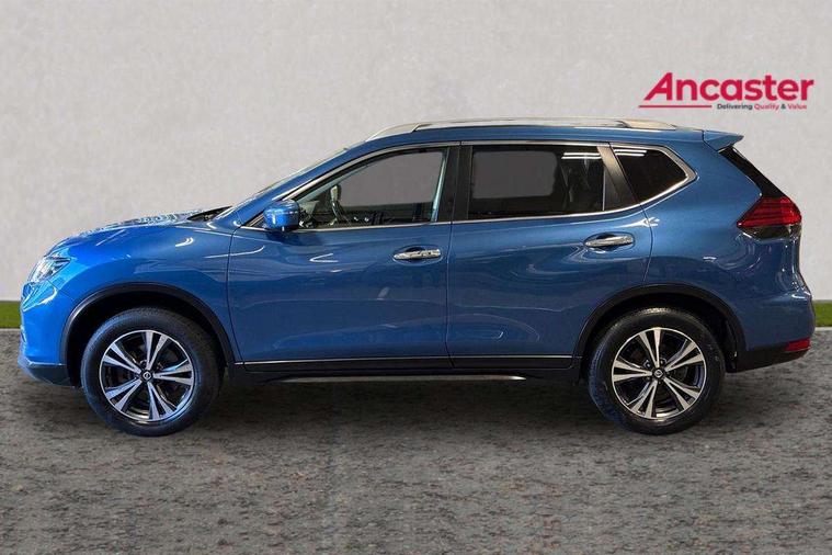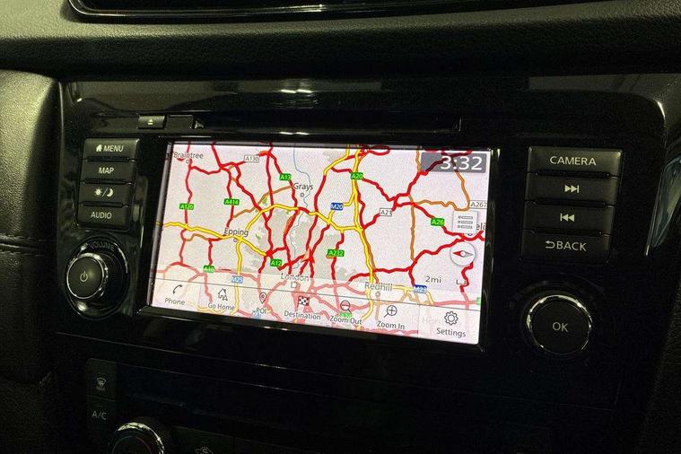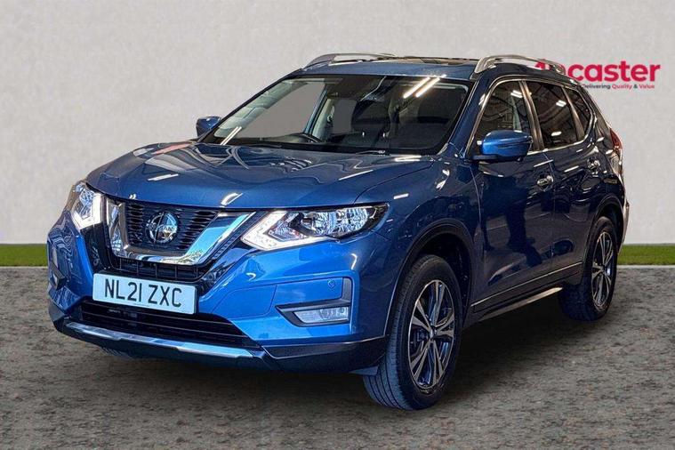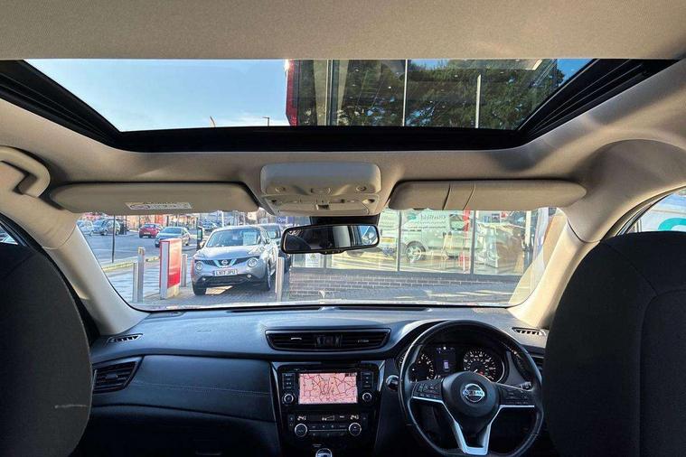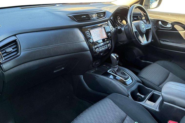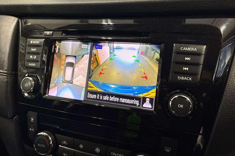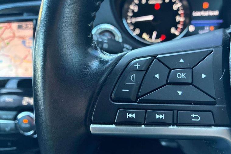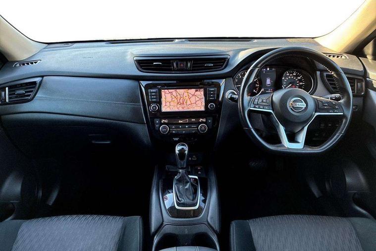 Bluetooth with microphone, Cruise control + speed limiter, Driver attention alert system, Front and rear parking sensors, High definition full colour TFT screen combimeter, Intelligent around view monitor, Lane departure warning system, New NissanConnect 7" touchscreen navigation and entertainment system, One touch automatic opening power tailgate, PAS, Push button start, Smartphone integration with Apple CarPlay and Android auto, Traffic sign recognition, Trip computer, Nissan chassis control (intelligent ride control, intelligent trace control, intelligent engine brake), DAB/AM/FM/CD Audio system with 6 speakers, Rear USB port, Steering wheel mounted audio controls, USB/aux input socket, Anti dazzle rear view mirror, Automatic headlights, Body colour door mirrors, Chrome door handles, Chrome window surround, Electric folding door mirrors, Electric heated mirrors with side turn signal light, Front and rear electric windows, Front fog lights, Halogen headlights, High beam assist, LED daytime running lights, Panoramic sunroof with one touch shade, Rain sensing windscreen wipers, Rear privacy glass, Shark fin antenna, 3 rear headrests, 60:40 rear split folding, reclining and sliding bench, Centre console storage box/armrest, Cloth upholstery, Dual zone automatic air conditioning with pollen filter, Front and rear door pockets with bottle holders, Front row ventilated cupholders, Front/rear armrests, Height adjustable front headrests, Individual rear reading lights, ISOFIX childseat anchorage points (rear), Leather D shaped steering wheel, Leather steering wheel and gear knob, Luggage board system, Manually adjustable driver's seat (side, recline, lifter, lumbar), Manually adjustable passenger (slide recline + lifter), Tilt/telescopic adjustable steering wheel, 3 point seatbelts on all seats, 6 airbags - Driver, front passenger, curtain and side airbags, ABS, Child locks on rear doors, EBD + Brake Assist, Electric parking brake, ESP + traction control, Intelligent emergency braking with pedestrian recognition, Seatbelt warning, Tyre pressure monitoring system, Engine immobiliser, Intelligent Key, Remote control door locking with superlocking, Thatcham alarm, 18" Alloy wheels, Spare wheel,