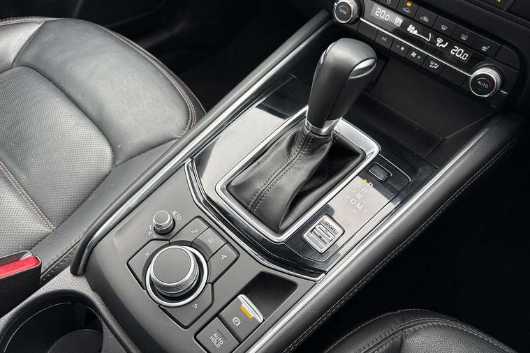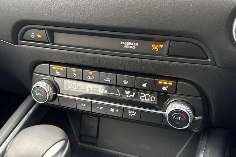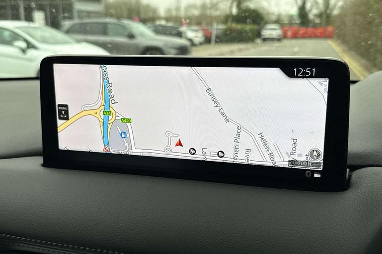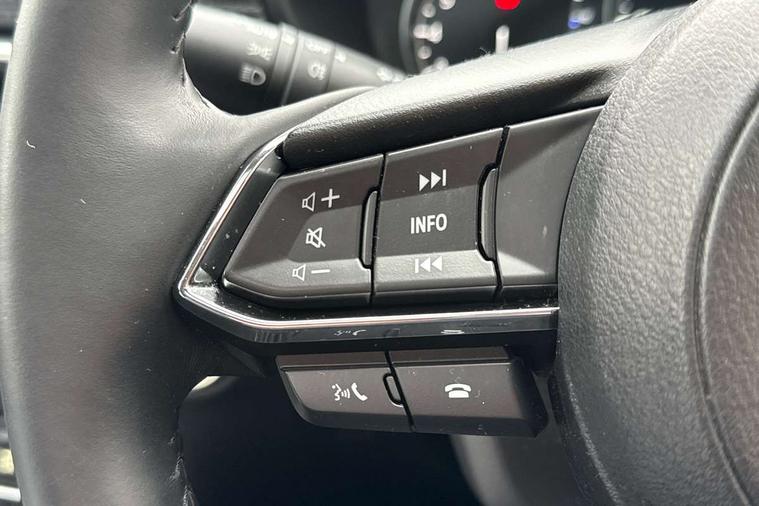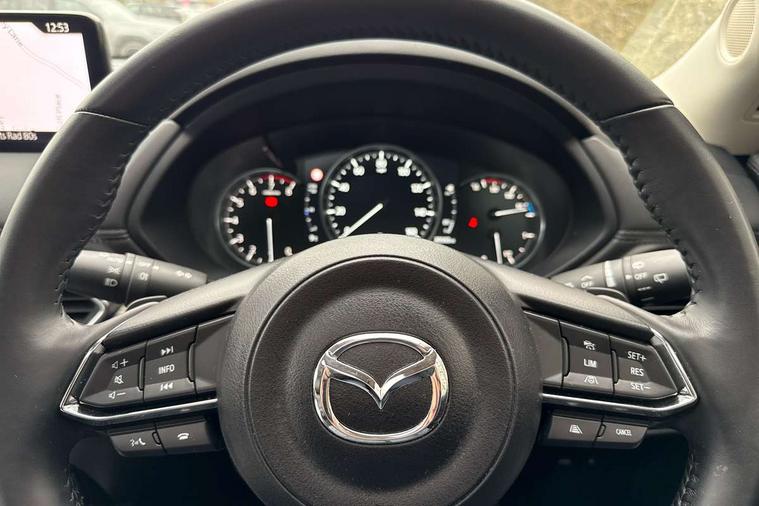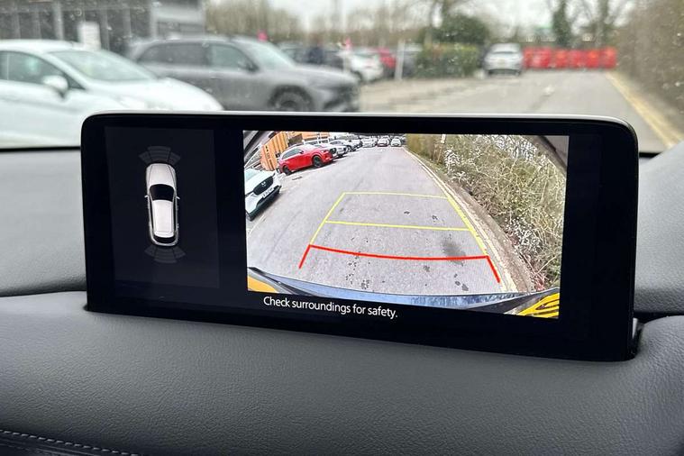10.25" display with Mazda Connect infotainment, 7" colour TFT display, Advanced blind spot monitoring, Apple car play/Android Auto, Bluetooth connectivity with voice control, Collision prevention assist, Connected services, Cruising Traffic Support, Drive mode selector, Electric power steering, Emergency stop signalling system, Engine start/stop button, Forward collision warning, Front and rear parking sensors, Integrated navigation system, Intelligent speed assist, Lane departure warning system, Lane keep assist, Radar cruise control with Stop and Go, Reversing camera, Service indicator, Traffic sign recognition (TSR), Trip computer, Windscreen projected colour active driving display (HUD) with memory, i-stop, 2 USB sockets in rear, 2x USB sockets in front, 6 speakers, AM/FM radio, Bluetooth audio streaming, DAB Digital radio, Multimedia Commander including separate volume dial, Steering wheel mounted audio controls, Adaptive front lighting system, Auto dimming rear view mirror, Automatic headlights, Black inlay dashboard panel, Body colour door mirrors, Body colour roof spoiler, Body coloured front and rear black lower bumper mouldings, Bright finish signature wing, Coming/leaving home lighting function, Door mirror integrated indicators, Dual chrome tailpipes, Dusk sensitive headlamps, Electric front/rear windows with one touch auto up/down, Front grille in gloss black finish, Gloss black B and C pillars garnish, High beam assist, Intermittent rear wash/wipe, LED auto levelling, LED daytime running lights, LED front fog lights, LED Headlights, LED third brake light, Power folding and heated door mirrors, Power tilt/slide sunroof, Privacy glass (rear side windows only), Rain sensing front wipers, Rear side wing doors, Satin black side mouldings, Scuff plates, Shark fin antenna, Signature LED rear combination lights, Vinyl with wood grain metal inlay door trim panel, Windscreen wiper de-icer, 12v electrical power outlet, 3 seat bench in 2nd row, 3 stage heated front seats, 40:20:40 Karakuri fold-flat seat system, 6 way electric adjustable passenger seat, 8 way electric driver seat with lumbar support + memory, Cargo room flat floor board with waterproof undertray, Driver seat power slide, recline and height adjustment, Driver, Front passenger and two rear grab handles with coat hooks, Driver/passenger front seatback pockets, Driver/passenger sunvisors + illuminated vanity mirrors (drivers with ticket holder), Dual zone climate control, Folding centre armrest with 2 cup holders, Front and rear door pockets, Front centre storage with two cupholders, Front passenger seat power slide, recline and height adjustment, Heated steering wheel, Humidity sensor, Illuminated glovebox, Interior dome light with integral spotlight, ISOFIX child seat anchorage points attached on outer rear seats, Karakuri tonneau cover, Leather upholstery, Leather wrapped steering wheel and gear knob, Light roof lining, Luggage compartment LED lighting, Luggage compartment power outlet, Paddle shifts, Rear air vents, Rear headrests, Rear seat recline, Roof mounted sunglasses holder, Single front passenger seat, Three height adjustable head restraints, Tilt/height adjustable steering wheel, White interior LED illumination lighting, 3 point front seatbelts with pre-tensioners, 3 rear 3 point seatbelts, ABS, Advanced Smart City Brake Support - SCBS, Child locks on rear doors, Driver and front passenger side airbags, DSTC-Dynamic Stability and Traction Control, Dual front airbags, Electronic brake force distribution, Electronic parking brake with auto hold, ESP, Front and rear curtain airbags, Front passenger airbag deactivation, G-Vectoring control, Hill hold assist, Seatbelt reminder front and rear, Single stage passenger airbags, Smart brake support with forward obstruction warning, Tyre pressure monitoring system, Automatic door locking when moving off, Deadlock, Immobiliser, Power door locks, Remote central locking, Smart keyless entry, Thatcham Cat.1 alarm, 19" diamond cut black alloy wheels, Tyre repair kit,