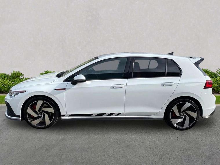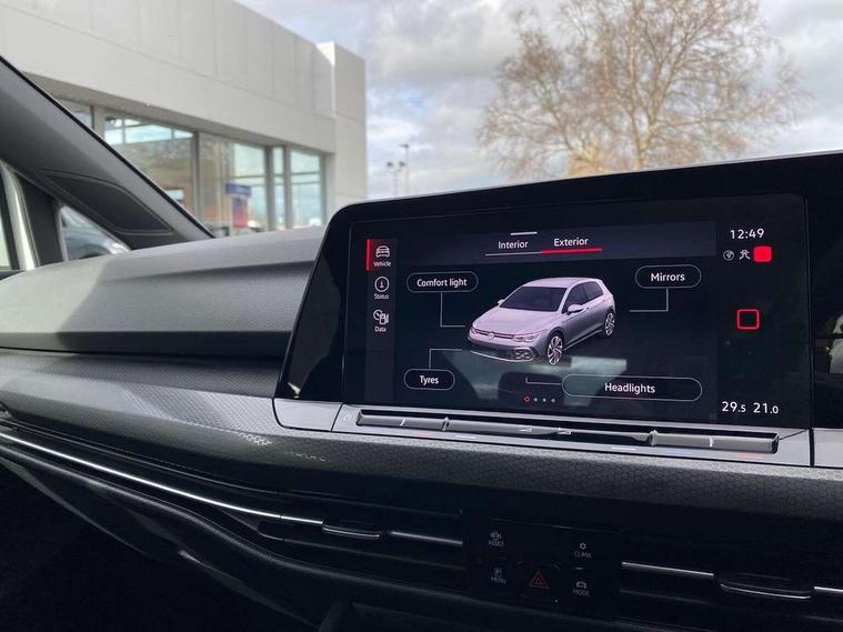 Adaptive cruise control (ACC) with speed limiter and front assist (reacting to vehicles pedestrians and cyclists), Car2X communication, Digital cockpit pro - 10.25" high resolution TFT dash display screen with customizable menus and information, Driver alert system, Driver profile selection, Dynamic road sign display, eCall - Emergency call service for SOS calls to emergency response, Lane assist, Lane change assistant, Mobile phone interface with wireless inductive charging function, Progressive steering, Speedo, rev counter, electronic odometer, trip, service interval display, exterior temperature and fuel gauge, Start/Stop function, Travel assist with emergency side assist with electrically foldable door mirrors, Warning buzzer and light for front seatbelts unfastened, Wireless app connect, Front differential lock, Petrol Particulate Filter, XDS electronic differential lock for improved traction and handling, Premium USB cable in choice of either Apple or Android smartphone compatibility, Advanced high beam control dynamic light assist for LED matrix headlamps, Auto dimming rear view mirror, Automatic headlamp activation with Coming home and Leaving home feature, Body colour bumpers, Body colour door handles, Body colour door mirrors with integrated indicators, Body colour rear roof spoiler, Chrome plated tailpipes (1 either side), Front and rear electric windows, GTI Clubsport styled bumpers, Heat insulating glass windscreen, Heated rear windscreen, High level 3rd brake light, Highway light, Illuminated front grille, IQ.Light - LED Matrix headlights, dynamic headlight control with advanced high beam control matrix dipped main beam + LED DRL + 22 LED lights, LED front fog lights with 5 honeycomb design, LED License plate illumination, LED rear combination lamp inlcuding dynamic turn signal, Performance rear spoiler, Rain sensor, Rear fog light on one side and reversing lights on both sides, Rear tinted glass 65% light absorbing from B pillar backwards, Rear windscreen washer and wiper with interval delay, Remote electrically heated, adjustable and foldable door mirrors, including door mirror puddle lights and reverse activated kerb-view adjustment on pa, Welcome light, 12V socket in front centre console, 12V socket in luggage compartment, 3 rear head restraints, 3 zone climate with controls in the rear, Aluminium gear knob, Ambient lighting - Customisable 30 colour ambient lighting, Ambient lighting, exterior illuminated styling elements at the sides, Black roof lining, Brushed stainless steel pedals, Centre console, Chrome plated surround to electric mirror button, window switch and air vent surrounds, Drivers and front passengers sun visors with vanity mirrors, Front + rear carpet mats, Front centre armrest with storage compartment, Front cupholders x 2, Front reading lights x 2 incorporating LED technology, Front seat lumbar support adjuster, Front sports seats, Glovebox, Height adjustable front seats, Height and reach adjustable steering wheel, Isofix child seat preparation for 2 rear child seats and front passenger seat, Leather wrapped multifunction sports heated steering wheel with paddle shift, Luggage compartment lighting, Removable luggage compartment cover, Split folding backrest with centre armrest and unsplit rear seat bench, Woven fabric storage compartments in front and rear doors, 3 point height adj front seatbelts + pretensioners, 3 rear three point seatbelts, ABS, Driver and front passenger airbag with front passenger airbag deactivation, Drivers and front passengers safety optimised head restraints, Electronic parking brake with auto hold, ESC (Electronic Stability Control), Extended pedestrian protection measures, Front and rear passengers curtain airbag system including front side airbags, Front disc brakes, Rear disc brakes, Two tone horn, Tyre pressure monitoring system, Alarm with interior protection and deactivation via infotainment system, Electronic engine immobiliser, Keyless entry with start/stop button on centre console, Black metal chrome decorative inserts in dash and front door trim panels, Soul dashboard, Tyre mobility kit Includes 12V compressor and tyre sealant,