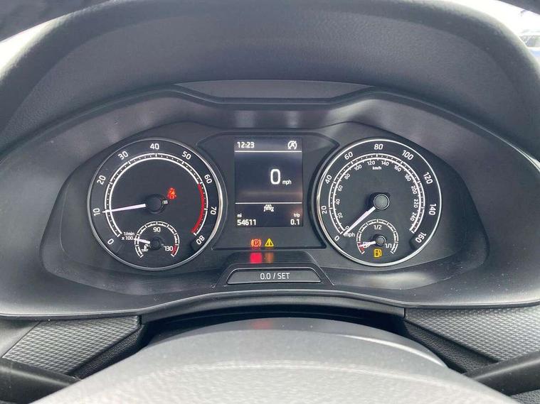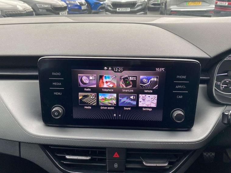 Bluetooth system, Easy light assist, Front assist system, Lane assist, Multi function trip computer, PAS, Rain and light assist with auto dimming rear view mirror, Speed limiter, 2 USB - C ports, 8 loudspeakers, Bolero radio with 8" touchscreen display, DAB Digital radio, Body colour door mirrors and handles, Chrome grille surround, Electrically adjustable and heated door mirrors, Front and rear electric windows, Tinted windows, 12V Accessory socket in centre console, Chrome inner door handles, Cloth upholstery, Decor strip on dashboard and door panel, Front head restraints, Glasses storage in roof liner, Height adjustable drivers seat, Height adjustable passenger seat, Instrument cluster with chrome painted decor ring, ISOFIX for rear passenger seat, Leather gearknob and handbrake lever, Manual lumbar support for front seats, Reading lights for driver and front passenger, Sun visor with make up mirror for front passenger, Third rear headrest, Umbrella, 3x3 point rear seatbelts, Curtain airbags, Emergency call and proactive services, Front head and side airbags, Hill hold control, Passenger airbag switch off function, Seat belt reminder for all seats, Two tone horn, Alarm, Anti-theft wheel bolts, SAFE function for remote central locking, Temporary space saver wheel,