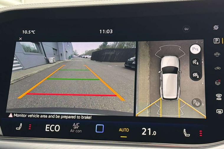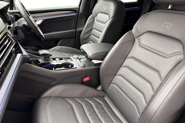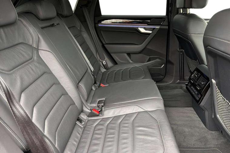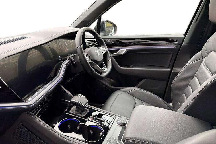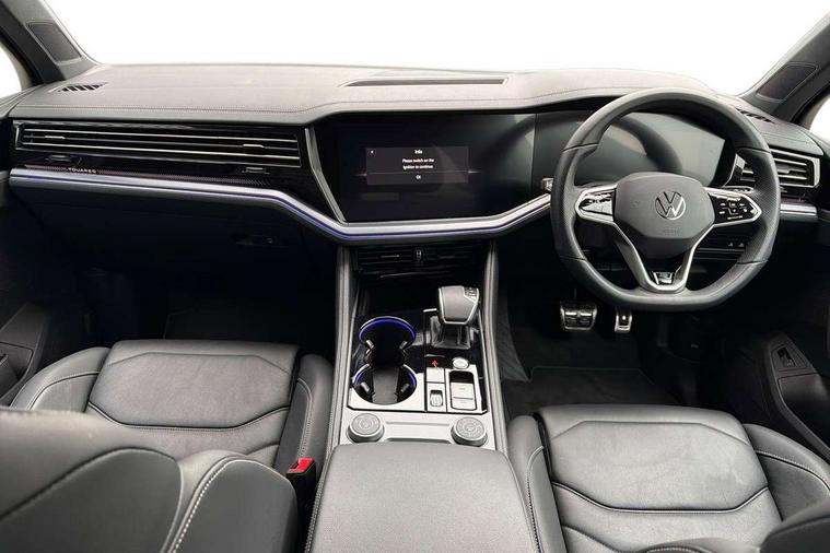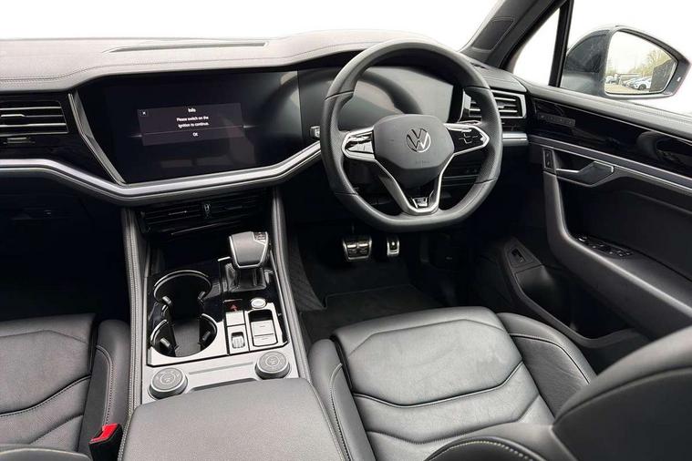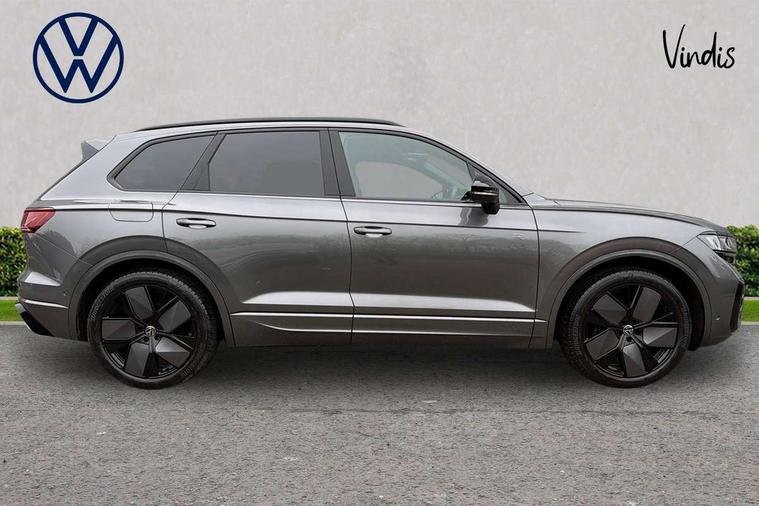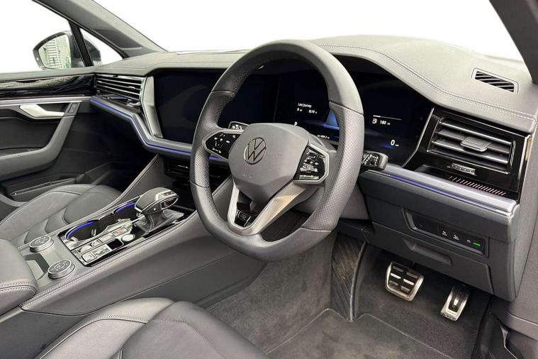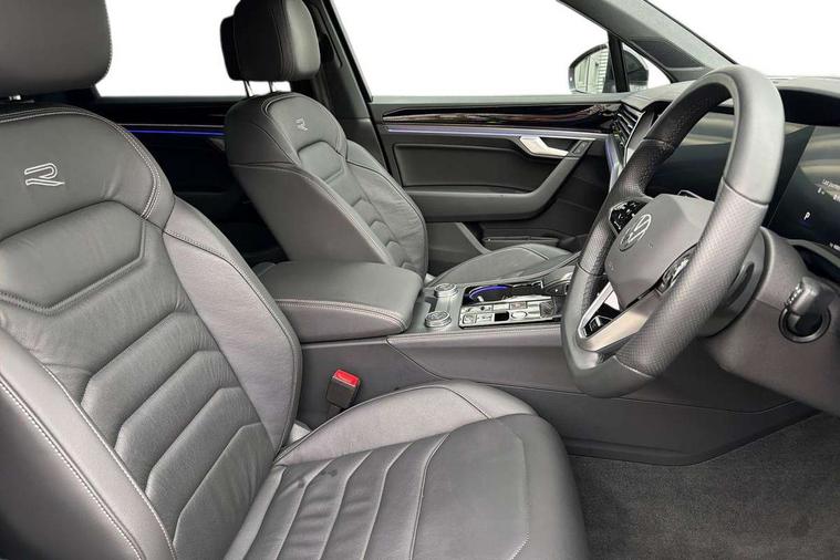 15" Screen Top infotainment system Premium (MIB3), Adaptive cruise control, Advanced driver attention and drowsiness monitor, Driver profile selection, Dynamic road sign display, E-Sim card for online connectivity, eCall emergency system, Innovision cockpit, Intelligent park assist, Mobile phone interface with inductive charging, Multi-colour Active Info display, Park Assist - Sensor controlled steering aid to assist parallel or bay parking, PAS, Warning signal and warning light for front and rear seatbelts not fastened, Wireless app connect, Adaptive chassis control, DAB Digital radio, Diversity antenna for AM/ FM reception, We Connect and We Connect Plus functionality, Automatic coming/leaving home lighting function, Automatic headlights, Black door mirrors, Black style comfort bumpers, Dynamic headlight range control with dynamic cornering light, Electric front tilt/slide panoramic sunroof and fixed rear sunroof, Electrically power adjustable, heated, folding, auto dimming, front passenger exterior door mirror lowering function, External USB type C socket and charging sockets, Gloss black roof rails, HD LED Matrix beam plus digital headlight projection with variable light distribution, Headlight washers, Heated windscreen washer jets, Highway light, LED 3rd brake light, LED daytime running lights, LED rear combination lamp with variable lighting functions and special styling, Poor weather light, Rain sensor, Rear exhaust tailpipe, Rear fog light with back up light on both sides, Rear light bar and illuminated logo, Rear side wing doors, Rear wiper, Stainless steel door sill protection, 12V socket in centre console, 3 rear headrests, 3 seat bench in 2nd row, 4 zone climate control, Airbag label on sun visor and B-pillar, Brushed stainless steel pedals, Double sun visors with illuminated vanity mirrors, Front + rear carpet mats, Front centre armrest, Leather wrapped multifunction sports steering wheel, heated, with touch control and shift paddles, Mechanical rear seat release, Power adjustable lumbar support in front, Power seats in front, right side with memory features and seat cushion depth adjustment, Rear seat backrest and split folding with center armrest, Single front passenger seat, Tool kit, Memory pack plus - Touareg, 3 point seatbelts, outer rear with ECE lable, ABS, Child locks on rear doors, Curtain airbags, Driver and front passenger safety-optimised head restraints, Driver/Front Passenger airbags, Extended pedestrian protection measures, Front assist, Front seat side impact airbags, Generative braking with start and stop system, Height adjustable 3 point front seatbelts with pre tensioners, Passenger airbag deactivate switch, Three 3 point rear seatbelts, Two tone horn, Tyre pressure loss indicator, Warning triangle and first aid kit, Alarm system with interior protection, Easy open and close sensor controlled luggage compartment opening and closing with remote unlocking, Keyless Access Keyless locking and starting system with SAFELOCK, Aluminium decorative inserts, Black decorative trims, Gloss black decorative inserts in centre console,