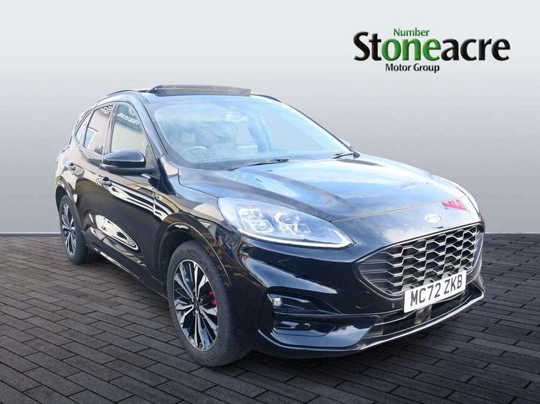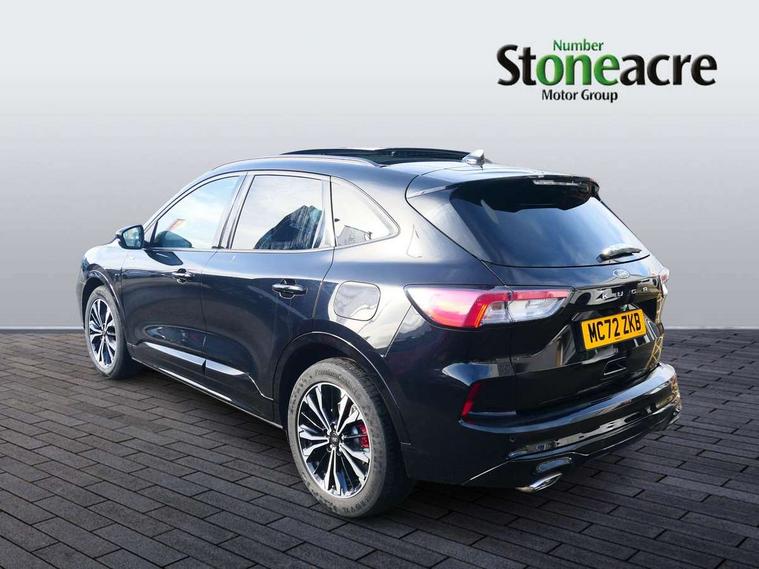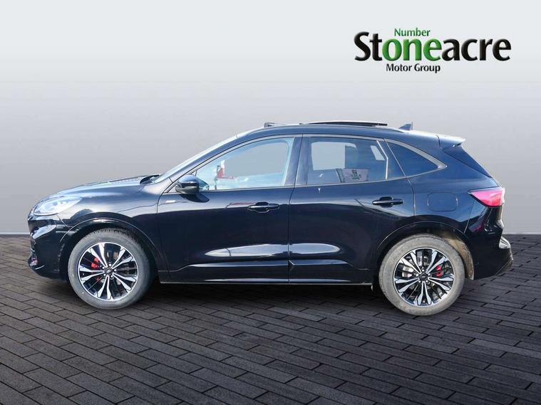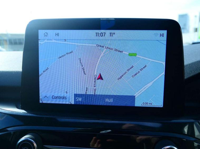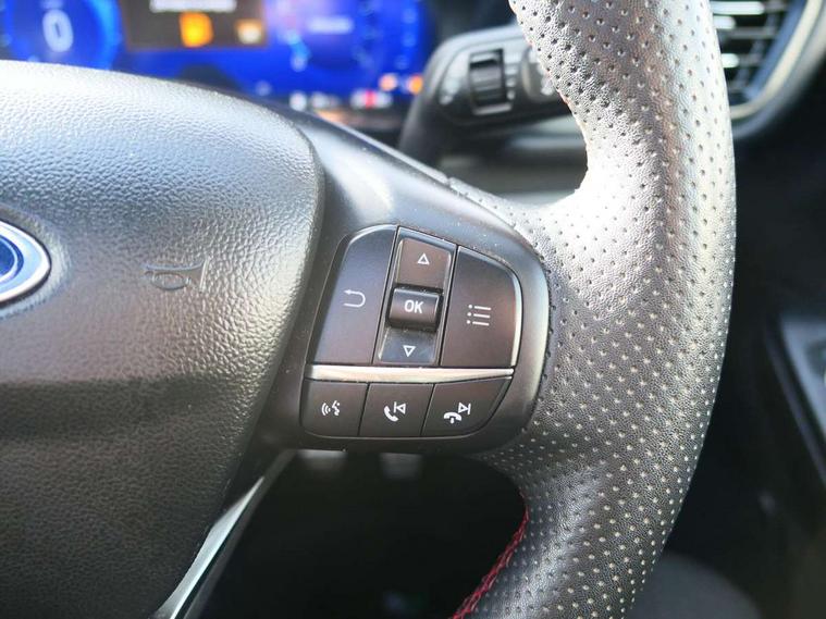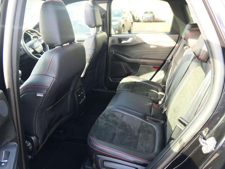 12.3" digital colour instrument cluster, Ford easy fuel, Ford SYNC 3 with 8" TFT LCD touchscreen, App Link, andriod auto/apple carPlay, emergency assistance and navigation with Ford pass connect, Front and rear parking sensors, Hands free power tailgate, Lane keeping aid with lane departure warning, Power assist steering, Rear view camera, Selectable drive modes, Service interval indicator, Sports suspension, Twist beam rear suspension, B&O premium audio system with 10 speakers and subwoofer, 2 USB ports, DAB radio/CD, Auto headlamps with high and low beam, Black roof rails, Day/night rear view mirror, Front LED fog lamps, Large rear spoiler, LED daytime running lights, LED rear lights, Power folding heated door mirrors with puddle lights, Power front/rear windows with global close, Power opening panoramic roof, Privacy glass, Quickclear heated windscreen, Rear side wing doors, Rear wiper, ST Line body styling kit with unique front and rear fascia and bumper, rear painted diffuser, front painted skid plates, dark mesh upper grille, ST Line front scuff plates, Third brake light, Twin exhausts, 10 way power adjustable drivers seat, 2nd row sliding seats with 60:40 split, 8 way manual passenger seat including lumbar support and height adjust, Alloy pedals, Centre console with electronic parking brake, Dark headlining and pillars, Electronic automatic temperature control (EATC), Flat bottomed leather steering wheel in sensico with red stitching, Front and rear head restraints, Heated passenger and driver seats, Heated rear seats, Heated steering wheel, Partial premium touch sensico leather upholstery with black cloth inserts and red stitching, Rear charging point, Single front passenger seat, Sports seats, ST Line front and rear floor mats, ST Line gear knob, 3x3 point rear seatbelts, Airbags - front driver/passenger, front and rear curtain, Drivers knee airbag, Electronic stability control (ESC) and ABS, Ford MyKey Gen 2 safety system, Manual child proof rear door locks, Post collision braking, Pre collision assist with autonomous emergency braking, Rear seat Occupancy alert, Red brake calipers, Tyre pressure monitoring system, Engine immobiliser, Keyless entry and Ford power start button (Keyless start), Locking wheel nuts, Remote powered central double locking doors, Thatcham category 1 alarm,