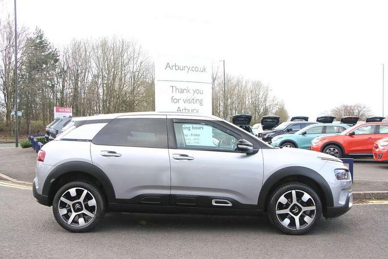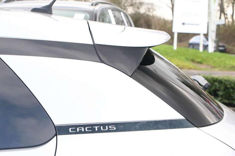 7" touch screen, Citroen connected nav with connect box and emergency assist system, Coffee Break Alert, Cruise control + speed limiter, Driver attention alert system, Electric power steering, Exterior temperature display with ice alert, Gear efficiency indicator, Lane departure warning system, Mirror Screen with Apple car play/Android Auto, Suspension with Progressive Hydraulic Cushions, Auxiliary input socket, Bluetooth handsfree and media streaming, DAB Digital radio, RDS radio with MP3 player and 6 speakers, Steering wheel mounted controls, USB socket, 3D effect LED rear lights, Acoustic windscreen, Body colour door handles, Body coloured bumpers, Dark tinted rear windows, Electric adjustable/heated/folding door mirrors, Electric front windows - anti trap + one touch, Electrochrome rear view mirror, Front fog lights with cornering function, Gloss black rear insert with Cactus lettering, Halogen headlights with height adjustment, Hinged rear windows, LED daytime running lights, Magic wash, Rear wiper, Thermal insulated panoramic sunroof, Wheel arch extensions, 1/3 to 2/3 split folding rear seats, 12V socket in cabin, 3 rear headrests, Carpet mats, Driver seat lumbar adjustment, Driver's footrest, Front armrest, Front courtesy lights, Front head restraints, Front sunvisors with driver courtesy mirror, Height adjustable driver/front passenger seats, Larger front door pockets, Lashing eyes in boot, Leather steering wheel with integrated controls, LED front and rear reading lights, Open storage towards top of rear doors, Reach + rake adjustable steering column, Rear door pockets with bottle holders, Rear garment hooks, Rear parcel shelf, Rear storage pockets, Semi raised centre console with two cup holders, Top box dashboard storage compartment, Two front cupholders, Two rear isofix mounting points, Auto pack - C4 Cactus, City camera pack with Rear parking sensor - C4 Cactus, Gloss black pack - C4 Cactus, 3x3 point rear seatbelts, ABS with Electronic brakeforce distribution and Emergency braking assistance, Active safety brake, Airbags - Driver and front passenger with cut off device, front lateral and curtain, Electric child locks, Electronic stability control, Front seatbelt pretensioners with force limiters, Height adjustable front seatbelts, Hill start assist, Passenger airbag deactivate switch, Road sign recognition, Tyre pressure monitor, Unfastened seat belt warning on all seats, Alarm, Locking wheel nuts, Remote central locking + deadlocks, Transponder immobiliser, Space saver spare wheel,