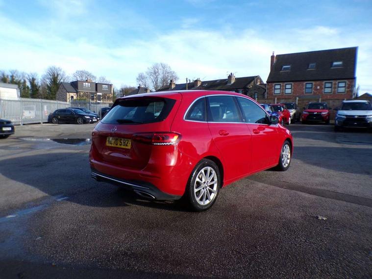 180 degree reversing camera with parking guidelines, 7 inch digital cockpit display, 7 inch instrument digital display, 7 inch touchscreen media display, Active lane keeping assist, Attention assist - Monitors steering behaviour and long journey fatigue, Brake pad wear indicator warning light, Cruise control + speed limiter, Dual bluetooth interfaces, DYNAMIC SELECT with a choice of driving modes (ECO, Comfort, Sport and Individual), Easy-pack tailgate, ECO start/stop function, Fluid level warning indicator for fuel, oil, coolant and washer fluid, Lamp failure indicator, Live traffic information, MBUX multimedia system with Hey Mercedes, DAB Digital Radio and hard disc navigation, Mercedes me connect including emergency call system, accident recovery, breakdown management and maintenance, Outside temperature gauge, Owners manual and service booklet in English, Pre-installation for car sharing, Pre-installation for Vehicle Monitoring, Pre-installation for Vehicle Setup, Preinstallation for Mercedes Benz link, Service indicator (ASSYST), Speed limit assist, Speed sensitive power steering, Trip computer in multifunction display with current consumption indicator, BlueTEC diesel emission control system including AdBlue reservoir, Comfort suspension, Diesel particulate filter, Rear axle torsion beam, 2 USB ports (type C) in rear stowage compartment and one in front of center console, Mercedes Benz sound system (100 W) with 6 speakers, 4 Electric Front and Rear windows, Adaptive brake lights, Body coloured bumpers, Body coloured door handles, Body coloured side skirts, Car wash function, Chrome beltline strips, Chrome weather strip, Diamond radiator grille pins in black with two louvres painted in silver and chrome insert, Electric adjustable and heated door mirrors with integrated LED side indicators, Exhaust system with 2 Visible tailpipe trim elements and rear apron with trim in chrome, Headlamp assist automatic headlamp activation, Heated glass rear windscreen + timer control, High level LED third brake light, Interior mirror with black reading lamps and frameless, LED high performance headlamps with integrated LED daytime running lights, LED tail lamp, Radio aerial, Rain sensing windscreen wipers with two sensitivity settings, Rear fog lamp, Rear windscreen wiper, Window line trim strip in chrome, 40:20:40 split folding rear seats with backrest, Air conditioning - air vents with silver chrome surround, Air conditioning - Two zone thermotronic luxury automatic climate control with display, Artico man-made leather/Fleron fabric upholstery, Automatic child seat recognition sensor, Black roof lining, Comfort seats with adjustable head restraints, Freight packaging without tie-down hooks, Front and rear head restraints, Front centre armrest with stowage, Front door sills with Mercedes Benz lettering, Front seat cushion length adjustment, Gearshift paddles on steering wheel, Heated front seats, Illuminated glove compartment stowage, Luggage net on driver/front passenger seat backrest, Manually adjustable front seats, Manually height and reach adjustable steering column, Multifunction sports leather steering wheel with black topstitching and bezel in silver chrome, Rear armrest with 2 cupholders, Rear seats with fore/aft adjustment, Seat occupancy sensor for front passenger seat, Stowage compartment in centre console with retractable cover, Sunvisors with illuminated vanity mirrors, Touchpad on center console, Twin front cupholders, Two outer rear seat isofix and top tether child seat fixing points, Velour floormats, Interior lighting with light and sight pack - B Class, Seat comfort pack - B Class, 3 rear three point seatbelts, Active bonnet pedestrian safety measure which detects an impact and raises bonnet, Active brake assist includes forward collision warning system with autonomous braking, Adaptive brake assist with hold function and hill start assist, Airbags - kneebag for driver, Anti-lock braking system (ABS) with brake assist, Black seat belts, Childproof locks manually operated for rear doors and electrically operated for rear power windows, Crash responsive emergency lighting, Curve dynamic assist, Driver and front passenger head and sidebags, Driver and front passenger windowbags, Dual stage driver/passenger airbags, Electric parking brake, Electronic stability programme with acceleration skid control, Front and rear seatbelt reminder, Tyre pressure monitoring system, Warning triangle and first aid kit, Alarm system with immobiliser and interior protection -Thatcham category 1, Keyless Go starting function, Remote central locking and crash sensor with emergency opening function, Urban guard vehicle protection - Anti theft alarm system, tow away protection with visual and acoustic warning and alarm siren, Light switch in high-gloss black with ring in silver chrome, Spiral look trim, 17" 5 twin spoke light alloy wheels painted in matt black with high sheen finish, Summer tyres, Tirefit tyre sealant kit,