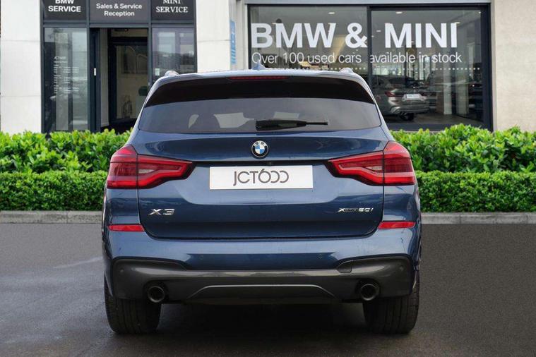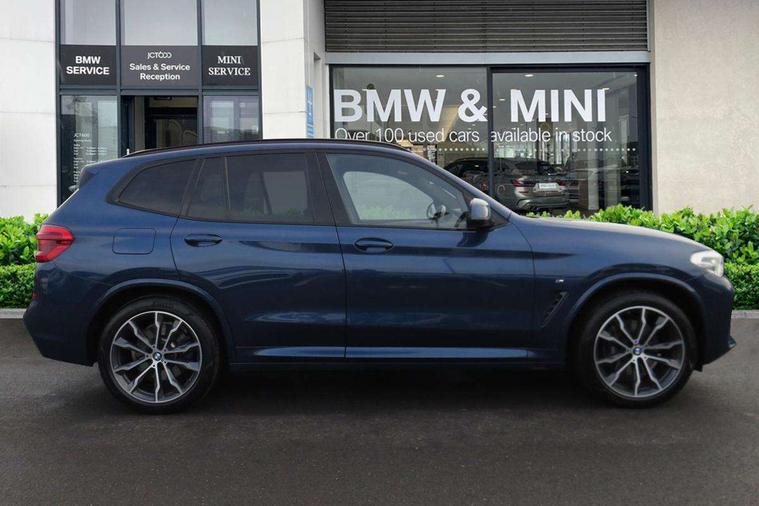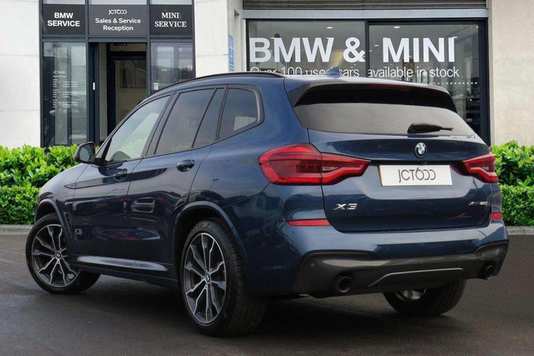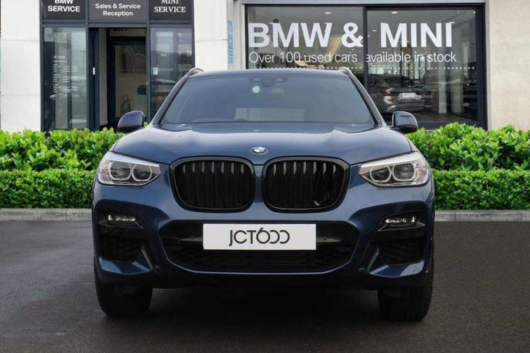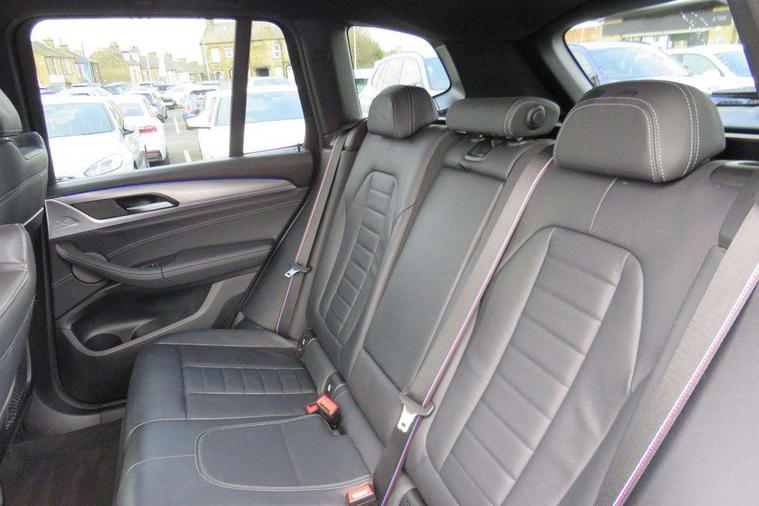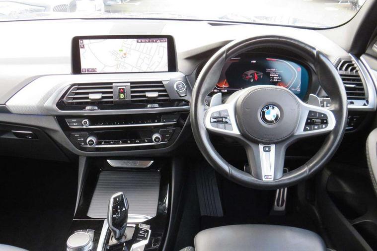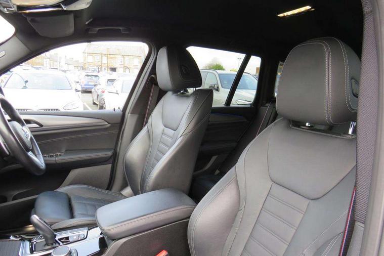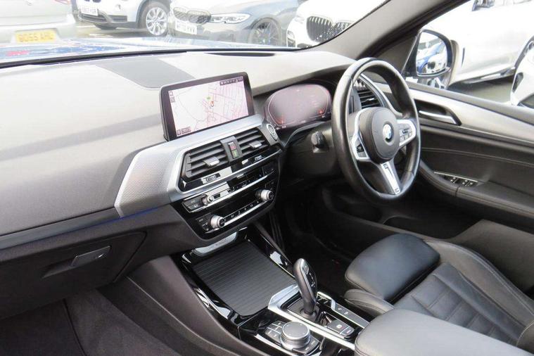 Attentiveness assist, Automatic tailgate operation, BMW Live Cockpit Professional sat nav system including 10.25" high resolution display and Intelligent Voice Assistant, BMW Online services, BMW Teleservices, Brake pad wear indicator in front and rear, Check Control warning system for monitoring of lights and door/luggage compartment open warning, Control display - 6.5" colour display screen, Electric Power Steering (EPS) with Servotronic, iDrive Controller with 8 favourite buttons, Lights on warning by audio warning signal when ignition is switched off, Navigation system - BMW Professional multimedia with Hard disc drive (HDD) and 10.25" touch display, Oil sensor for level and grade, warning by check control system, On board computer - average speed+fuel consumption, service interval, clock/date, odometer/trip meter, outside temperature display and ice warning, Optimum shift indicator, Personal Profile - automatic lock when driving away selectable, Semi digital instrument cluster, Stop/start system, Automatic transmission with gearshift paddles, Drive performance control with ECO PRO comfort + sport mode, Incorrect fuelling protection, M sport suspension, Multi-link rear suspension, Performance Control, Auxiliary socket for external MP3 player, BMW professional radio/CD/MP3, DAB Digital radio, Acoustic glazing, Black finish on B pillars, Body colour door handles, Body colour electric adjust heated aspherical door mirrors, Body colour roof mouldings, Body coloured bumpers, Chrome kidney grille with high gloss black vertical slats, Direction indicator, side repeaters, integrated in exterior mirrors, Dual chrome exhaust, Dynamic brake lights, Exterior mirrors - electrically folding with anti-dazzle, Fingertip control / anti-trap function on electric window, Follow me home headlights, Front and rear bumper system with replaceable deformation elements, Front and rear electric windows, Green tinted heat insulating glass, Heated windscreen washer jets, Height adjustable headlamps, High gloss black door sill finishers, High gloss black shadow line roof rails, High gloss shadowline exterior trim in decorative moulding side frame/recess cover/guide rail/B, C pillars/mirror frame and triangle with mirror base, High level 3rd brake light incorporating LED Technology, Interior rear view electrochromatic mirror with automatic anti dazzle function, LED front fog lights, LED tail lights, Lightweight engineering, M aerodynamic bodystyling, Model designation, Rain sensor including auto headlights activation, Rear wiper, Shark fin antenna, Side exterior M designation badges, Visible VIN plate, Welcome lighting, Windscreen wipers with adjustable interval, 12V socket in centre console and luggage area, 3 rear headrests, 3 zone automatic air conditioning, 4 lashing points to secure luggage, Ambient lighting, Anthracite headlining, Anthracite Velour floor mats, Door sill finishers with BMW Individual designation, Driver/passenger sunvisors with ticket holders + illuminated vanity mirrors, Foldable boot floor with storage compartment, Four grab handles integrated in roof lining, Front and rear bottle holders integrated into door trim storage compartments, Front and rear side armrests integrated into door trim, Front centre armrest with storage compartment, Front footwell lights, Front sports seats, Front/rear courtesy lights with soft on/off dimming, Front/rear reading lights, Height adjustable front/rear head restraints, Isofix rear child seat preparation, Leather gear knob, Luggage area underfloor compartment, Luggage compartment lighting, M leather steering wheel, Parcel shelf removeable and storable under boot floor, Reach and rake adjustable steering column, Rear centre armrest with 2 cupholders, Removable / retractable luggage cover, Slope adjustable rear seats, Storage compartment in rear centre console and front/rear door trims, Through loading system with 40/20/40 split folding rear seat, Toolkit located in luggage compartment, Two front cupholders with removable oddments tray/lid, Vernasca leather upholstery, Connected pack professional - X3, ABS/EBD, ADB - Automatic Differential Brake, Automatic Stability Control (ASC), Battery safety cut-off, BMW emergency call, Brake assist, Brake drying, Brake energy regeneration, Braking pre-tensioning, Child locks on rear doors, Cornering brake control (CBC), Crash Sensor - activation of central locking release, hazard warning light and interior lighting, Deactivation of fuel pump in the event of a crash, Driver and front passenger front and side airbags with passenger deactivation and ITS front and rear head airbags, DSC+, Dynamic brake control, Dynamic Traction Control - DTC, Electromechanical parking brake, Front seat belts warning, Hill descent control, Hill start assist, Seatbelt security check for front seats, Side impact protection, Three point seatbelts to all seats with front and outer rear pyrotechnic belt tensioners and seat belt force limiters, Two tone horn, Tyre pressure monitoring system, Ventilated front and rear disc brakes, Warning triangle and first aid kit, Central locking switch for all doors, fuel filler cap and luggage compartment, Electronic engine immobiliser, Locking wheel nuts, Remote control including two integrated key - one button for open/close all lockable content, windows and separate button for open luggage compartment, Remote control Thatcham category 1 alarm, Start/stop button with Comfort Go keyless engine start and auto Start/stop deactivation button, Low rolling resistance tyres,