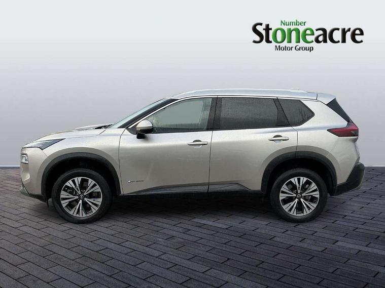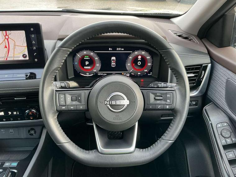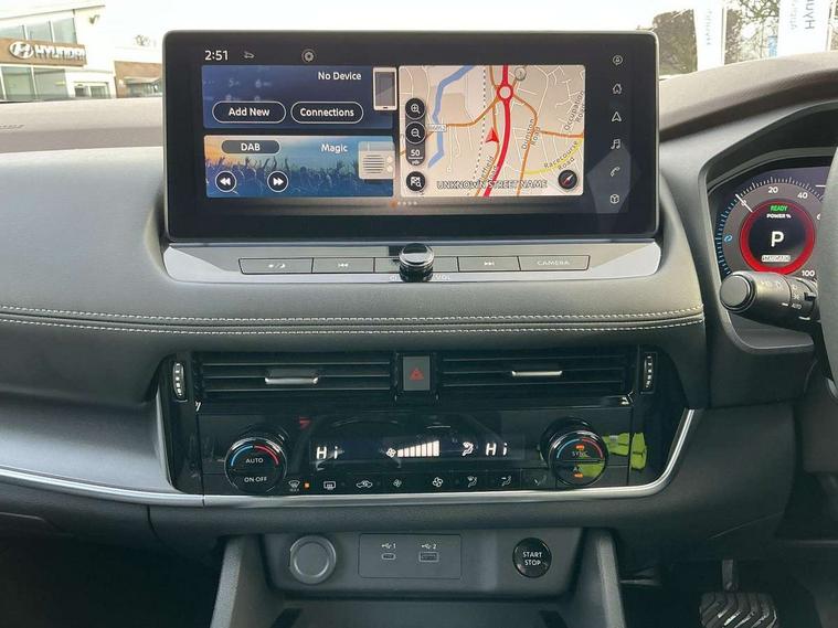 Android auto/Apple CarPlay (Wired), Blind spot warning, Drive modes (sport, normal, eco, snow, off-road), e-Pedal step, Electric speed sensitive power steering, Emergency and breakdown call, Front and rear parking sensors, Full Digital 12.3" TFT Digital Combimeter, Google maps services - search, weather, 3D maps and Google street view, Idle stop/start system, Intelligent around view monitor, Intelligent Cruise control (ICC), Intelligent driver alert system, Intelligent forward collision warning, Intelligent lane departure warning, Intelligent lane intervention, Intelligent lane keep assist, Maximum speed limiter, Moving object detection, Nissan connect 12.3 inch touchscreen infotainment system, Nissan connect nav with TomTom traffic, Push button starter, Rear cross traffic alert, Rear view camera, Remote control services - door locks, lights, horn and car locator, Telematics - notifications and connectivity services, TomTom live traffic services, Traffic sign recognition with legal speed adjustment, Trip computer, Virtual personal assistant and firmware over the air capability, Wireless apple carplay, 6 speakers, AM/FM audio system with DAB, Bluetooth audio streaming, Front USB connections (Type-A and Type-C), Rear USB charging only ports (Type-A and Type-C), 3rd brake light, Auto dimming rear view mirror, Auto rear wiper when reversing, Body colour mirror caps, Body coloured door handles, Bodyside mouldings, Chrome side window finisher, e-4ORCE badging, e-POWER badging, Electric auto folding door mirrors, Electrically adjustable and heated door mirrors, Follow me home headlights, Headlights auto levelling system, High beam assist, Intelligent auto headlights, LED daytime running lights, LED Headlights, LED rear lights, One touch front and rear electric windows with remote opening and closing, Partially body coloured bumpers, Rain sensing wipers, Rear privacy glass, Rear reversing light (bulb lighting), Rear roof spoiler, Rear side wing doors, Rear styling plate, Shark fin antenna, Splash free wipers, Super UV and infrared cut glass, Three blink turn signal, 12v power socket in dashboard and luggage, 3 bench rear seats in 2nd row, 3 rear headrests, 60/40 split folding rear seat bench, Butteryfly console, Chrome interior door handles, Cloth monoform upholstery, Driver and front passenger sunvisors with illuminated vanity mirrors, Driver seat back pocket, Dual zone automatic climate control with pollen filter, Front centre console and armrest, Front cupholders, Front door with bottle holders, Height adjustable driver's seat, Height adjustable front headrests, Height adjustable passenger seat, Leather shift knob, Leather steering wheel, Luggage board system, Luggage space lighting, Multifunction steering wheel, Passenger seat back pocket, Rear armrest with 2 cupholders, Rear door bottle holders, Single front passenger seat, Tilt/telescopic adjustable steering wheel, Two rear isofix child seat anchorage points with top tether, 3x3 point rear seatbelt pretensioners + load limiters, ABS with EBD and brake assist, Active brake limited slip, Auto hold function, Child locks on rear doors, Curtain and front side, far side airbags, Driver and passenger airbags, Driver, passenger and 2nd row rear seat belt reminder, Electronic parking brake, Front seatbelt pretensioners + load limiters, Height adjustable front seatbelts, Hill start assist, Intelligent blind spot intervention, Intelligent front emergency braking with pedestrian, cyclist recognition and junction assist, Intelligent rear automatic braking, Tyre pressure monitoring system, Vehicle dynamic control, Engine immobiliser, Intelligent Key, Remote central door locking with deadlocking, Thatcham Cat.1 alarm, 18" Diamond cut alloy wheels, Tyre puncture repair kit,