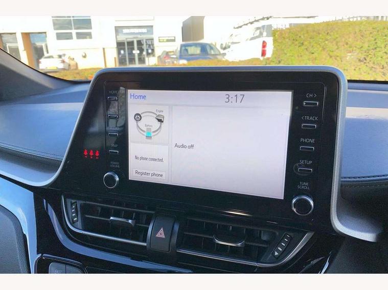 4.2" coloured TFT screen for multi-information display, Adaptive cruise control, Bluetooth connectivity, E-call, Electric power steering, Hybrid system indicator, Lane departure alert with steering control, Remote boot door release in cabin, Remote boot door release in key, Reversing camera, Road sign assist - RSA, Trip computer, Voice recognition, Vehicle Stability Control (VSC), 6 speakers, AM/FM radio, DAB Radio (Digital Audio Broadcasting), Toyota touch 2 multimedia system with 8" display, USB connector, Wi-fi connectivity, Anti-jam protection on power windows, Auto high beam, Auto up and down function on all power windows, Automatic headlights, Automatic headlights cut-off, Black and body coloured rear bumper, Black upper front grille, Body colour door handles, Body colour door mirrors, Body colour front spoiler lip, Body coloured front bumper, Boot door release with push button, Electric heated door mirrors, Follow me home headlights, Front and rear power windows, Front fog lights, Honeycomb lower front grille, LED daytime running lights, LED front light guide, LED High mounted stop light, LED rear brake lights, LED rear combination lights, Manual headlight levelling, Manually retractable door mirrors, Noise reduction layer on front windows and windscreen, Power adjustable door mirrors, Rain sensor, Rear side wing doors, Rear spoiler, Rear tailgate, Rear window defogger, Rear window wiper, Reflective LED headlights, Shark fin antenna, UV-filter on driver and passenger windows, UV-filter on rear windows, 12v power outlet - front, 3 rear headrests, 3 seat bench in 2nd row, 3 spoke leather steering wheel, 60/40 split folding rear seat, Adjustable rear headrests, Adjustable speed limiter switch on steering wheel, Assist grips front and centre pillar, Audio and telephone switches on steering wheel, Black front door assist grips, Boot light, Chrome interior door handles, Cloth upholstery, Driver and front passenger personal light, Driver and front passenger Whiplash Injury Lessening seats, Dual zone automatic air conditioning, Floor mats, Front cupholders, Front head restraints, Front sports seats, Glovebox with internal light, Hard tonneau cover, Hooks for luggage holding net, Humidifying Nanoe air purifier, Illuminated entry system, Isofix attachments on outer rear seats, Leather gearshift, Light on driver sun visor, Light on passenger sun visor, Manual telescopic steering wheel, Manual tilt steering wheel, Manually adjustable lumbar support on driver seat, Manually height adjustable driver seat, Manually height adjustable front passenger seat, Manually reclining driver seat, Manually reclining front passenger seat, Manually sliding driver seat, Manually sliding front passenger seat, Microphone on front personal light, Mirror on driver sun visor, Mirror on passenger sun visor, Multimedia switches on steering wheel, Pollen filter, Shopping bag hooks, Slow opening on lower glovebox, Voice recognition switch on steering wheel, 16 Disk front wheel brake, 3x3 point rear seatbelts, ABS+EBD+Brake assist, Electronic parking brake, Front and rear seatbelt reminder, Front passenger airbag on/off switch, Hill start assist control (HAC), Pre collision system with pedestrian detection, Pre-tensioners and force limiters, Rear door child safety locks, SRS Airbags - Driver + Front passenger, front side, front and rear curtain and driver's knee airbags, Toyota safety sense, Tyre pressure monitoring system, Acoustic vehicle alert system (AVAS), Glass-breaking alarm sensors, Immobiliser, Intrusion alarm, Intrusion sensor, Motion sensor alarm, Power door locks, Power passenger window lock, Remote central locking, Black lower dashboard, Black upper dashboard, Grey deco line on upper dashboard, Matte black centre console, Tyre repair kit,