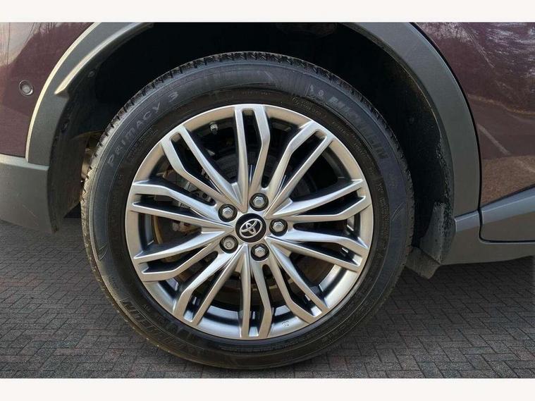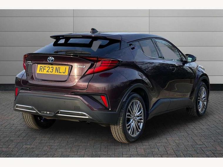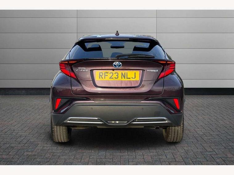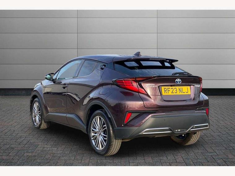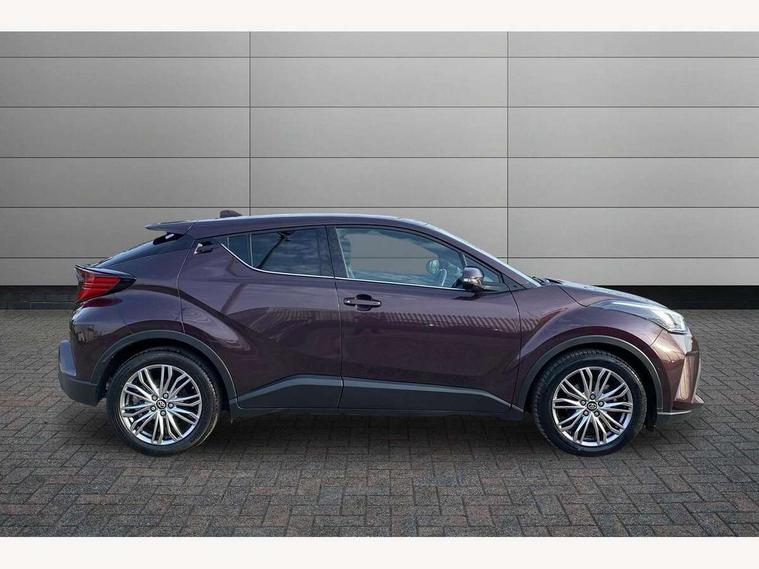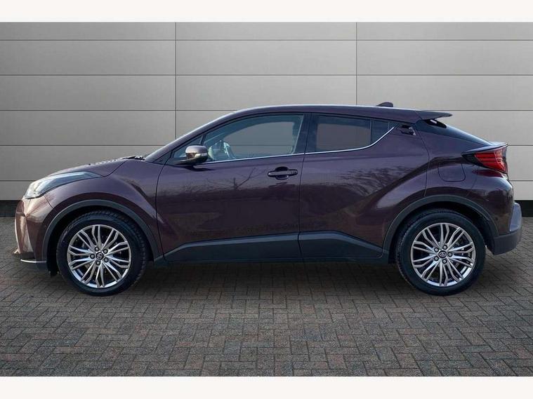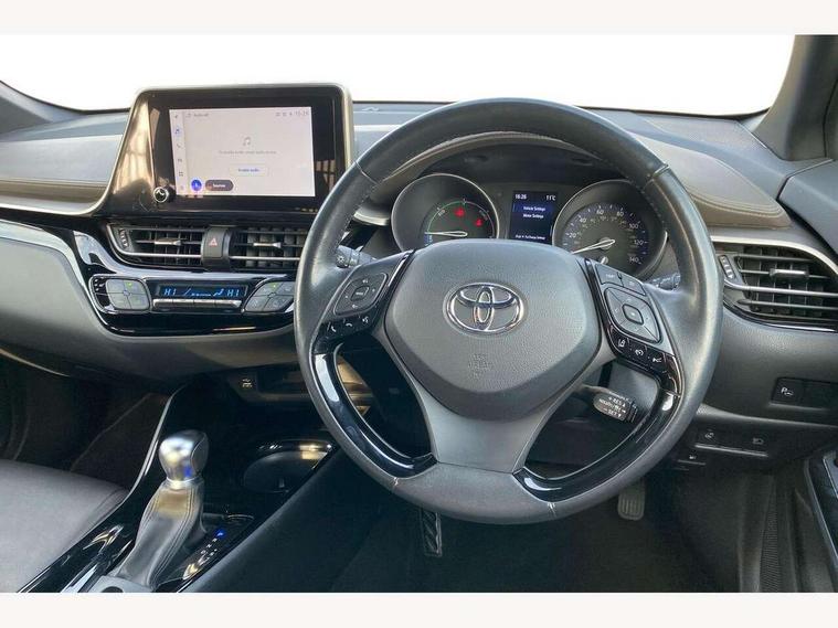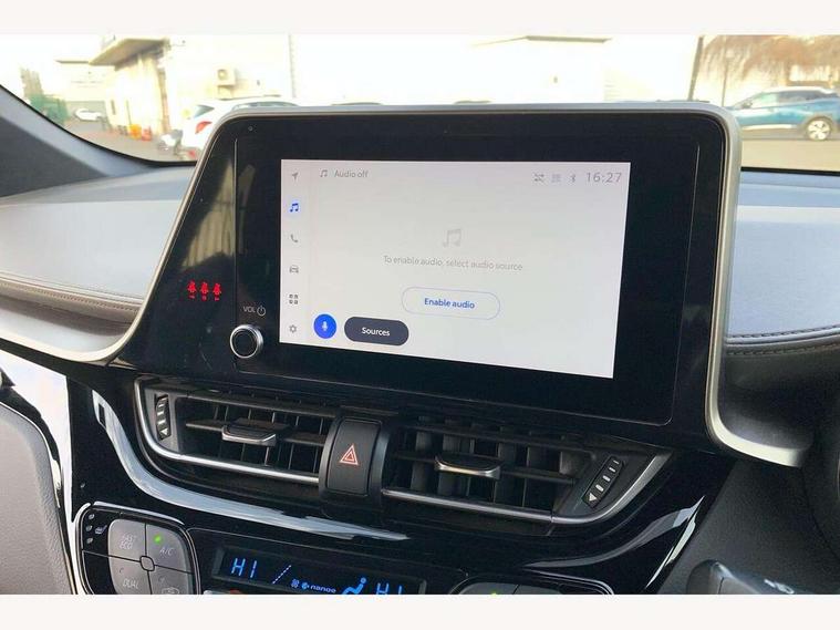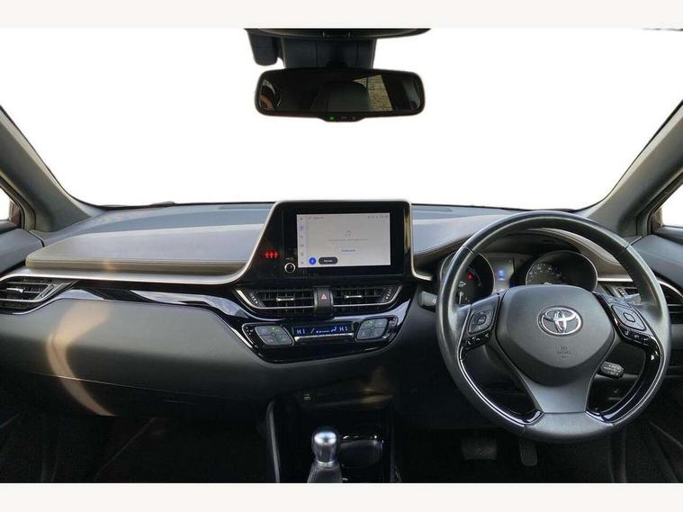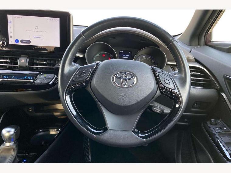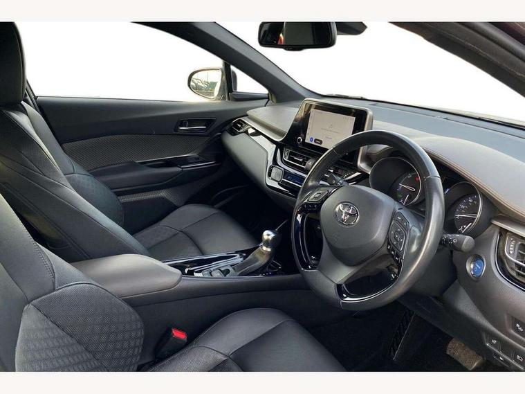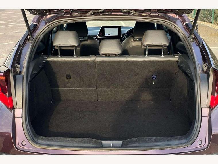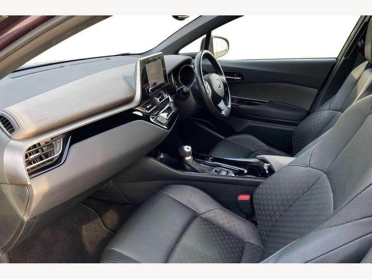 4.2" coloured TFT screen for multi-information display, Adaptive cruise control, Apple car play and Android auto, Bluetooth connectivity, E-call, Electric power steering, Hybrid system indicator, Lane departure alert with steering control, Lane trace assist, Push button tailgate release, Remote boot door release in cabin, Remote boot door release in key, Reversing camera, Road sign assist - RSA, Simple Intelligent parking assist, Smart voice assist, Touch 2 Go navigation system, Trip computer, Voice recognition, Wireless smartphone integration, Vehicle Stability Control (VSC), 6 speakers, AM/FM radio, DAB Radio (Digital Audio Broadcasting), Toyota touch 2 multimedia system with 8" display, USB connector, Wi-fi connectivity, Adaptive front light system, Adaptive LED Headlights, Anti-jam protection on power windows, Auto high beam, Auto up and down function on all power windows, Automatic headlight levelling, Automatic headlights, Automatic headlights cut-off, Black and body coloured rear bumper, Black lower front grille, Black upper front grille, Body colour door handles, Body colour door mirrors, Body colour front spoiler lip, Body coloured front bumper, Boot door release with push button, Electric heated door mirrors, Follow me home headlights, Front and rear power windows, Headlight cut off reminder, Honeycomb lower front grille, LED daytime running lights, LED fog lights, LED front light guide, LED High mounted stop light, LED rear brake lights, LED rear combination lights, Noise reduction layer on front windows and windscreen, Power adjustable door mirrors, Privacy glass, Rain sensor, Rear sequential indicators, Rear side wing doors, Rear spoiler, Rear tailgate, Rear window defogger, Rear window wiper, Shark fin antenna, UV-filter on driver and passenger windows, UV-filter on rear windows, Variable front intermittent wipers, 12v power outlet - front, 3 rear headrests, 3 seat bench in 2nd row, 3 spoke leather steering wheel, 60/40 split folding 2nd row rear seats, Adjustable rear headrests, Adjustable speed limiter switch on steering wheel, Assist grips front and centre pillar, Audio and telephone switches on steering wheel, Black front door assist grips, Blue ambient lighting on front cup holders, Blue ambient lighting on front doors, Boot light, Chrome interior door handles, Driver and front passenger personal light, Driver and front passenger Whiplash Injury Lessening seats, Driver and passenger seatback pockets, Dual zone automatic air conditioning, Floor mats, Front cupholders, Front head restraints, Front sports seats, Glovebox with internal light, Hard tonneau cover, Heated driver and front passenger seats, Heated steering wheel, Hooks for luggage holding net, Humidifying Nanoe air purifier, Illuminated entry system, Isofix attachments on outer rear seats, Leather gearshift, Leather wrapped steering wheel, Light on driver sun visor, Light on passenger sun visor, Manual telescopic steering wheel, Manual tilt steering wheel, Microphone on front personal light, Mirror on driver sun visor, Mirror on passenger sun visor, Multimedia switches on steering wheel, Pollen filter, Power adjustable lumbar support on driver seat, Power tilting cushion on driver seat, Shopping bag hooks, Single front passenger seat, Slow opening on lower glovebox, Voice recognition switch on steering wheel, Leather pack - C-HR, Tech with parking sensor pack - C-HR, 16 Disk front wheel brake, 3x3 point rear seatbelts, ABS+EBD+Brake assist, Electronic parking brake, Front and rear seatbelt reminder, Front passenger airbag on/off switch, Hill start assist control (HAC), Pre collision system with pedestrian detection, Pre-tensioners and force limiters, Rear door child safety locks, SRS Airbags - Driver + Front passenger, front side, front and rear curtain and driver's knee airbags, Toyota safety sense, Tyre pressure monitoring system, Tyre pressure warning system, Acoustic vehicle alert system (AVAS), Glass-breaking alarm sensors, Immobiliser, Intrusion alarm, Intrusion sensor, Motion sensor alarm, Power door locks, Power passenger window lock, Remote central locking, Black lower dashboard, Dark brown upper dashboard, Piano black console, Silver deco line on upper dashboard, Tyre repair kit,