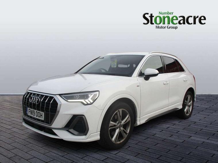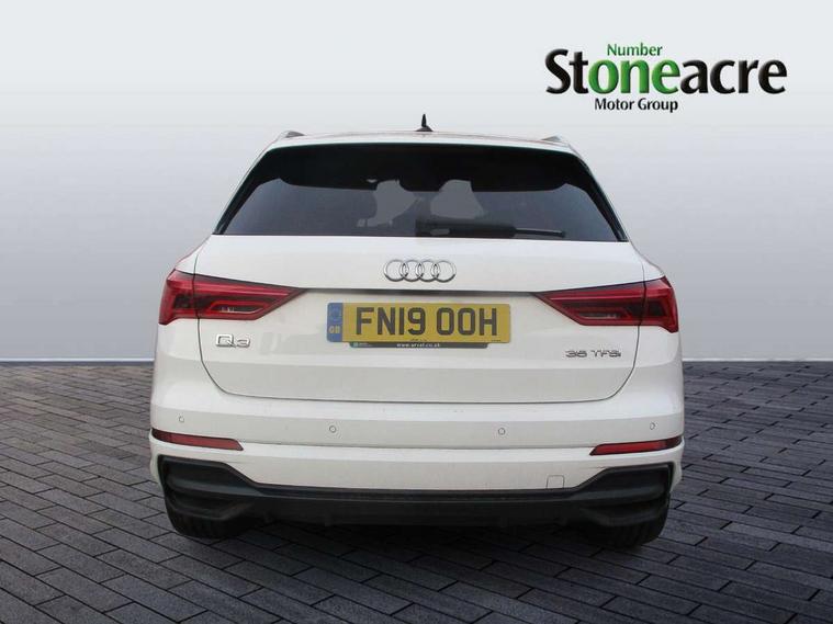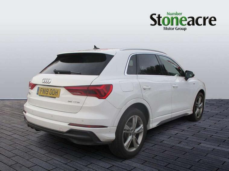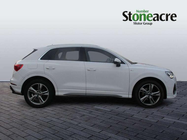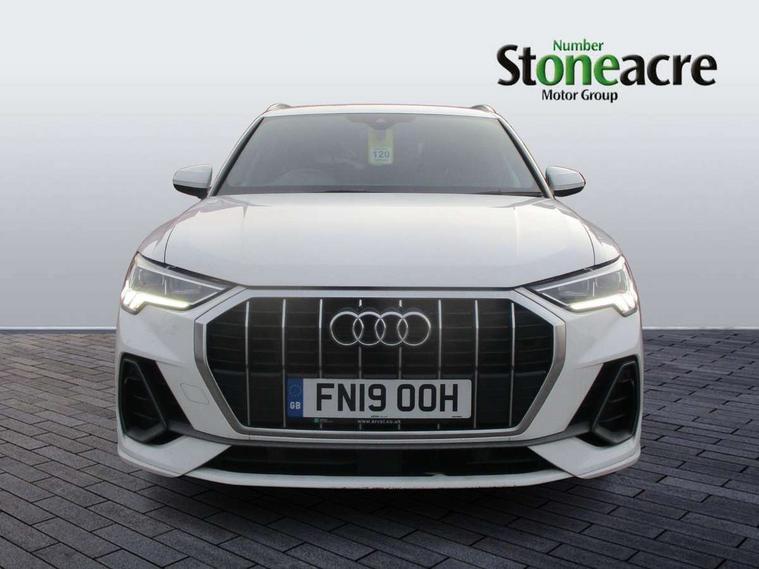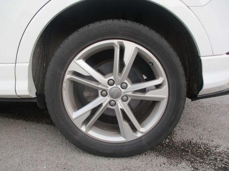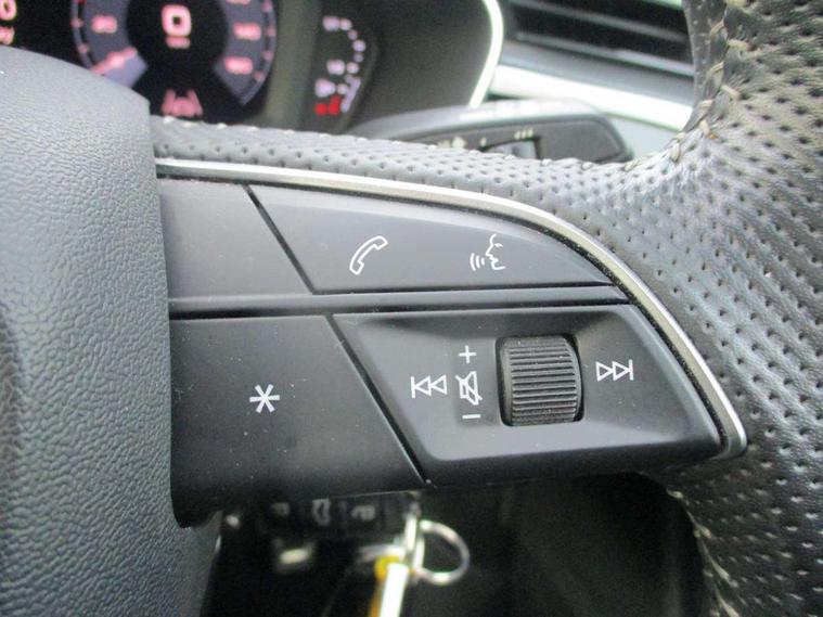 Audi connect safety and service (e-call), Audi drive select, Audi lane departure warning, Audi side assist, Audi smartphone interface, Audi Virtual Cockpit - 10.25" display, Bluetooth interface, MMI navigation plus with MMI touch, Power opening/closing tailgate, Progressive steering, Service interval indicator, Stop/start system, Voice control system, DAB digital radio module, Acoustic windscreen, Aluminium roof rails, Aluminium window trim, Auto dimming rear view mirror, Body colour door mirrors, Body coloured bumpers, Diffuser in matt Platinum grey, Electrically adjustable and heated door mirrors with integrated LED side indicators, Front and rear electric windows, Front fog lights, Front side air inlets in matt platinum grey, Front spoiler blade in matt platinum grey, Grille vertical bars in aluminium silver/Matt, High gloss black finish B and C pillars, Privacy glass, Rain and light sensors, Rear diffuser strip in selenite silver, S Line badge on wings, S Line front and rear bumpers, Side skirt insert in matt Platinium grey, Titanium black radiator grille, 12V socket in rear centre console, 40:20:40 split folding rear bench seat, Adjustable rear seat bench/backrest with centre armrest and cupholder, Aluminium door sill trims, Black cloth headlining, Dual zone climate control, Front and rear black floor mats with contrast stitching in rock grey, Front and rear headrests, Front centre armrest with storage compartment and angle adjustment, Illuminated door sill trims with S logo, ISOFIX child seat mounting and Top Tether with front passenger airbag deactivation, Perforated leather gearknob, Stainless steel luggage compartment sill finisher, Stainless steel pedals, Non smoking pack - Q3, 3x3 point rear seatbelts, 6 airbags - Driver, front passenger, curtain and side windows, Audi pre-sense front with pedestrain and cyclist recognition, Electronic stabilisation control including ABS, ASR and EDL, Hill hold assist, Pre sense basic, Seatbelt monitoring, Tyre pressure warning, Warning triangle and first aid kit, Anti theft alarm, Anti theft wheel bolts, Remote central locking, Dark matt brushed aluminium inlay, MMI touch colour display in gloss black with aluminium surround,