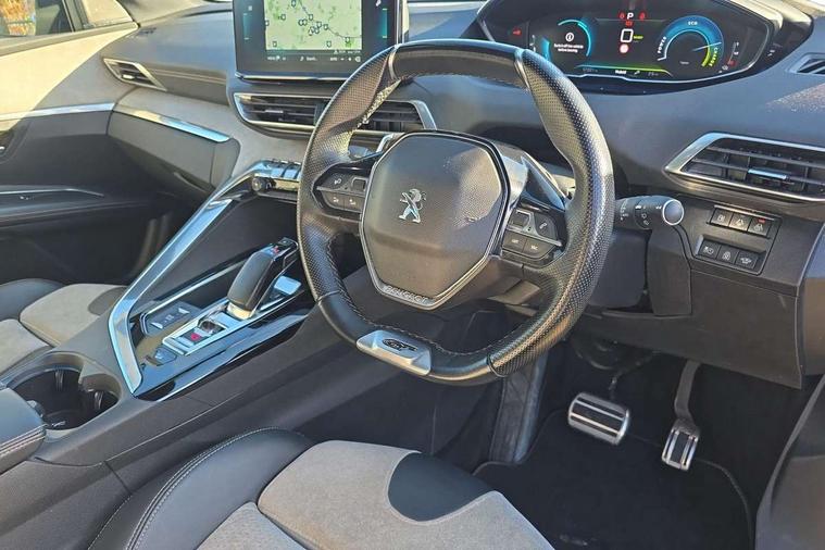 3D connected navigation with 10" HD touchscreen, Bluetooth telephone facility, Drive mode selector (Electric, Hybrid, Sport, 4WD) & Hill Assist Descent Control, Driving Time Warning (DAA1), Extended traffic sign recognition, Exterior temperature indicator with ice warning, Front parking sensors, Mirror screen with mirror link, apple carplay and android auto, Multi function trip computer, PEUGEOT i-Cockpit with 10" high definition capacitive touchscreen, Peugeot i-cockpit with compact multi-function sports steering wheel, PEUGEOT i-Cockpit with configurable 12.3" Head-up digital instrument panel, PEUGEOT SOS and assistance, Rear parking aid, Rear passenger USB charging sockets (x2) (type A), Speed limit recognition and recommendation, Voice recognition, Deferred charging option, configurable in car or via My PEUGEOT App, Dynamic stability control and electronic anti-skid system, Mode 3 type 2 cable for wallbox charging, 6 speakers radio with mp3 compatible, DAB Digital radio, USB socket, Auto self levelling headlights, Automatic hazard light activation upon heavy brake application, Automatic triggered rear windscreen wiper in reverse gear, Black with chrome detailed front wing trim, Body colour door handles, Body colour rear roof spoiler with stainless steel edging trim, Body protectors (bottom of front and rear bumpers + wheel arches + protection at bottom of doors) in black, Dark tinted rear side windows + tailgate window, Diamond Black door mirror shells, Door mirror mounted LED courtesy floor lighting, Electric folding door mirrors with exterior courtesy LED lighting, Electric operated/heated door mirrors, Fog Mode, Front windscreen wiper with magic wash cleaning system, Full LED headlights with LED fog lights with static cornering function, Gloss black B and C pillar and aerodynamic deflector trim, Gloss black front bumper air scoops, Gloss black rear cluster connecting strip, Gloss black windscreen trim, Headlights left on audible warning, Heated rear windscreen with integrated antenna, HYBRID4 emblem on front wings and tailgate, LED daytime running lights, LED front indicator, LED rear number plate lighting, LED side indicator lights integrated into door mirrors, LED third brake light, One touch electric front/rear windows with pinch protection, Rear LED Peugeot signature 'Claw Effect' lights, Rear side wing doors, Stainless steel roof arches, Twin exhaust tailpipe, 1/3 to 2/3 split folding rear seats, 12V Sockets in dashboard, rear cabin and load area, 2 cupholders in front centre console, 2 cupholders in rear armrest, 2 x Rear reading spotlights, 2x Rear coat hooks, 3x Isofix child seat fittings in the front passenger and outer rear seats, 4 Grab handles retractable and damped, Aikinite stitching in armrest, gear lever and dashboard facia, Aluminium pedals, Blue ambient lighting for connecting zone, Blue ambient lighting to front door panels, central storage and cupholders, Blue ambient lighting to headup instrument panel, Cabin pre-conditioning, Centre front armrest with butterfly wing opening and illuminated storage compartment, Driver seat manual adjustment (longitudinal and back rest angle), Dual zone automatic climate control, Electric power steering with reach and rake adjustable steering column, Fixed boot floor with access to the charging cable storage box, Flocked front door pocket interior with blue ambient lighting, Flocked glovebox interior, Foldable front passenger seat with picnic table, Footwell illumination, Front interior light with 2 reading spotlights and rear interior light with timer, Front passenger seat manual adjustment (longitudinal and back rest angle), Front seat back map pockets, Gear shift indicator, Illuminated glovebox, Individual left and right controls in boot for seat folding, LED interior lighting in storage spaces and load area, LED roof interior lighting, Mistral floor mats with Aikinite contrast stitching, Mistral full grain perforated leather steering wheel with aikinite stitch detail and satin chrome 'GT' emblem, Rear bench seat with central armrest and ski hatch, Rear centre console ventilation system, Roof lining - Mistral black, Satin chrome dashboard trim, Satin chrome digital instrument panel and touchscreen trim, Satin chrome front door panel recess trim, Satin chrome interior door handles, Satin chrome scorpion's tail and toggle switch trim, Seatbelt not fastened audible and visual alert for front seats, Seatbelt unfastened on the move audible and visual alert for front and rear seats, Sunvisors with illuminated vanity mirrors, Drive assist plus pack - 3008, Driver sport pack - 3008 Auto, Safety plus pack - 3008 hybrid, Visibility pack - 3008 PHEV, 3x Rear three-point retractable seatbelts with force limiters in the outer rear seats, ABS (Anti-lock Braking System) with EBD (Electronic Brakeforce Distribution) and EBA (Emergency Braking Assistance), Acoustic vehicle alerting system, Adaptive driver and front passenger airbags with passenger airbag deactivation function, Driver and front passenger side airbags, Electric child locking functionality on rear windows and doors, Electric parking brake, Front and rear curtain airbags, Front optimised safety headrests and 3 x rear retractable headrests with height adjustable, Front three point retractable seatbelts with pre tensioners and force limiters, Front ventilated disc brakes and rear disc brakes, Hill start assist, Two tone horn, Automatic door locking when moving off, Electronic immobiliser, key operated exterior door lock from the left hand door, Perimetric and volumetric alarm with lift and tilt sensor, Peugeot Open and Go System, Remote control central locking with two plip keys, Puncture repair kit including compressor, sealant cartridge and towing eye,