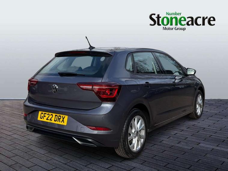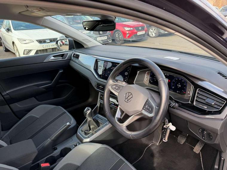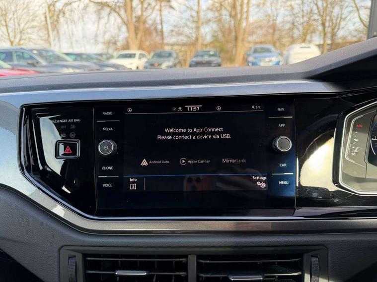 Adaptive cruise control without follow-to-stop and speed limiter, Bluetooth mobile phone interface, Digital Cockpit Pro with 10.25" Display, Driver alert system, Dynamic road sign display, Emergency call service, Power assisted speed sensitive steering, Preparation for We connect and We connect plus, Speedo and rev counter, electronic odometer, trip, service interval display and fuel gauge, Standard rear axle, Travel Assist - Lane keeping system and traffic jam assist, Travel assist including emergency assist, Trip computer, Warning signal and warning light for front and rear seatbelts not fastened, Washer fluid level indicator, Wireless app connect, Front wheel drive, Rear shock absorpion, Start-stop system with battery regeneration (recuperation - energy recovery during braking), DAB Digital radio, Diversity antenna for FM reception, Front and rear 6 speakers, Automatic dimming interior rear view mirror, Automatic headlights, Body colour door handles, Body coloured bumpers and radiator grille with chrome trims, Chrome plated radiator grille inserts, air vent surrounds and light switch surrounds, Electric front windows, Heat insulating glass in side and rear windows, Heat insulating glass windscreen, LED separate daytime running lights with coming/leaving home function, Power folding adjustable/heated exterior mirrors and front passenger exterior mirror lowering function, Rain sensor, Rear electric windows, Rear fog light, Rear side wing doors, Rear windscreen washer and wiper with interval delay, Third brake light, 12V power socket in centre console, 2 USB-C ports in the front, 2 USB-C charging sockets on the center console in the rear, 3 rear head restraints, 60/40 split folding rear seat and rear seat bench not split, Air care climatronic air conditoning system with active combination filter and 2-zone temperature control, Ambient lighting, Ceramique headliner, Door and side trim panel, Driver and front passenger seat height adjustment, Driver/passenger sunvisors with illuminated vanity mirrors, Front + rear carpet mats, Front centre armrest, Front footwell illumination, Front seat backrest storage pockets, Front sports comfort seats, Handbrake lever handle in leather, Isofix child seat preparation easy-fit (for two outer rear seats, and front passenger seat) compatible with I-size, Leather trimmed gear knob, LED interior light with switch off delay and dimmer, 2 reading lights front and rear, Luggage compartment cover, Luggage compartment floor, Luggage compartment lighting, Lumbar adjustment for front seats, Multifunction steering wheel, Single front passenger seat, Standard pedal cluster, IQ LED matrix headlights pack - Polo, Light and vision pack - Polo, 3 point height adj front seatbelts + pretensioners, 3x3 point rear seatbelts, ABS, Driver and front passenger airbag with front passenger airbag deactivation, Drivers and front passengers safety optimised head restraints, ESC (Electronic stability control) + EDL (Electronic Differntial lock) and ASR (Traction control), Extended and predictive pedestrian/ cyclist protection, Front curtain and side airbags with center airbag, Front disc brakes, Hill hold control, Manual child lock in rear doors, Rear drum brakes, Single tone horn, Tyre pressure loss indicator, Alarm with interior protection, Anti-theft alarm system with interior monitoring, backup horn, and towing protection, Anti-theft wheel bolts, Electronic engine immobiliser, Chrome applications on rotary light, mirror adjustment, window regulator switches, outlet with frame in black, Deep iron gloss decorative inserts in dash and front door panels, Low rolling resistance tyres,