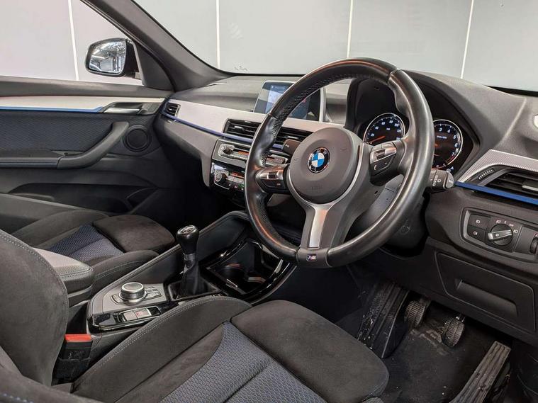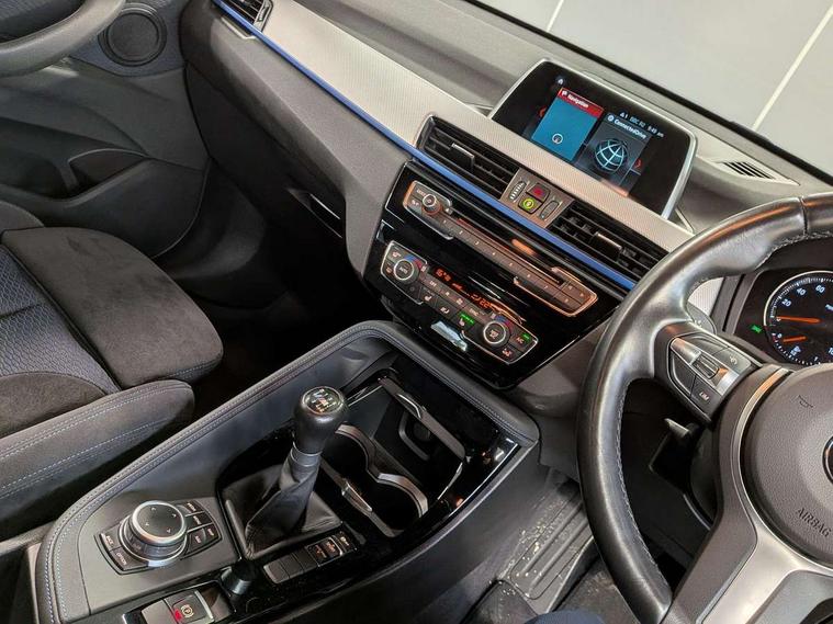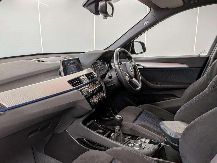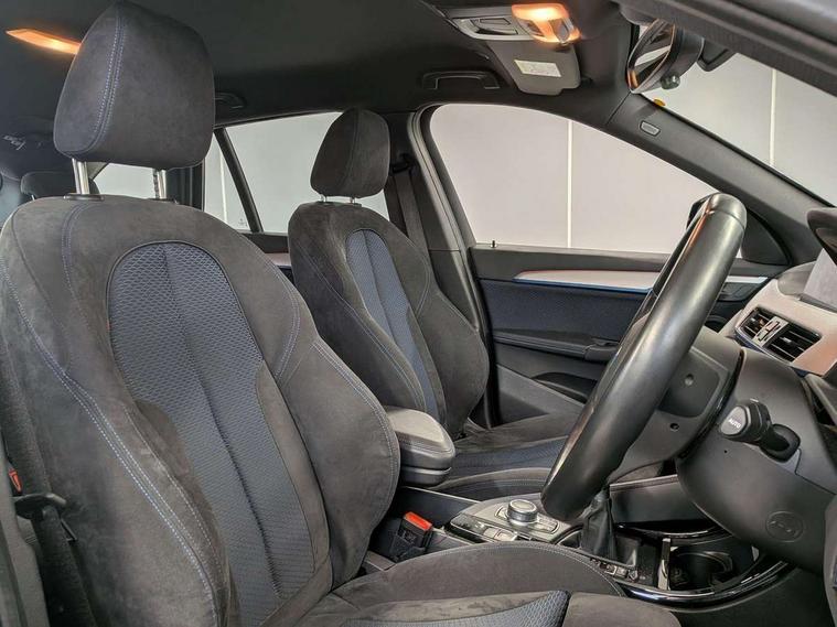 Active Guard incl speed limiting and lane departure functions with auto steering, and front collision warning with brake intervention, Ambient temperature display, Attentiveness assist, Automatic tailgate opening, BMW Online services, BMW remote services, BMW Teleservices, Brake pad wear indicator in front and rear, Cruise control with brake assist, Instrument cluster with speedometer with miles per hour read out, tachometer and fuel gauge, Lights on warning by audio warning signal when ignition is switched off, On board computer, Outside temperature gauge, Personal Profile - automatic lock when driving away selectable, Real time traffic information, Service interval indicator, Speed limiter, Stop/start button, Tyre puncture warning system, 12V compressor with integrated sealant injection bottle and hose, Balancer shaft, Drive performance control with ECO PRO comfort + sport mode, Electronic differential lock, Performance Control, 2 USB Power socket for rear seat, BMW professional radio with CD player, DAB Digital radio, USB connection located in centre console, USB/audio interface, Adaptive LED Headlights, Adjustable headlights, Body colour bumpers, Body colour door handles, Body colour door mirrors, Clear lenses direction indicator lights, Direction indicator side lights integrated exterior mirrors, Dynamic brake lights, Electrically adjustable and heated door mirrors, Fingertip control / anti-trap function on electric window, Follow me home headlights, Front air inlets with black matt finisher and silver matt highlight, Front and rear electric windows, Front fog lights, Halogen headlights, Headlight beam throw control, Heat insulating tinted glass, Heated windscreen washer jets, High level third brake light, kidney grille with high gloss black vertical slats, LED daytime running lights, Lightweight engineering, M aerodynamic body styling, M door entry sills, M logo designation in side chrome, Rain sensor including auto headlights activation, Rear fog lights, Rear window aerial, Rear window wash/wipe, Reversing light in rear light cluster, Shark fin antenna, Sill cover in silver matt insert, Twin chrome exhaust tailpipes x2, Visible VIN plate, Welcome home function, 12v power point in centre console, 3 rear headrests, 3 spoke sport nappa leather steering wheel, 4 grab handles, Anthracite headlining, Boot light, Centre console with cupholders, Child seat ISOFIX attachment for two outer rear seats and front passenger seat with anchorage points, Driver and front passenger heated seats, Driver/passenger sunvisors with ticket holders, Drivers folding storage compartment, Dual zone automatic air conditioning, Extended storage, Front and rear door armrests, Front centre armrest/sliding cover, Front sports seats, Front/rear adjustable head restraints, Gearshift lever with M designation, Illuminated glovebox, Leather gearknob/gaiter/handbrake grip, LED ambient lighting in door trim, Luggage area underfloor compartment, Luggage compartment lighting, Luggage compartment loading edge with stainless steel insert, Multifunction steering wheel, Rake/reach adjustable steering wheel, Rear coded belt buckles, Sliding/split/reclining 40/20/40 rear seat with 60/40 split rear seat base, Velour floor carpets, Extended storage package - X1, 3 rear 3 point seatbelts, ABS/EBD, Audio/visual collision warning system, Automatic Stability Control (ASC), Battery safety cut-off, BMW emergency call, Brake drying, Brake energy regeneration, Braking readiness, Collision mitigation braking system, Cornering brake control (CBC), Crash Sensor - activates hazard/interior lighting + unlocks doors, Driver/Front Passenger airbags, Driver/front passenger side airbags, Dynamic brake control, Dynamic stability control + (DSC+), Dynamic Traction Control - DTC, Electronic parking brake, Front and rear head airbags, Front passenger airbag deactivation, Front seatbelt force limiters, Front ventilated disc brakes, Hill start assist, Pyrotechnically pre-tensioned front seatbelts, Rear disc brakes, Rear door child safety locks, Seatbelt warning, Side impact protection, Twin horns, Tyre pressure monitor, Warning triangle and first aid kit, Auto door lock when driving, Central locking including boot and fuel flap with deadlocks, Engine immobiliser, Locking wheel nuts, Remote control Thatcham category 1 alarm, Remote control with integrated key with M specific highlight, High gloss black centre console, Low rolling resistance tyres,