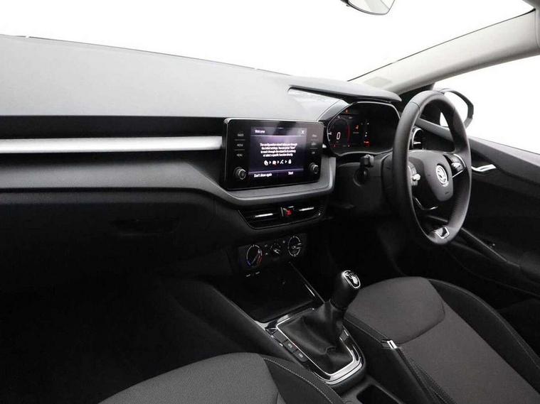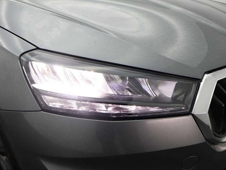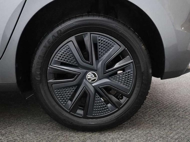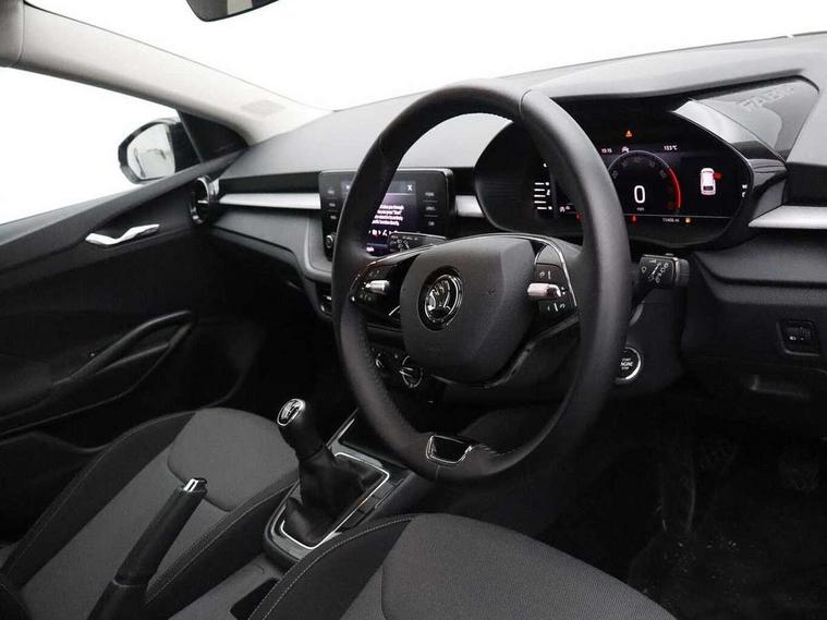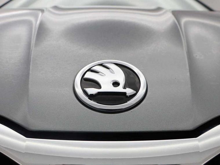 Bluetooth connection, Driver alert system - DAS, Electromechanical power steering, Exterior temperature gauge, Lane assist including road edge detection, Service interval indicator, Virtual cockpit with 10.25" colour display, 2x USB-C in the front (for data transmission and charging), 6 Speakers (4 in front and 2 in rear), Auxiliary socket for external MP3 player, Bolero radio with 8" colour display, DAB digital radio reception, Basic LED Headlights, Body coloured bumpers, Dimming rear view mirror with black frame, Door mirror integrated indicators, Electrically adjustable and heated door mirrors, Electrically adjustable front windows with function auto up/down, Front fog lights, Front window wiper intermittent control, Headlight range control - Automatic, Ice scraper in fuel cap, LED daytime running lights with coming and leaving home feature, Mechanical adjustable rear windows, Privacy glass, Rain sensor, Rear LED fog light, Rear side wing doors, Rear window wiper with washing nozzles, Roof mounted spoiler, SKODA tailgate lettering in chrome, Third brake light, 2 reading lights in front and 2 reading lights in rear, 3 rear headrests, Backrest split and folding, Central console with fixed cup holder and storage box, Chrome handbrake release button, Fabric upholstery, Gearshift knob/handle in leather, Grain satin black interior door handles, Hand brake lever handle in leather, Height adjustable drivers seat, Height adjustable front headrests, Height adjustable steering wheel, ISOFIX and TopTether anchorage points to the outer rear seats, ISOFIX and TopTether on the front passenger seat, Luggage compartment lighting, Pollen filter, Rear seat bench unsplit, Single front passenger seat, Storm grey headlining, Sun visors with mirror and airbag label on passenger side, Ticket holder, Umbrella in drivers door, 3-point height adjustable front seats belts with pretensioner and force limiter, Automatic warning lights in case of crash, Driver and passengers airbag with switch off function, e-Call+, ESC including ABS, MSR, ASR, EDS, HBA and XDS, Front and rear seat belt warning, FRONT ASSIST (AEB City and AEB Inter Urban), Front side airbags, Head airbags, One tone horn, Pedestrian protection, Three rear 3-points safety seat belts with pretensioner and force limiter including stop function for outer rear seat belts, Tyre pressure monitoring system, Anti-theft alarm system including immobiliser, interior monitoring, backup horn, and towing protection, Central locking with radio remote control, interior controls, SAFE function and 2 foldable keys, KESSY - Keyless engine start/stop, Anodized cross line upper decorative trim, Colour Edition air vents, Grain satin black central console cover, Grain satin black lower decorative trim, Satin black door and side trim panel in front, Anti-theft wheel bolts protection, Super-low rolling resistance tyres,