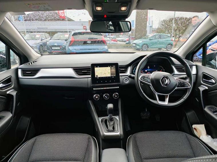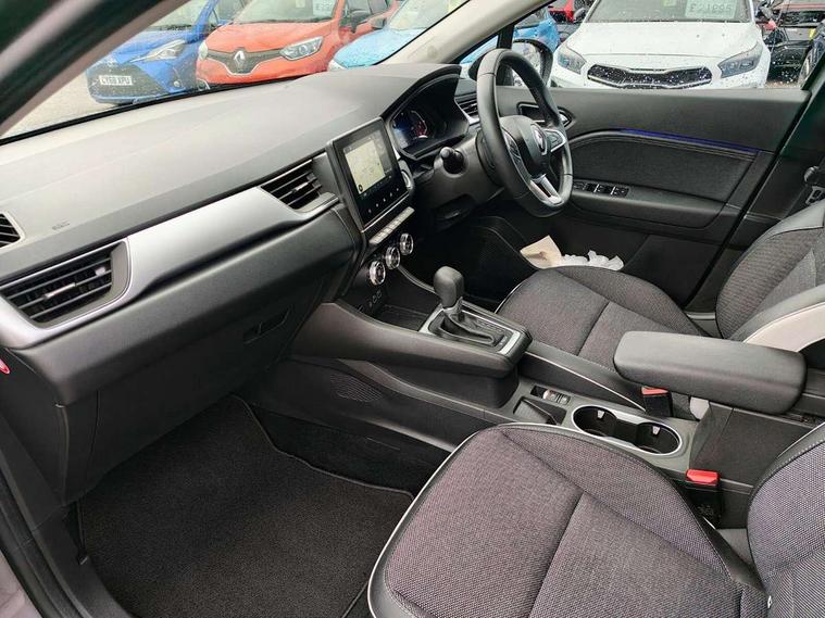 7" TFT Driver information display, Cruise control + speed limiter, EasyLink 7" touchscreen with navigation, google search and traffic information, Eco mode, EV button to activate pure mode, Front and rear parking distance sensors, Gear change indicator, Lane departure warning system, Lane keep assist, Multisense with 3 driving modes + 8 ambient lighting colours, Rear view camera, Renault automatic emergency assist, Smartphone integration compatible with Apple CarPlay and Android Auto, Traffic sign recognition with over speed prevention, Trip computer, Variable assistance power steering, DAB Radio with Bluetooth and USB, 2 reverse gear LED lamps and 1 rear LED fog lamp in the bumper, Auto dimming rear view mirror, Automatic front wipers with rain sensors, Automatic headlights, Automatic high/low beam, Black side door protection with chrome effect, Body colour door handles, Body coloured bumpers, Body coloured door mirrors, C Shaped LED front and rear lighting signatures with 3D effect on the rear lights, Chrome around front air deflectors, on front wing deco element and window lining, Day time running light, Drivers one touch window with anti-pinch feature, Extra tinted glass in rear windows and tailgate, Front and rear electric windows, Front grille with chrome upper trim, Full LED headlights with LED rear lights, Grey front and rear skid plate, LED high level brake lights, LED rear fog lights, LED turn indicators on door mirrors, Longitudinal roof bars, Rear side wing doors, Rear wiper, Shark fin antenna, 12V Accessory socket, 60/40 split and fixed base rear seat bench, Automatic climate control with one touch demist function and air quality regulator, Central rear LED rooflight with 3 reading lights, Front head restraints, Glovebox, Heating system with pollen filter, Height adjustable driver's seat, Height adjustable passenger seat, Height/reach adjust steering wheel, ISOFIX child seat fixing points on rear outermost seats, LED front roof lights, Middle console with armrest and storage, Modular boot floor, Rear air vents, Rear head restraints, Single front passenger seat, Sliding rear bench, Synthetic leather steering wheel, Synthetic leather/cloth upholstery, 3 rear seatbelts, ABS+EBA, AEBS - active emergency braking system, B Brake Mode - One pedal driving with increased regenerative braking, Distance warning alert, Driver and front passenger and 3 rear passengers seatbelt reminder, Driver and front passenger, side, head and curtain airbags, Driver height adjustable seat belt, Electric parking brake with auto hold function, Electronic stability control, Front dash warning indicator in case of heavy braking, Front driver and passenger side airbag deactivation, Hill start assist, Manual passenger airbag deactivation function, Rear door and window child locking function for rear door, Tyre pressure warning light, Anti drill door locks and locking fuel cap, Central door locking, Deadlocking system, Hands free keycard with push button and start/stop function, RAID (Renault Anti-Intruder Device) automatic door locking, Black soft touch dashboard, 18" Pasadena diamond cut alloy wheels with grey inserts,