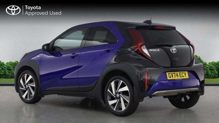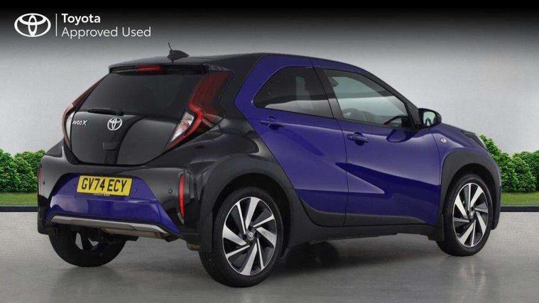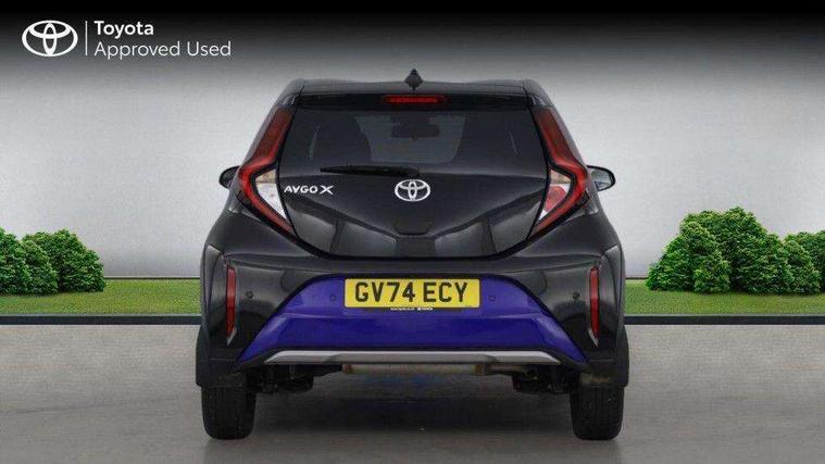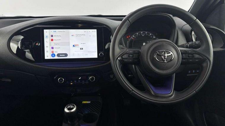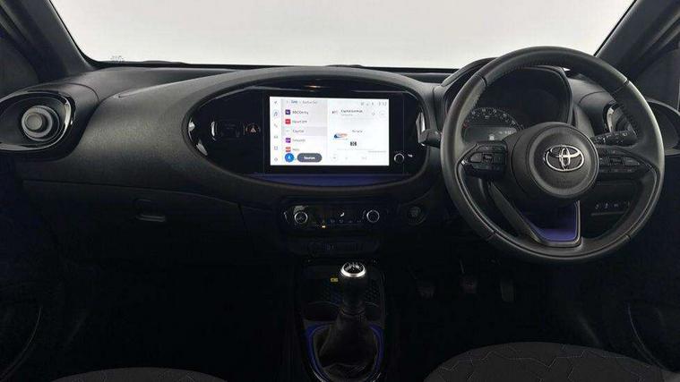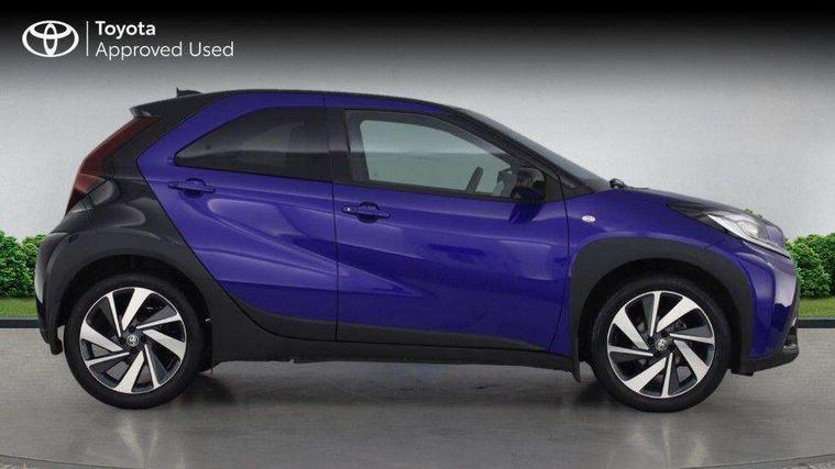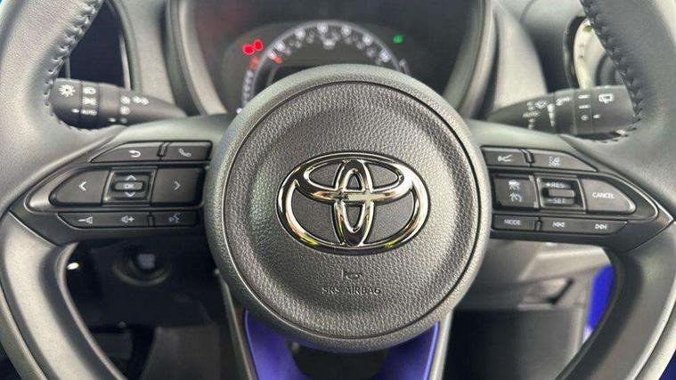 4.2" TFT colour screen, Adjustable speed limiter, Analogue speedometer, Bluetooth connectivity, Digital tachograph, Driver attention alert system, eCall emergency call system, Electric power steering, Front and rear parking sensors with auto brake, Intersection turn assist, Key reminder warning, Noise reduction kit, Pre collision system with emergency steering assist, Remote boot door release on key, Reversing camera with static guide lines, Smart entry and push button start, Smart phone integration with Apple car play/Android Auto, Speed limit display, Start and stop, Wireless charger, Vehicle Stability Control (VSC), 10.5" HD multimedia display touch screen with Toyota smart connect, 4 speakers, DAB digital audio broadcast, USB connector, Auto headlights, Auto wipers, Automatic headlights cut-off, Automatic high beam On/Off switch, Bicycle towing hook, Black contrast roof, Black fog light surrounds, Black side protection mouldings, Black wheel arch mouldings, Body colour door handles, Body coloured front bumper, Boot door scuff plate, Eclipse black rear bumper, Electric heated door mirrors, Follow me home headlights, Front and rear underruns in silver, Front fog lights, Front power windows, Gloss black door mirrors, Gloss black upper front grille, Headlight cut-off reminder, LED daytime running lights guide, LED front light guide, LED High mounted stop lamp, LED projector headlights, Manual day/night rear view mirror, Manual headlight levelling, Pagoda roof, Power adjustable door mirrors, Power back door, Privacy glass, Rain sensor, Rear combination lights LED bulb type, Rear side wing doors, Rear windscreen defogger, Rear windscreen wiper, Remote hazard lights system, Short antenna, Variable intermittent windscreen wipers, 12v power outlet - front, 2 seat bench in 2nd row, 3 spoke leather steering wheel, 50/50 split folding rear seat, Adhesive roof headlining, Adjustable speed limiter switch on steering wheel, Audio and telephone switches on steering wheel, Auto air conditioning, Black roof lining, Body colour satin anodised insert on steering wheel, Boot light, Centre room light, Chrome interior door handles, Chrome surround on air conditioning buttons, Clean air filter, Console box storage, Floor mats, Front and rear cup holders, Front head rest deco art, Front head restraints, Height adjustable driver seat, Intelligent adaptive cruise control switch on steering wheel, ISOFIX child restraint system on rear seats, Lane departure alert switch on steering wheel, Leather gearshift knob, Light blue ambient lighting in centre console, Manual tilt steering wheel, Manually reclining and sliding driver seat, Manually reclining and sliding front passenger seat, Multimedia switches on steering wheel, Partial synthetic leather upholstery, Pollen filter, Rear door pockets, Rear head restraints, Satin silver insert on gear shift knob, Single compartment glovebox with lights, Single front passenger seat, Soft tonneau cover, Sun visors with mirror on driver and passenger side, Voice recognition switch on steering wheel, Toyota safety sense pack - Aygo X, Anti lock braking system + Electronic brake force distribution, Child safety door lock, Emergency brake light signal (EBS), Hill start assist control (HAC), Passenger airbag on/off switch, Seat belt reminder for front and rear seats, Supplement restraints system (SRS) - 6 airbags, Traction control, Tyre pressure warning system, Immobiliser, Remote power door locks, Black wheel centre caps, Tyre repair kit,