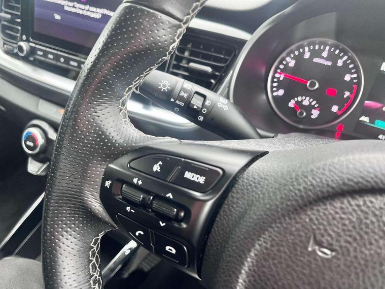 4.2" supervision colour cluster display, 8" touchscreen navigation, Apple car play/Android Auto with voice control, Cruise control + speed limiter, Drive mode selector, Electric power steering, Emergency call service, Emergency stop signalling system, External temperature display, Forward Collision-Avoidance Assist (FCA) - City/Pedestrian/Cyclist, Kia connected services featuring TomTom live, Lane keeping assist system (LKAS), Driver attention warning (DAW) and High beam assist (HBA), Rear parking sensor, Reversing camera system, Trip computer, UVO connect, Intelligent Stop and Go, Audio system with 6 speakers, Bluetooth with music streaming, Front USB port, Rear USB port, Steering wheel mounted controls, 3rd brake light, Aero blade type windshield wipers, All round electric windows with drivers auto up/down function, Auto dimming rear view mirror, Auto headlights, Automatic defog system, Automatic headlights control, Bi-function projection headlights with static bending, Black side sill, door garnish and wheel arch trims, Black/body colour bumpers, Body coloured exterior door handles, Chrome side window trim, Electrically adjustable/heated/folding door mirrors with LED indicators, Front and rear silver skid plates, Front fog lights, Halogen headlights, Headlight levelling device, Heated rear window, High gloss black and satin radiator grille, LED daytime running lights, LED position light, LED rear combination lights, Privacy glass - Rear windows and tailgate, Rain sensing front wipers, Rear fog lights, Rear side wing doors, Rear wash/wipe, Roof coloured door mirrors with matt black lower housing, Roof coloured rear spoiler with high mounted braking light, Roof rails, Shark fin antenna, Speed variable front wipers, Tinted glass, Welcome and follow-me home light functionality, Windscreen Washer Level Warning, 12V power point front, 3 seat bench in 2nd row, 60/40 split folding rear seat, Air filter, All-round height adjustable headrests, Automatic air conditioning, Centre armrest storage box, Centre console with cupholders, Cloth/faux leather upholstery with grey accents, D-Cut perforated leather trimmed steering wheel, Dash illumination dimmer switch, Driver's seat height adjuster, Dual Height Luggage Area Floor, Front and centre cabin lights, Front and rear door map pockets with bottle holder, Gear shift indicator, Glovebox illumination, ISOFIX Child seat top tethers and anchor fixings outer rear seats, Leather trimmed gearshift, Luggage area light, Luggage area parcel shelf, Luggage net hooks, Overhead console lamp, Overhead console with sunglasses cases, Passenger front seatback pockets, Satin chrome interior door handles, Single front passenger seat, Sunvisors with vanity mirror illumination (Driver and front passenger), Tilt/telescopic adjustable steering wheel, ABS with Electronic Brakeforce Distribution (EBD) and Brake Assist System (BAS), All round 3-point seatbelts, Electronic stability control (ESC) and vehicle stability management (VSM), Front passenger airbag cut-off switch, Front seatbelt pretensioners + load limiters, Height adjustable front seatbelts, Hill start assist control (HAC), Impact sensing auto door unlocking, Manual child lock in rear doors, Rear seat Occupancy alert, Seatbelt reminder warning, Twin curtain airbags, Twin front airbags, Twin front side airbags, Tyre pressure monitoring system, Alarm system, Door deadlocks, Engine immobiliser, Locking wheel nuts, Smart key with engine start/stop button, Speed sensitive auto door locking, Visible vehicle identification number, High gloss black centre fascia, 17" alloy wheels, Tyre mobility kit,
