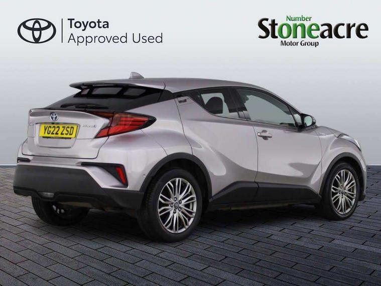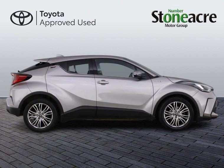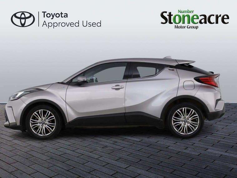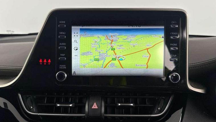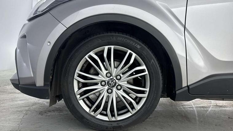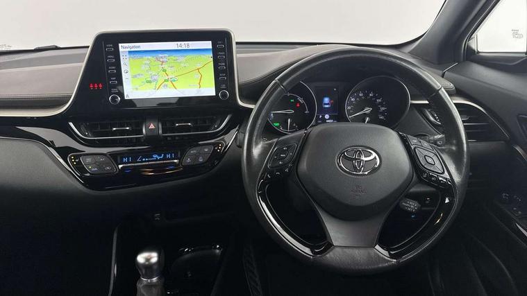 4.2" coloured TFT screen for multi-information display, Adaptive cruise control, Bluetooth connectivity, E-call, Electric power steering, Hybrid system indicator, Lane departure alert with steering control, Remote boot door release in cabin, Remote boot door release in key, Reversing camera, Road sign assist - RSA, Simple Intelligent parking assist, Touch 2 Go navigation system, Trip computer, Voice recognition, Vehicle Stability Control (VSC), 6 speakers, AM/FM radio, DAB Radio (Digital Audio Broadcasting), Toyota touch 2 multimedia system with 8" display, USB connector, Wi-fi connectivity, Adaptive front light system, Adaptive LED Headlights, Anti-jam protection on power windows, Auto high beam, Auto up and down function on all power windows, Automatic headlight levelling, Automatic headlights, Automatic headlights cut-off, Black and body coloured rear bumper, Black upper front grille, Body colour door handles, Body colour door mirrors, Body colour front spoiler lip, Body coloured front bumper, Boot door release with push button, Electric heated door mirrors, Follow me home headlights, Front and rear power windows, Honeycomb lower front grille, LED daytime running lights, LED fog lights, LED front light guide, LED High mounted stop light, LED rear brake lights, LED rear combination lights, Noise reduction layer on front windows and windscreen, Power adjustable door mirrors, Privacy glass, Rain sensor, Rear sequential indicators, Rear side wing doors, Rear spoiler, Rear tailgate, Rear window defogger, Rear window wiper, Shark fin antenna, UV-filter on driver and passenger windows, UV-filter on rear windows, 12v power outlet - front, 3 rear headrests, 3 seat bench in 2nd row, 3 spoke leather steering wheel, 60/40 split folding rear seat, Adjustable rear headrests, Adjustable speed limiter switch on steering wheel, Assist grips front and centre pillar, Audio and telephone switches on steering wheel, Black front door assist grips, Blue ambient lighting on front cup holders, Blue ambient lighting on front doors, Boot light, Chrome interior door handles, Driver and front passenger personal light, Driver and front passenger Whiplash Injury Lessening seats, Driver and passenger seatback pockets, Dual zone automatic air conditioning, Floor mats, Front cupholders, Front head restraints, Front sports seats, Glovebox with internal light, Hard tonneau cover, Heated driver and front passenger seats, Heated steering wheel, Hooks for luggage holding net, Humidifying Nanoe air purifier, Illuminated entry system, Isofix attachments on outer rear seats, Leather gearshift, Light on driver sun visor, Light on passenger sun visor, Manual telescopic steering wheel, Manual tilt steering wheel, Microphone on front personal light, Mirror on driver sun visor, Mirror on passenger sun visor, Multimedia switches on steering wheel, Pollen filter, Power adjustable lumbar support on driver seat, Power tilting cushion on driver seat, Shopping bag hooks, Single front passenger seat, Slow opening on lower glovebox, Voice recognition switch on steering wheel, Leather pack - C-HR, Tech with parking sensor pack - C-HR, 16 Disk front wheel brake, 3x3 point rear seatbelts, ABS+EBD+Brake assist, Electronic parking brake, Front and rear seatbelt reminder, Front passenger airbag on/off switch, Hill start assist control (HAC), Pre collision system with pedestrian detection, Pre-tensioners and force limiters, Rear door child safety locks, SRS Airbags - Driver + Front passenger, front side, front and rear curtain and driver's knee airbags, Toyota safety sense, Tyre pressure monitoring system, Acoustic vehicle alert system (AVAS), Glass-breaking alarm sensors, Immobiliser, Intrusion alarm, Intrusion sensor, Motion sensor alarm, Power door locks, Power passenger window lock, Remote central locking, Black lower dashboard, Dark brown upper dashboard, Piano black console, Silver deco line on upper dashboard, Tyre repair kit,