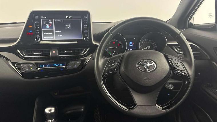 4.2" coloured TFT screen for multi-information display, Adaptive cruise control, Apple car play and Android auto, Bluetooth connectivity, E-call, Electric power steering, Hybrid system indicator, Lane departure alert with steering control, Lane trace assist, Push button start, Push button tailgate release, Remote boot door release in cabin, Remote boot door release in key, Reversing camera, Road sign assist - RSA, Smart voice assist, Trip computer, Voice recognition, Vehicle Stability Control (VSC), 6 speakers, AM/FM radio, DAB Radio (Digital Audio Broadcasting), Toyota touch 2 multimedia system with 8" display, USB connector, Wi-fi connectivity, Anti-jam protection on power windows, Auto high beam, Auto up and down function on all power windows, Automatic headlights, Automatic headlights cut-off, Black and body coloured rear bumper, Black lower front grille, Black upper front grille, Body colour door handles, Body colour door mirrors, Body colour front spoiler lip, Body coloured front bumper, Boot door release with push button, Electric heated door mirrors, Follow me home headlights, Front and rear power windows, Front fog lights, Headlight cut off reminder, Honeycomb lower front grille, LED daytime running lights, LED High mounted stop light, LED rear brake lights, LED rear combination lights, Manual headlight levelling, Manually retractable door mirrors, Noise reduction layer on front windows and windscreen, Power adjustable door mirrors, Rear side wing doors, Rear spoiler, Rear tailgate, Rear window defogger, Rear window wiper, Reflective LED headlights, Shark fin antenna, UV-filter on driver and passenger windows, UV-filter on rear windows, Variable front intermittent wipers, 12v power outlet - front, 3 rear headrests, 3 seat bench in 2nd row, 3 spoke leather steering wheel, 60/40 split folding 2nd row rear seats, Adjustable rear headrests, Adjustable speed limiter switch on steering wheel, Assist grips front and centre pillar, Audio and telephone switches on steering wheel, Black front door assist grips, Boot light, Chrome interior door handles, Cloth upholstery, Driver and front passenger personal light, Driver and front passenger Whiplash Injury Lessening seats, Dual zone automatic air conditioning, Floor mats, Front cupholders, Front head restraints, Front sports seats, Glovebox with internal light, Hard tonneau cover, Hooks for luggage holding net, Humidifying Nanoe air purifier, Illuminated entry system, Isofix attachments on outer rear seats, Leather gearshift, Light on driver sun visor, Light on passenger sun visor, Manual telescopic steering wheel, Manual tilt steering wheel, Manually adjustable lumbar support on driver seat, Manually height adjustable driver seat, Manually height adjustable front passenger seat, Manually reclining driver seat, Manually reclining front passenger seat, Manually sliding driver seat, Manually sliding front passenger seat, Microphone on front personal light, Mirror on driver sun visor, Mirror on passenger sun visor, Multimedia switches on steering wheel, Pollen filter, Shopping bag hooks, Single front passenger seat, Slow opening on lower glovebox, Voice recognition switch on steering wheel, 16 Disk front wheel brake, 3x3 point rear seatbelts, ABS+EBD+Brake assist, Electronic parking brake, Front and rear seatbelt reminder, Front passenger airbag on/off switch, Hill start assist control (HAC), Pre collision system with pedestrian detection, Pre-tensioners and force limiters, Rear door child safety locks, SRS Airbags - Driver + Front passenger, front side, front and rear curtain and driver's knee airbags, Toyota safety sense, Tyre pressure monitoring system, Tyre pressure warning system, Acoustic vehicle alert system (AVAS), Glass-breaking alarm sensors, Immobiliser, Intrusion alarm, Intrusion sensor, Motion sensor alarm, Power door locks, Power passenger window lock, Remote central locking, Black lower dashboard, Black upper dashboard, Grey deco line on upper dashboard, Matte black centre console, Tyre repair kit,