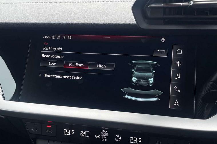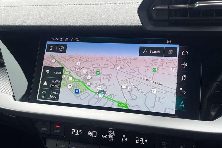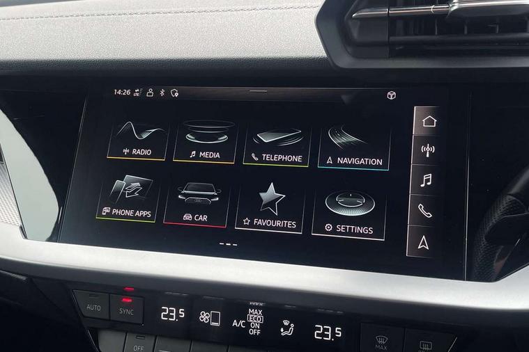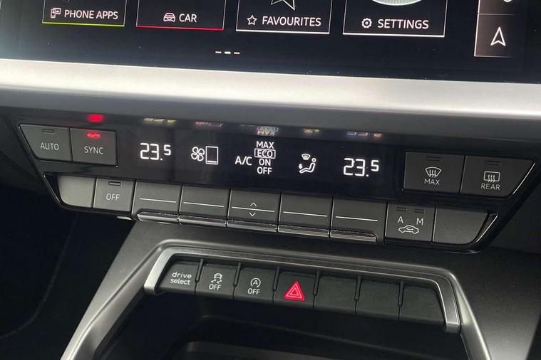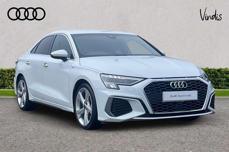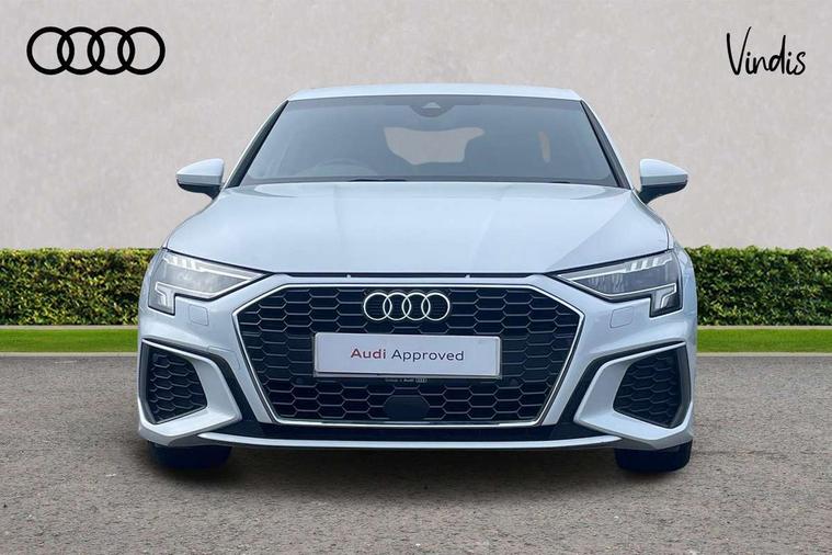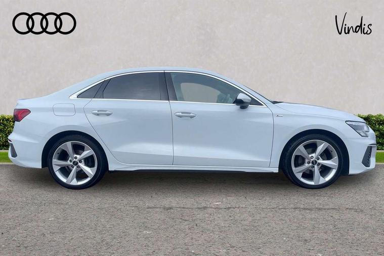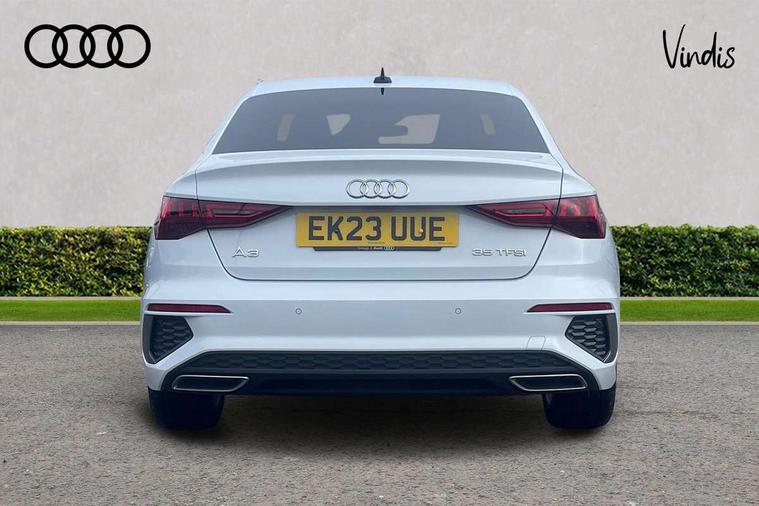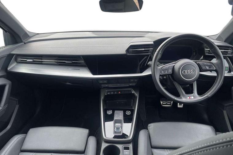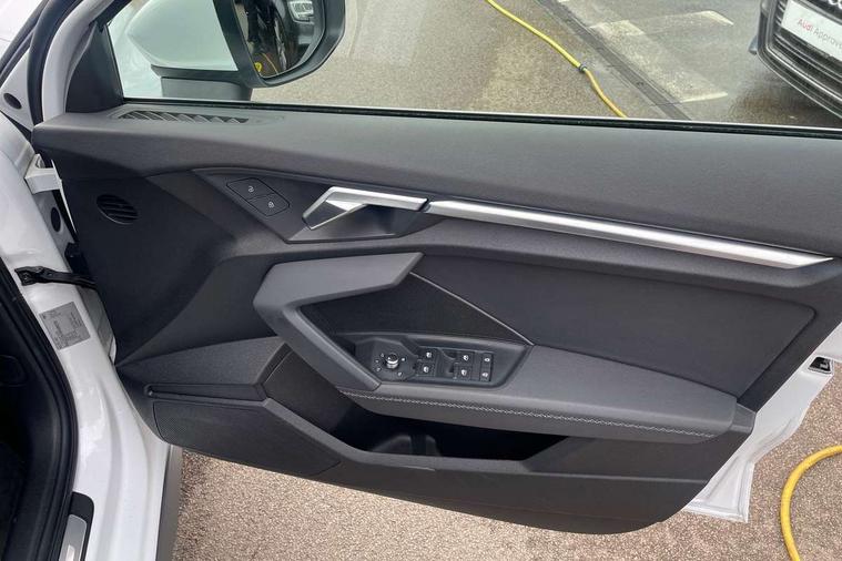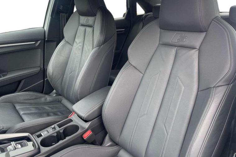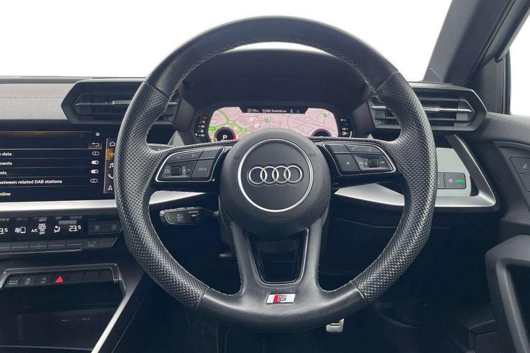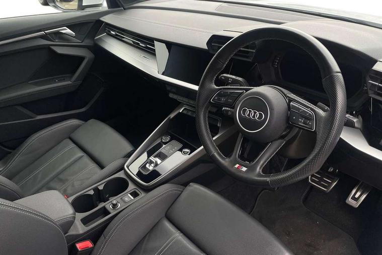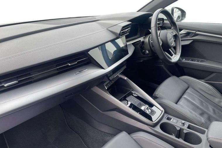 Audi connect emergency call and service, Audi drive select (Auto, Comfort, Dynamic, Efficiency and Individual), Audi smartphone interface, Audi Virtual Cockpit - 10.25" digital and colour instrument cluster, Automatic start/stop system with recuperation, Bluetooth interface, Collision avoidance assistant, Electromechanical power speed sensitive steering, Lane departure warning system, MMI Navigation Plus with high resolution 10.1" colour touch screen display, Service indicator, Voice control system with natural language interaction, Sports suspension, 2x USB Type C ports (for charging and data transfer), 6 passive loudspeakers, CD player, DAB Digital radio, 3rd brake light, Acoustic glass windscreen, Aluminium window trim, Auto dimming frameless rear view mirror, Body colour exterior mirrors, Electrically adjustable/heated/folding/auto dimming door mirrors with integrated LED indications + kerb view function for passenger side, Front electric windows, Illuminated door sills with aluminium inserts at the front with S logo, LED daytime running lights, LED headlights with LED rear lights and dynamic rear indicators, Light and rain sensors, Model and engine designation badges at rear, Privacy glass - dark tinted rear window, rear door and side windows, Rear boot, Rear electric windows, Rear side wing doors, S line bumpers, S roof spoiler, 12V socket and storage compartment in front centre console, 3 seat bench in 2nd row, 3 spoke leather multifunction steering wheel with gear shift paddles, 40/20/40 split folding rear seat bench with cupholder, Black cloth headlining, Dual zone electronic climate control, Front and rear centre armrest in leather, Front and rear headrests, Front/rear floor mats, Height and reach adjustable steering wheel, Illuminated vanity mirror, Interior lighting - glove compartment light and right hand side, Luggage compartment floor covering, Manual boot compartment lid, Manually adjustable front sport seats, Seat side bolsters, Single front passenger seat, Stainless steel pedals and front footrest in black, Twin leather upholstery with front sports seats S embossed logo, Aluminium interior elements pack - A3, LED interior lighting pack - A3 Saloon, S line styling pack - A3 Saloon, 3x3 point rear seat belts, Driver and front passenger airbag with passenger airbag deactivation, Electronic Stabilisation Control (ESC) including ABS, ASR and EDL, First aid kit with warning triangle and 2 safety vests, Front side airbags with head airbags and interaction airbag, Hill hold assist, Pre-sense front with pedestrian and cyclist detection, Seatbelt monitoring, Tyre pressure loss indicator, Anti theft alarm, Anti-theft wheel bolts, Electronically operated child locks, Immobiliser, Remote control central locking, Aluminium air vent surrounds, Aluminium trim elements, Dark spectrum aluminium inlays, accent surfaces in the dashboard and centre console in platinum grey silk effect paint finish,